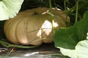 We can feel the season shifting in the garden….cooler nights, heavy dew in the mornings and the days growing shorter. It is fun to go and peek at the winter squash and pumpkins and wonder about the sweet potato harvest that we will be digging soon.