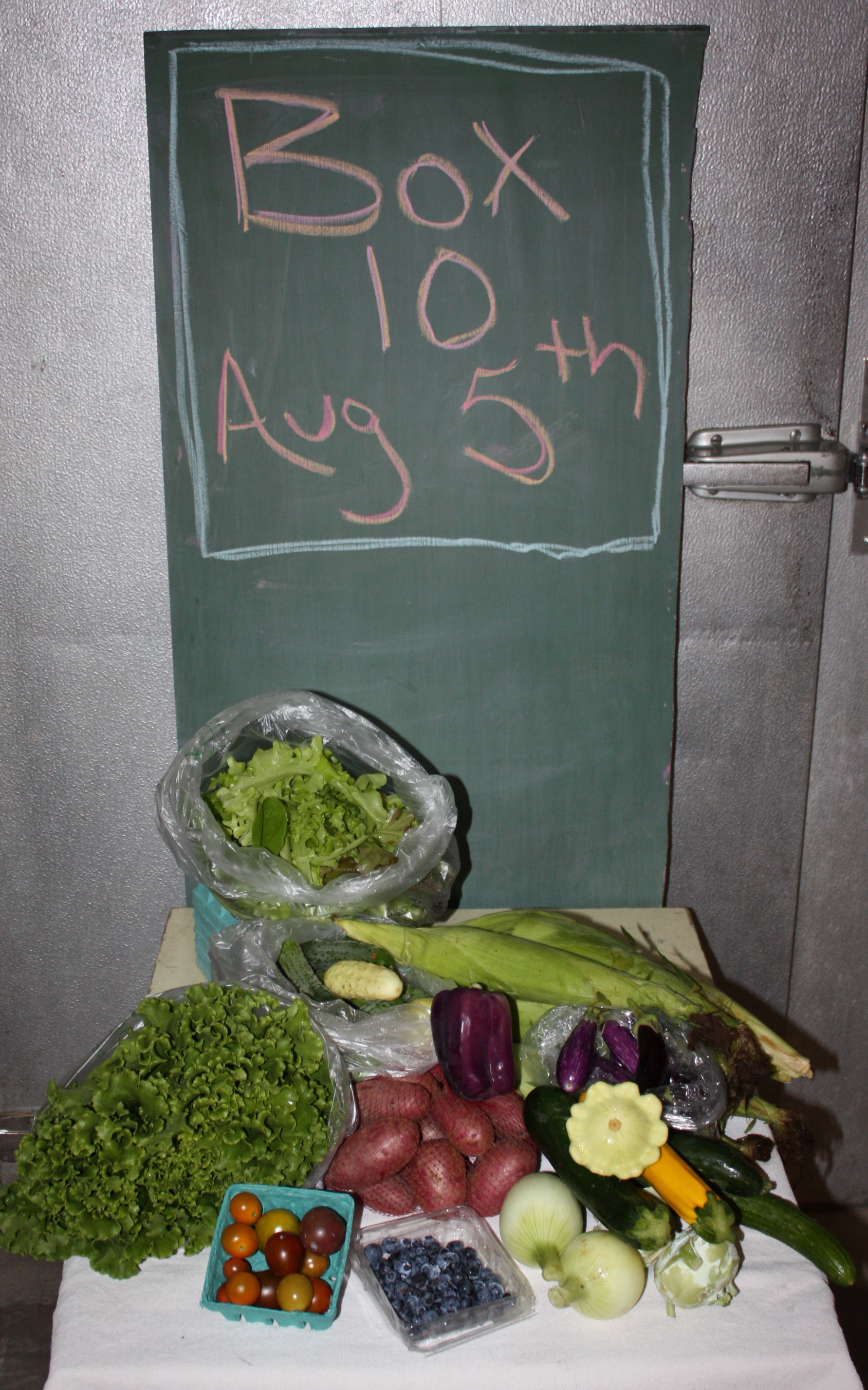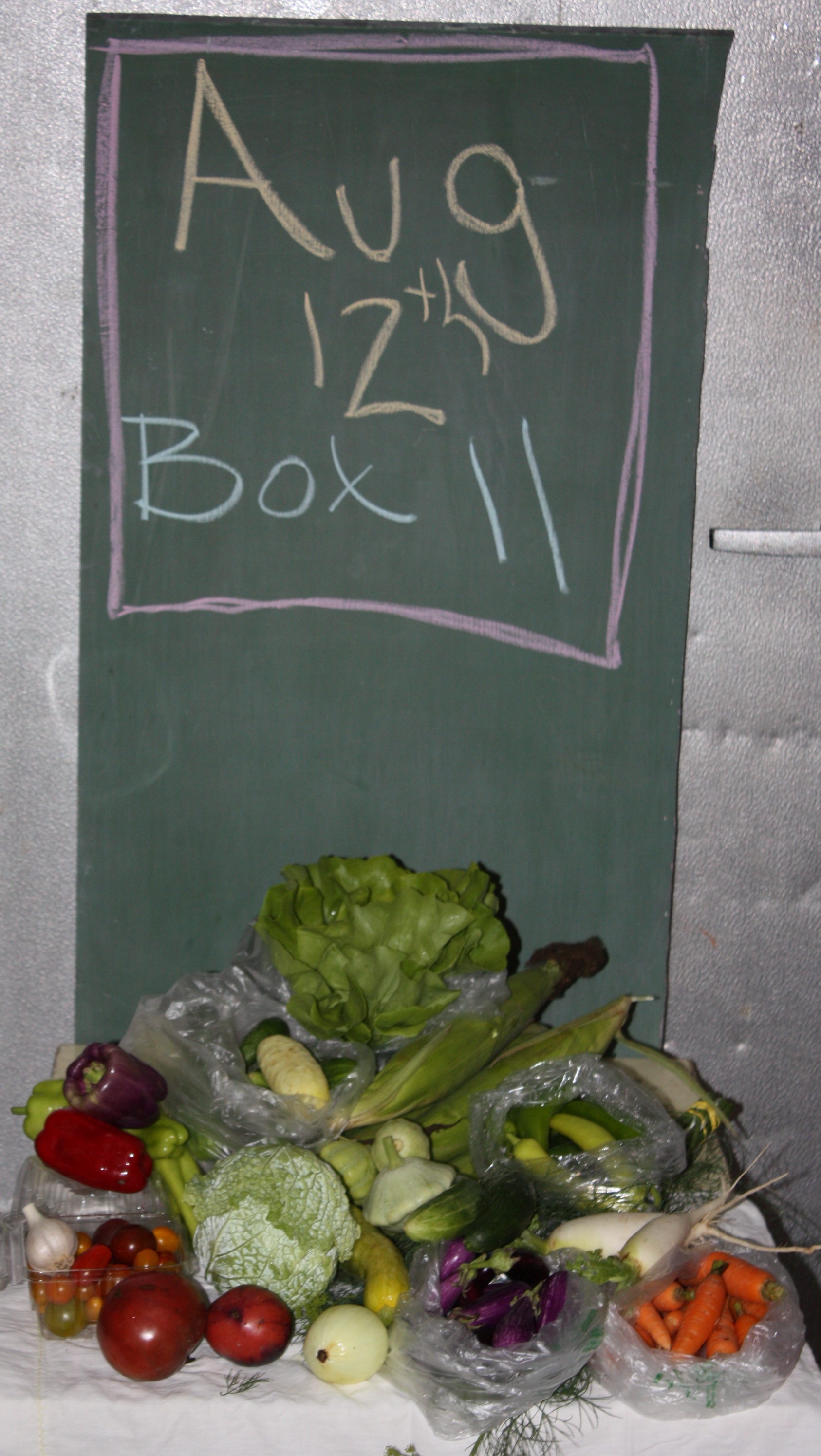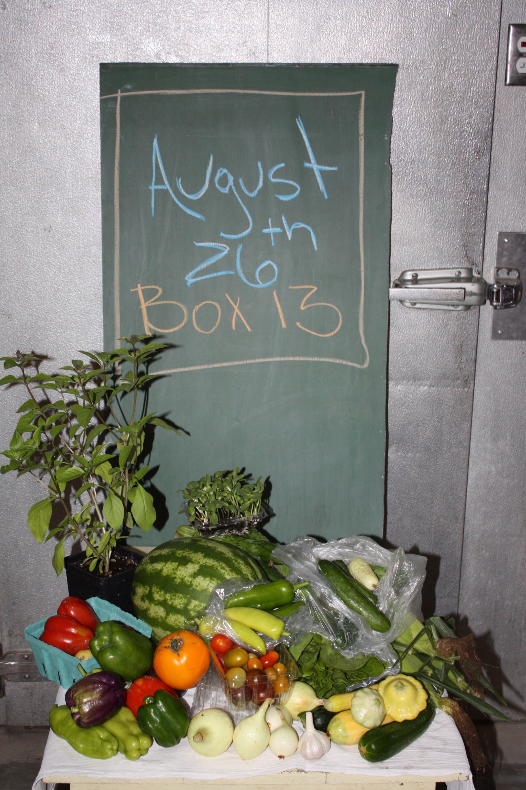 A super fun and FULL box this week. Lots of interesting treats. We had lots to choose from in the garden and so hard to decide. AND! A huge surprise delivery of CORN again this morning from Scott’s Reedsburg relative. Not expected but it is so darn good this year we said “what the heck, lets put it in. we decided with the watermelon harvest and the surprise corn delivery we would hold the pears in cold storage until next weeks box. Enjoy the bounty this week. Average weight (without the watermelon) is 15.70 pounds for a whopping 644 pounds.