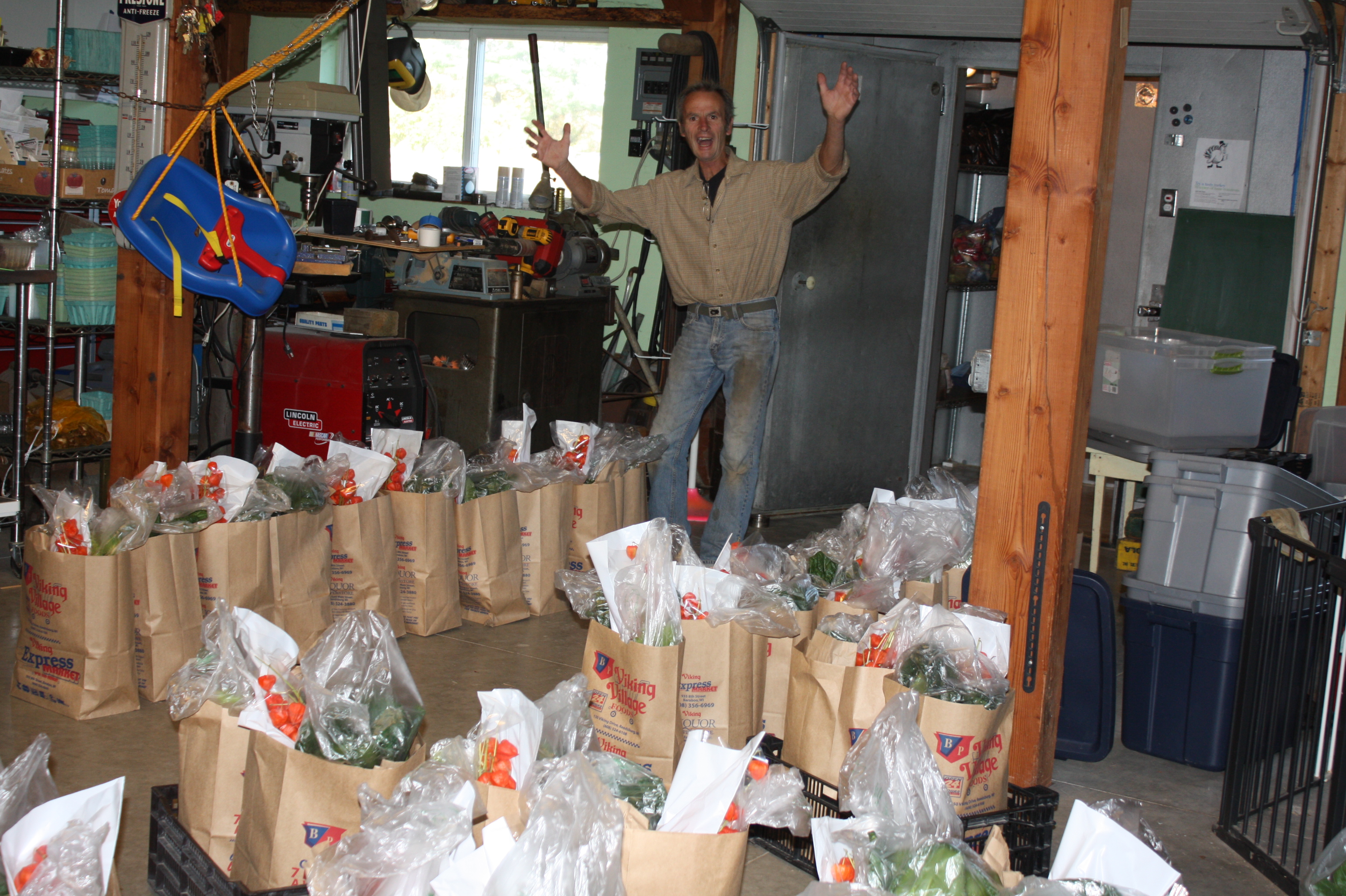 It has been a wonderful season and again we want to thank you for sharing the garden. I was chatting with a good friend that grows flowers in Portage last week and we were discussing the season. He said it has been an easy year for growing and I had to agree, however I do believe anything would be easier than last year’s extreme heat and drought. We have had some of our “best ever” this year-a bumper pea harvest, too many cucumbers, tons of colorful peppers and an abundance of carrots, the never ending zucchini, and weeks of watermelon. A few crops have finally matured and we are able to offer them in the boxes. The blueberry bushes were finally big enough to produce a supply for the food shares after 7 years of growth, rhubarb plants are finally large enough after several years to put out over 100 pounds, the pear trees hung heavy with fruit and the HONEY! a favorite treat that we were proud to offer. A strong season for us and we are already looking forward and planning next summer. BIG plans and lots of fun additions.