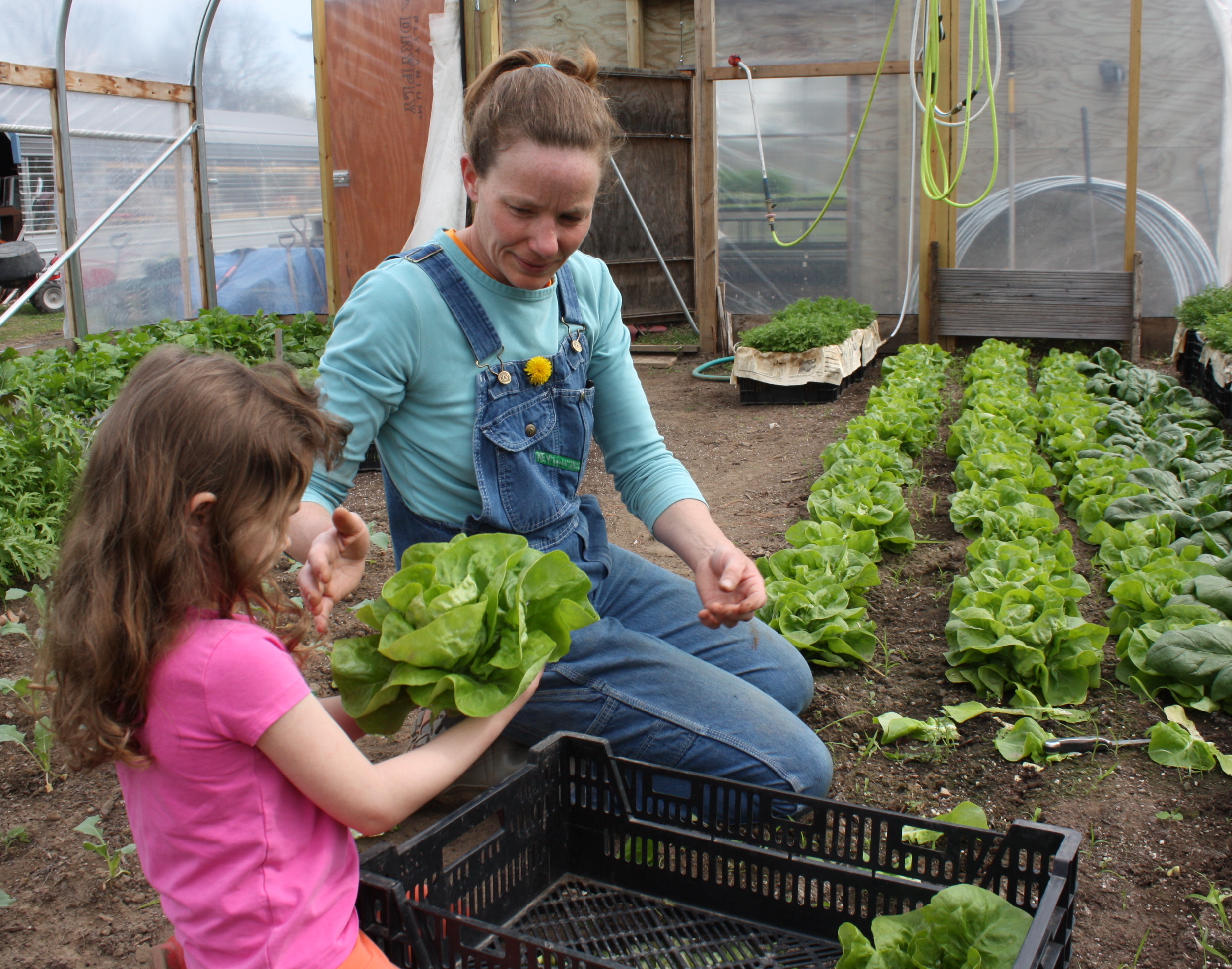 I gotta say we have a really good feeling about this year! We are on track and not feeling pulled along or overwhelmed by the work load. Maeve enjoys her time “helping” in the gardens, hoop house and greenhouse or playing in the sandbox making us imaginary food for our breaks in her “cantina”. My personal favorite- pretend chocolate cake cooked for 29 minutes at 875 degrees with a dandelion sprinkle garnish. Life is good.