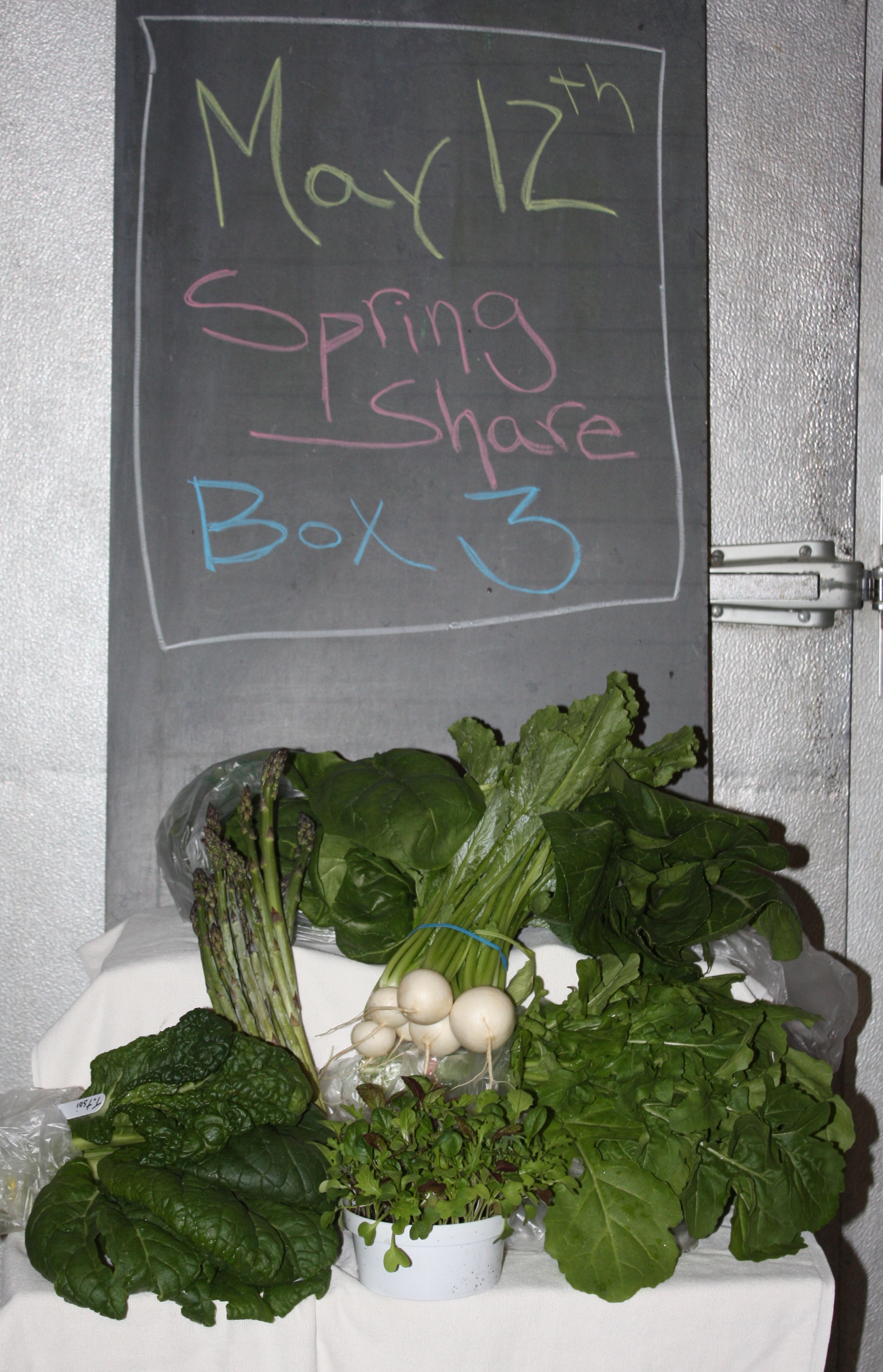 We are going to take a few weeks off before the start of the Summer Share Season…..PROJECTED START DATE IS MONDAY JUNE 9th. We want to give the outside garden plants a chance to catch up with the hoop house growing. We will keep you posted.