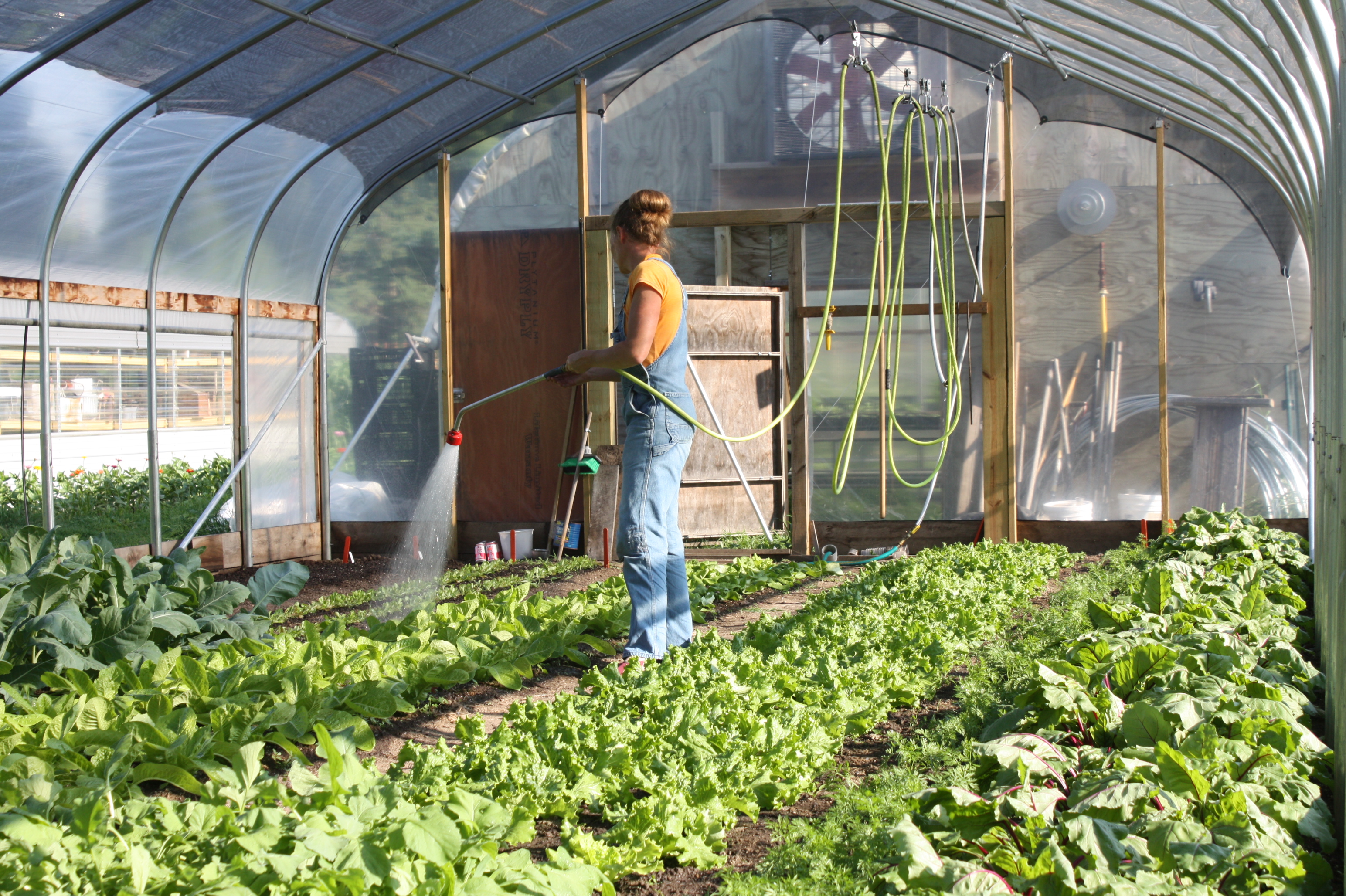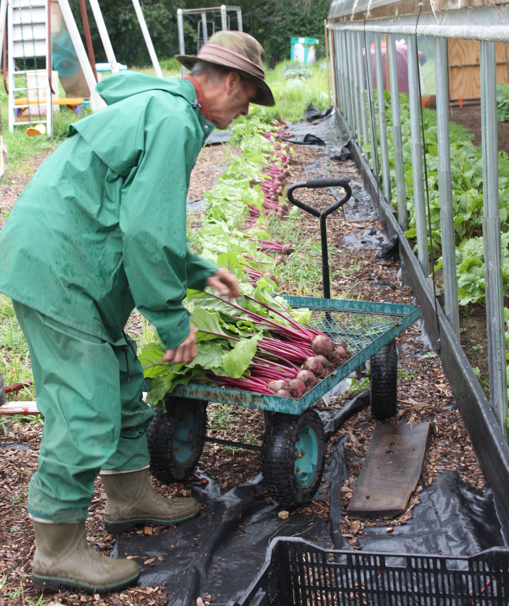 Scott harvesting the beets from the hoop house. We had to harvest from the side as the carrots inside are too big to work around. We are using every inch of space available and it is tight.