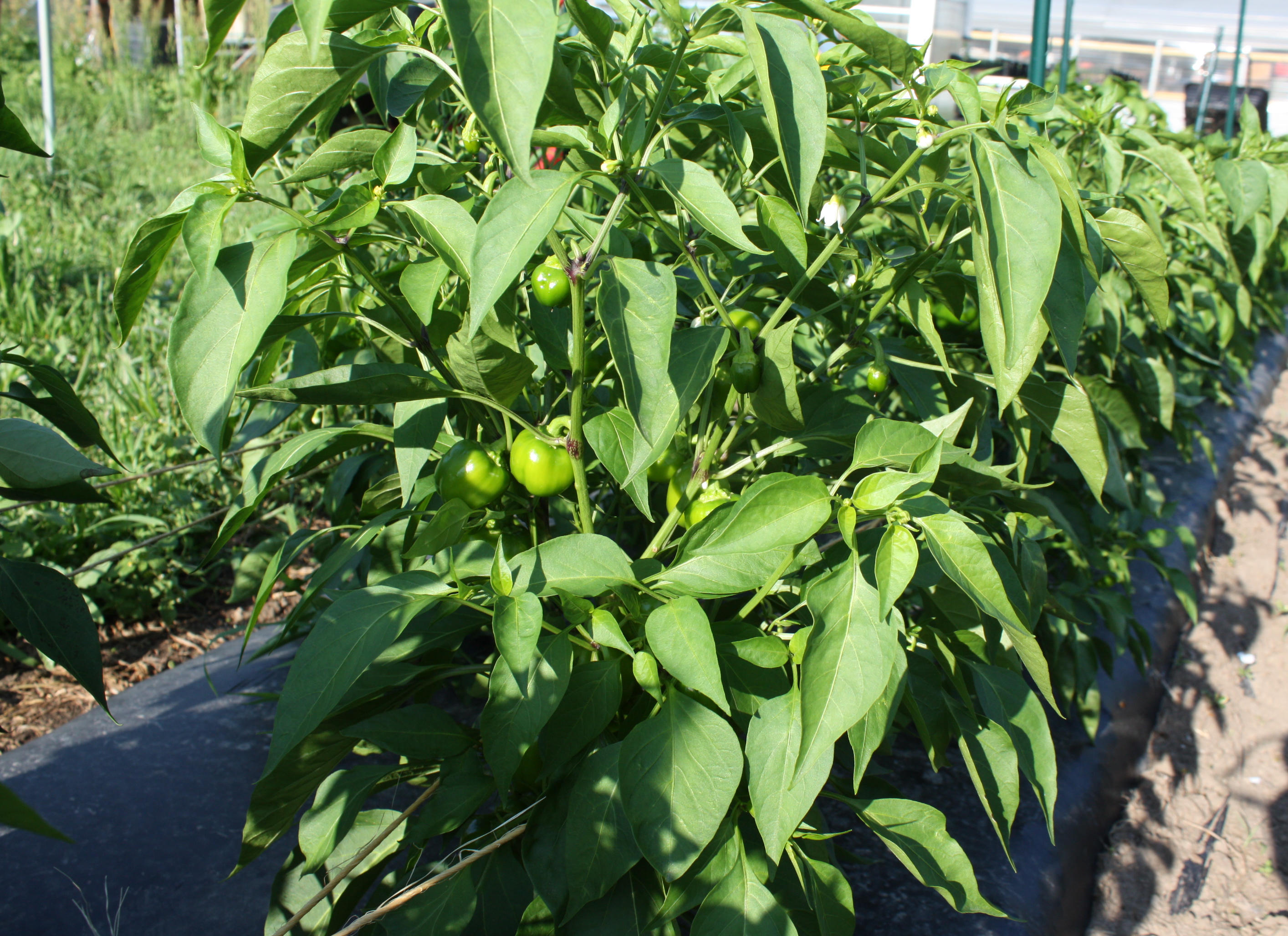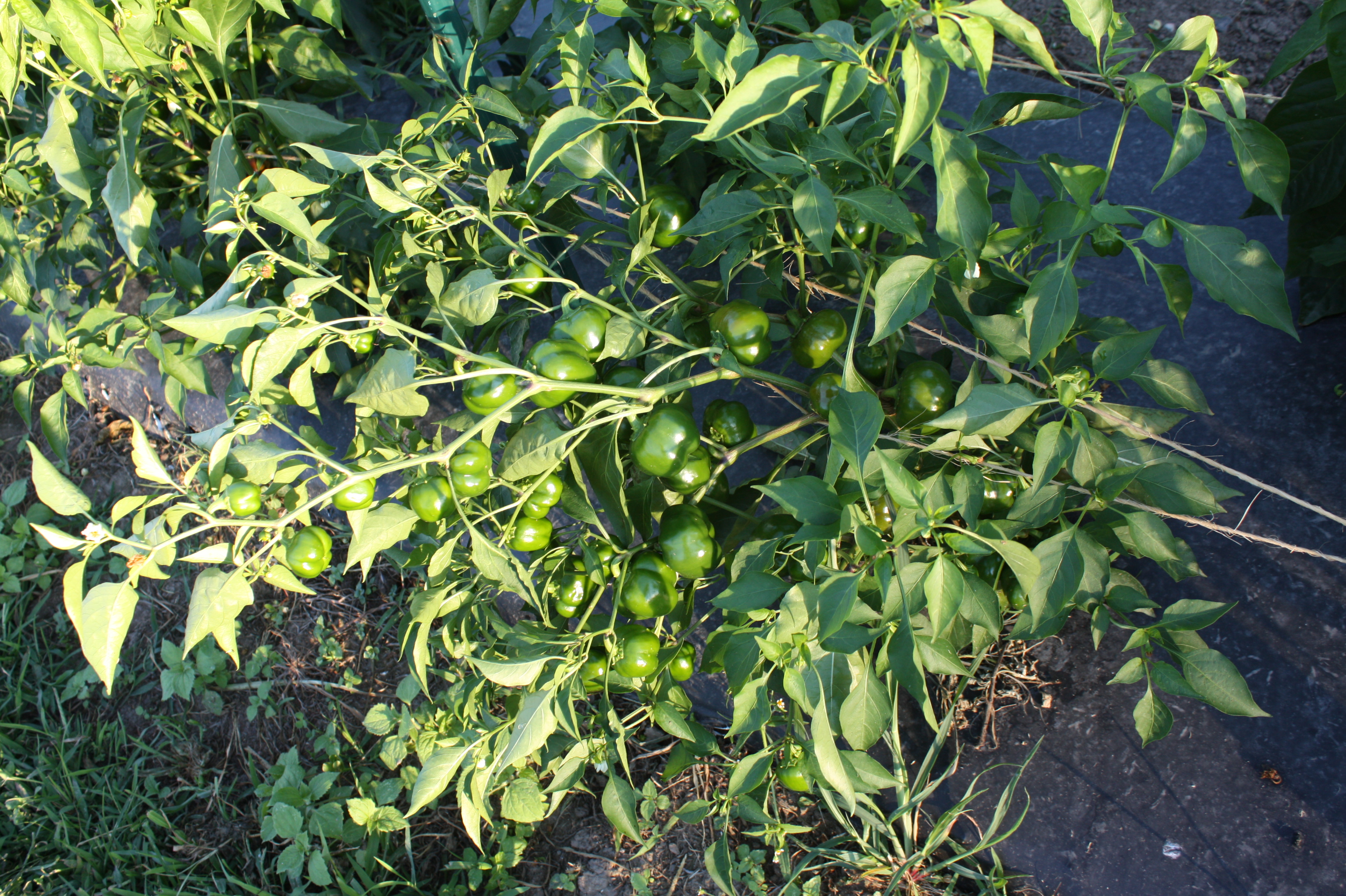 The pepper plants are coloring up. We planted a long, long row of little snackers and are excited to see these in the box soon.