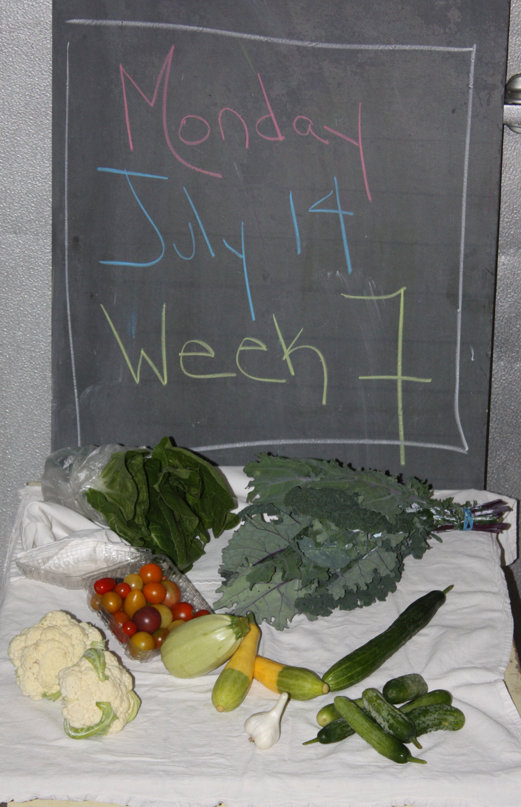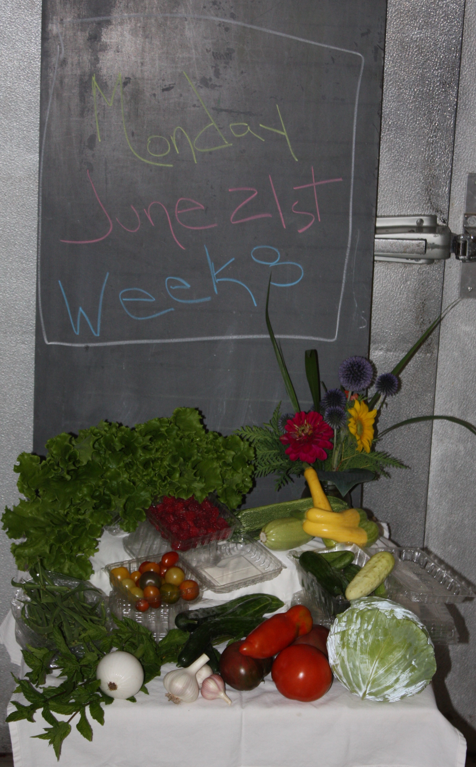 BEST GUESS FOR NEXT WEEK-beans, broccoli, refrigerator pickle kits, zucchini, peppers, lettuce, basil, tomatoes, summer onions and more!