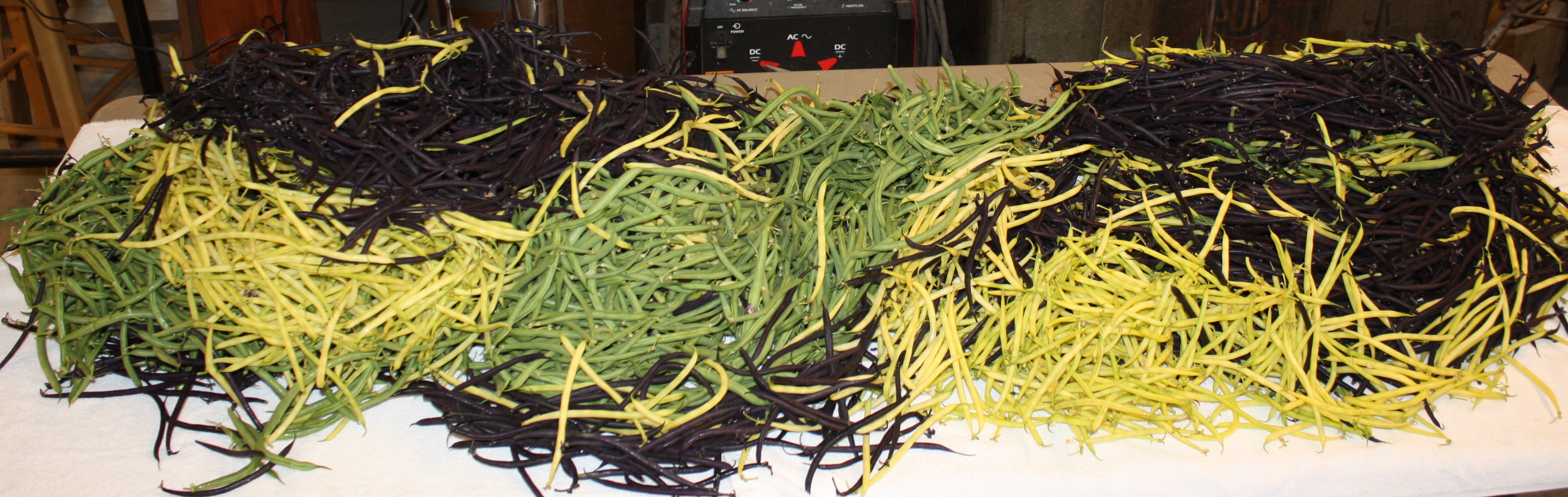 Beans-Big bag of a tricolor mix and a smaller bag of those deliciously nutty flat European wonders. Packed separately due to different cooking times.