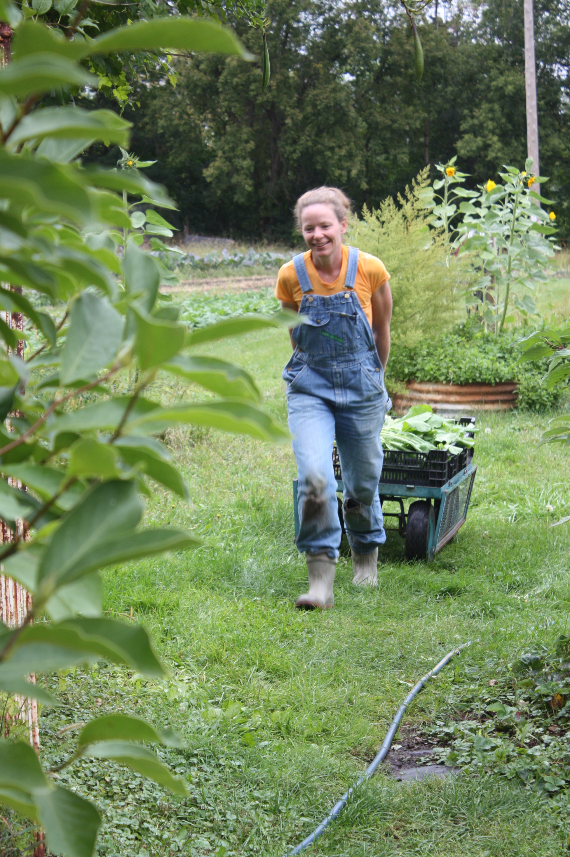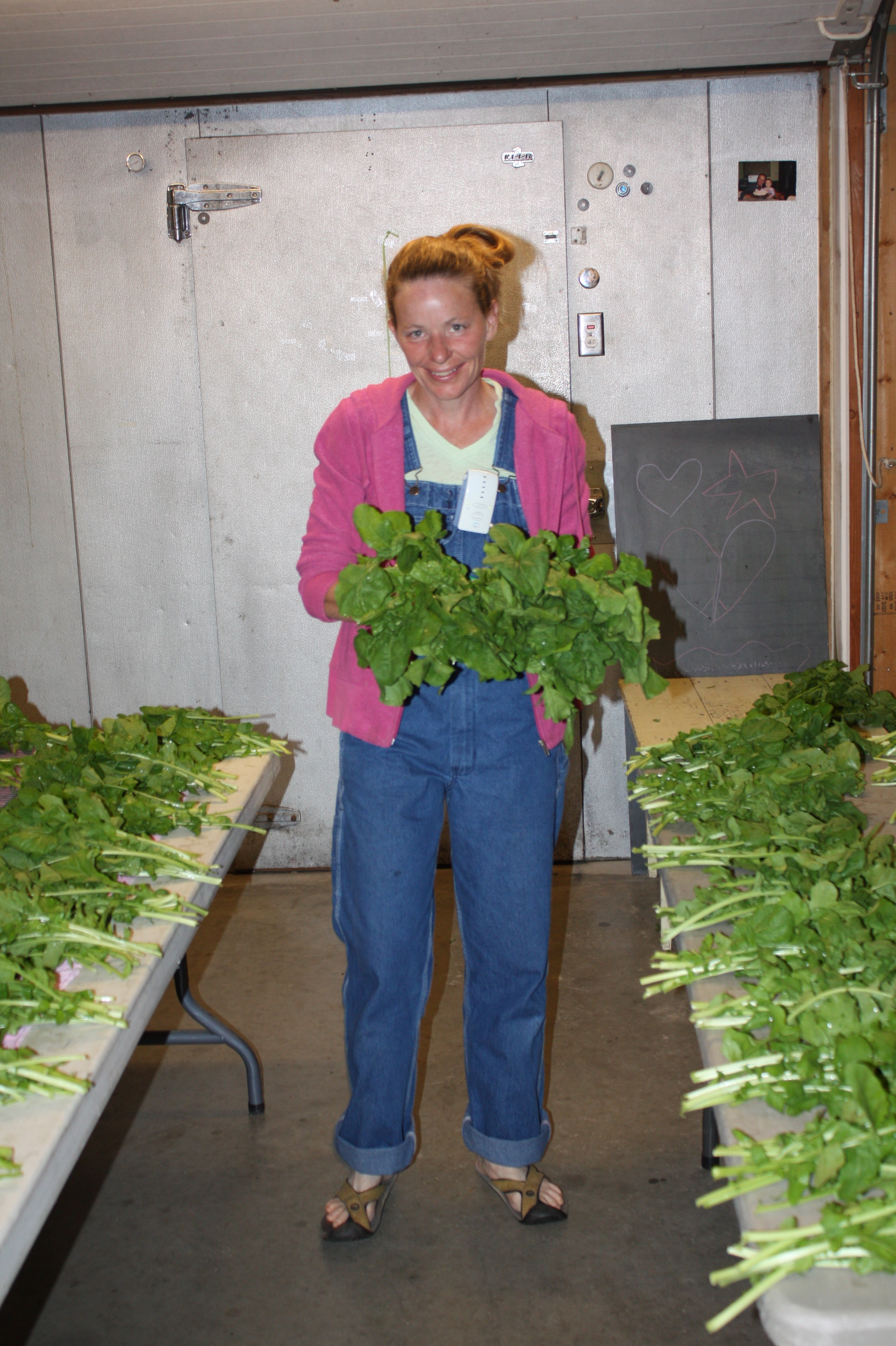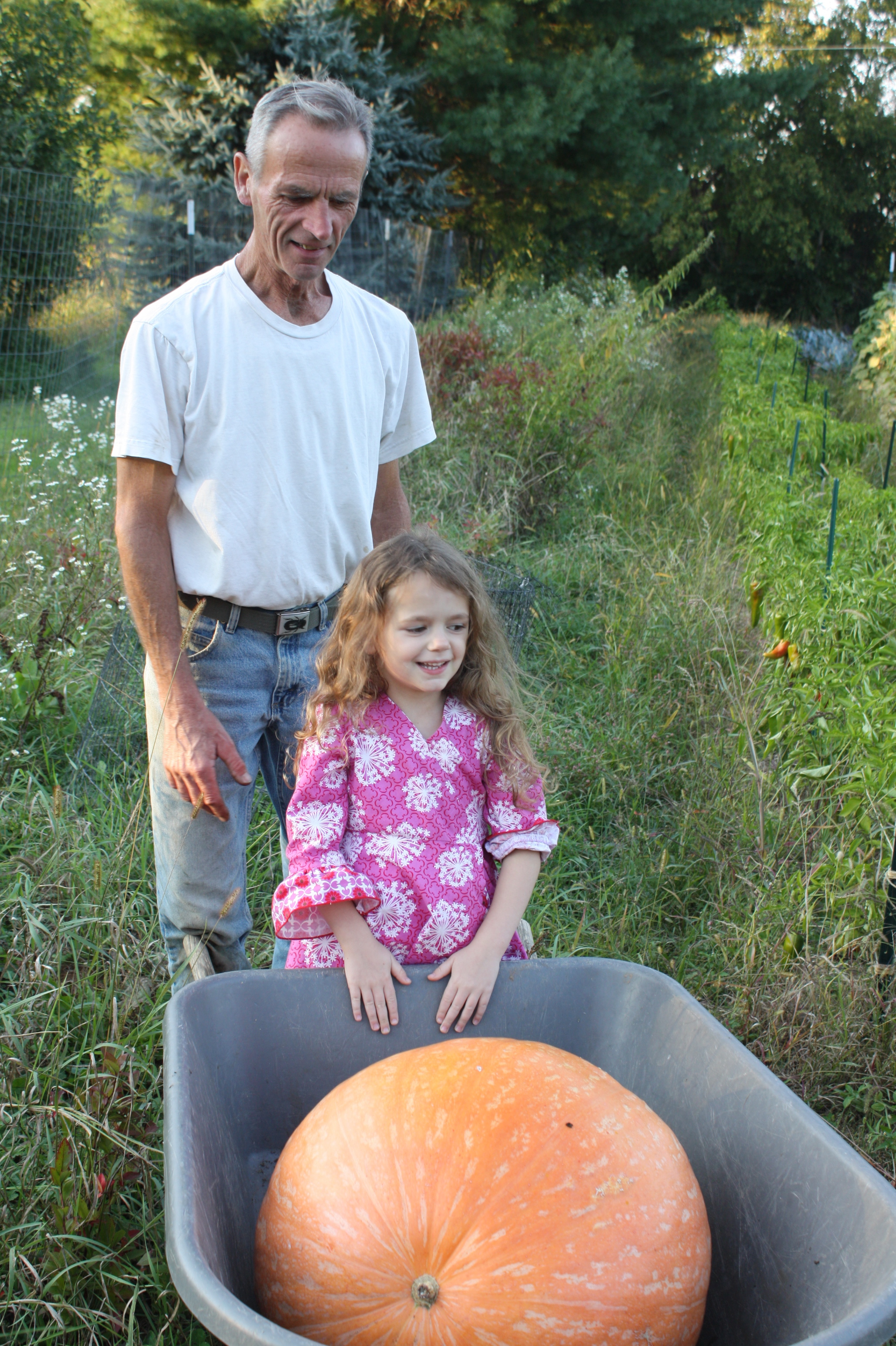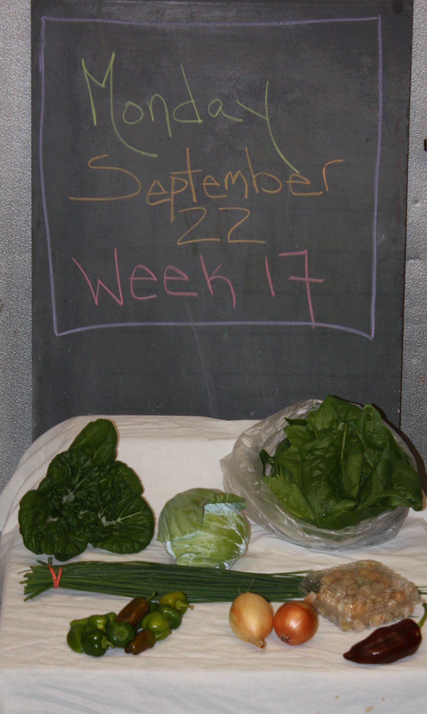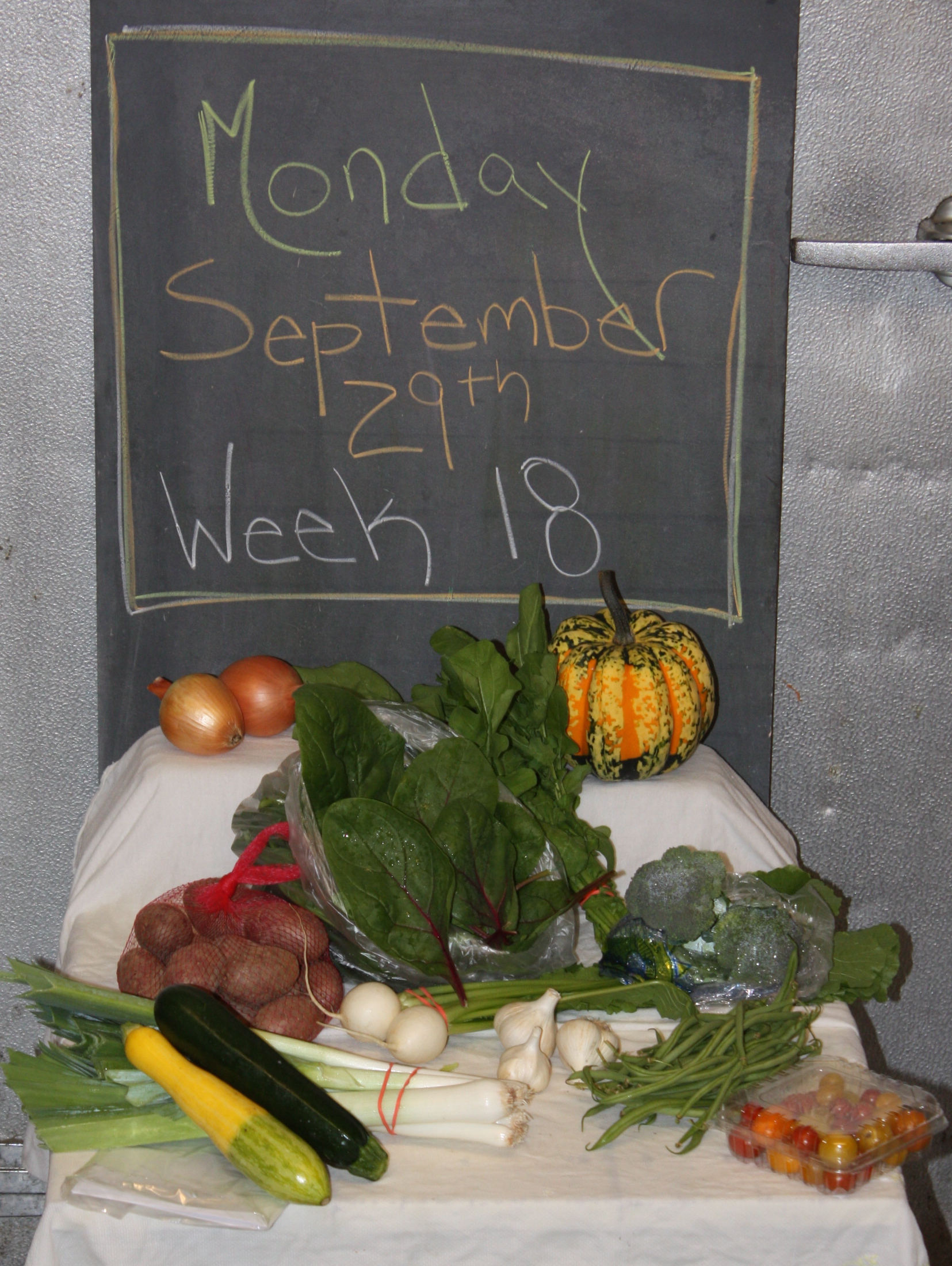 A beautiful week of warm weather for garden clean up with a nice burst of heat to push the last late summer crops from the garden. Scott pulled all the cucumber vines down and to the compost pile, the melon vines are all cleaned out. The start of the tomato patch clean up is scheduled for this coming week. Truely the end of the summer gardening season but lots still going on and growing! We have Autumn loving cool crops still outside in the the garden that are thriving. Late broccoli, Kale, Swiss Chard, Chinese Cabbage, Cauliflower, Celeriac Root and more….. we seeded in long rows of spinach outside this week to winter over for Spring Shares and continue to transplant seedlings in the hoophouse for Winter Shares. Gardening does not end for us until December when we pull late carrots mulched in the hoophouse and perhaps pluck a bit of spinich nestled under double row cover from the hoophouse too.