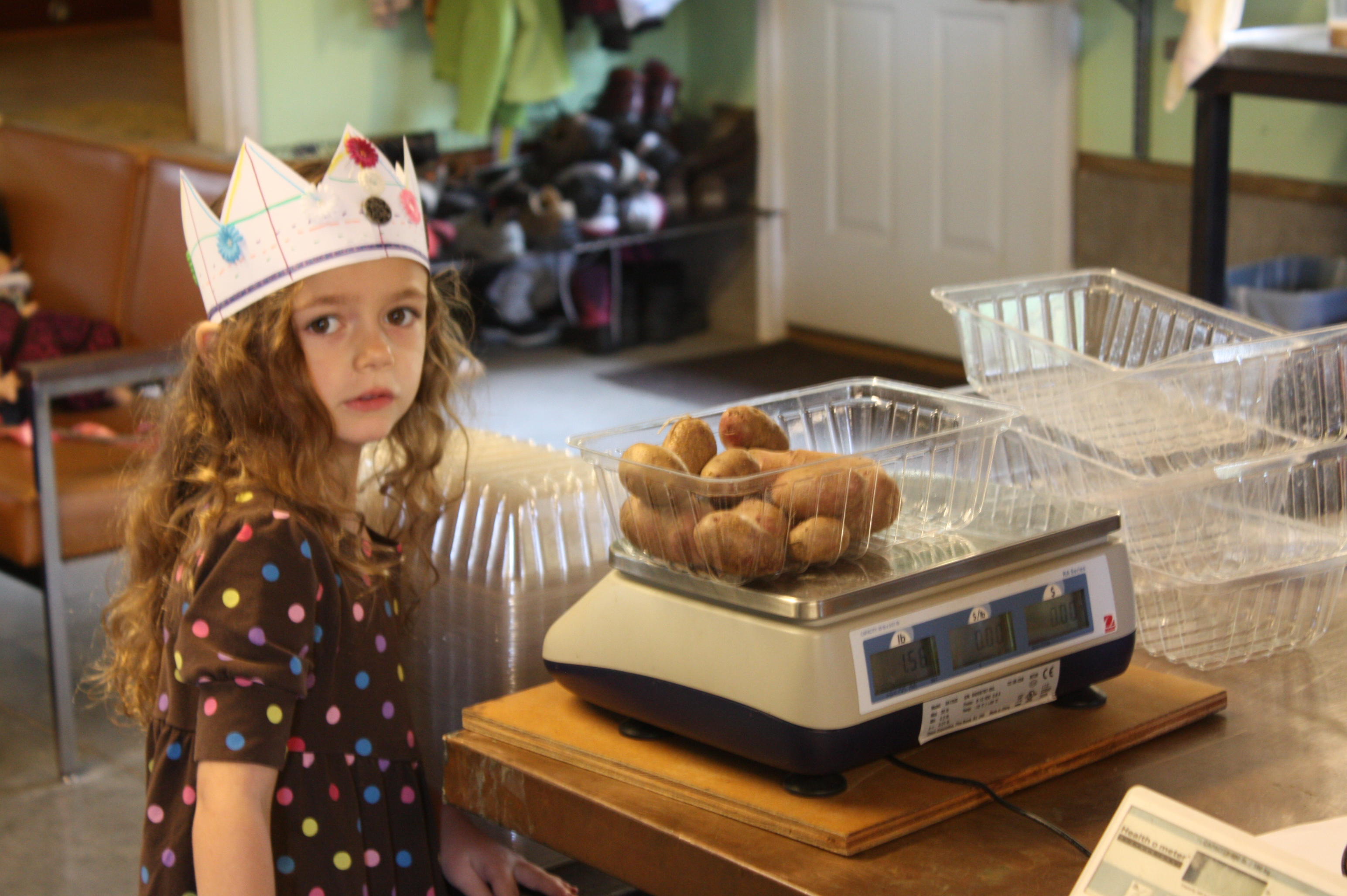 Maeve weighed out the potatoes again this week-after we made a crown to make the activity seem “fancier”.