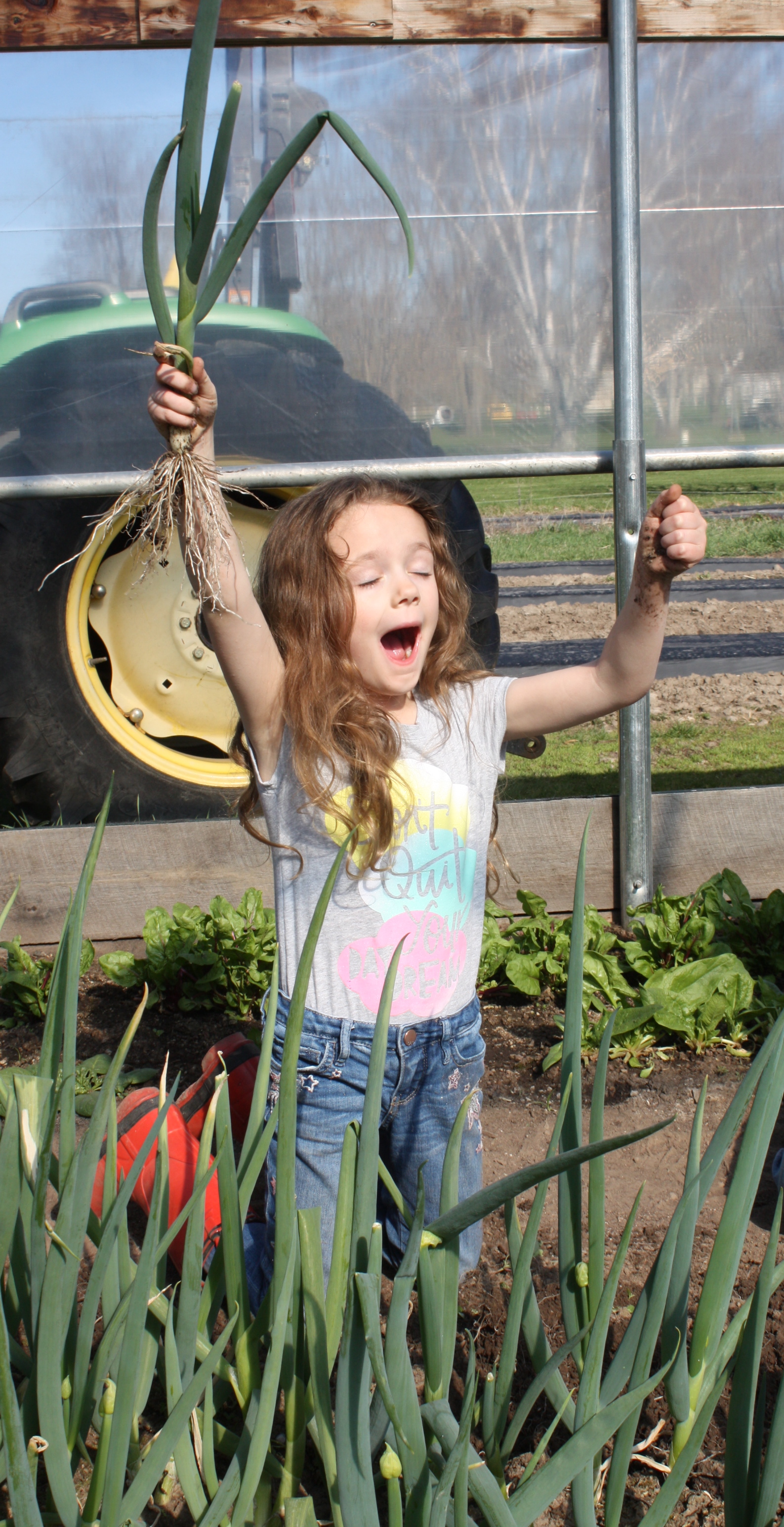 Green Onions-A nice bunch with mild flavor. Use the white base and green stalks. We planted these late Fall in the hoop house as an experiment to see how they would winter over for Spring Share. A success!