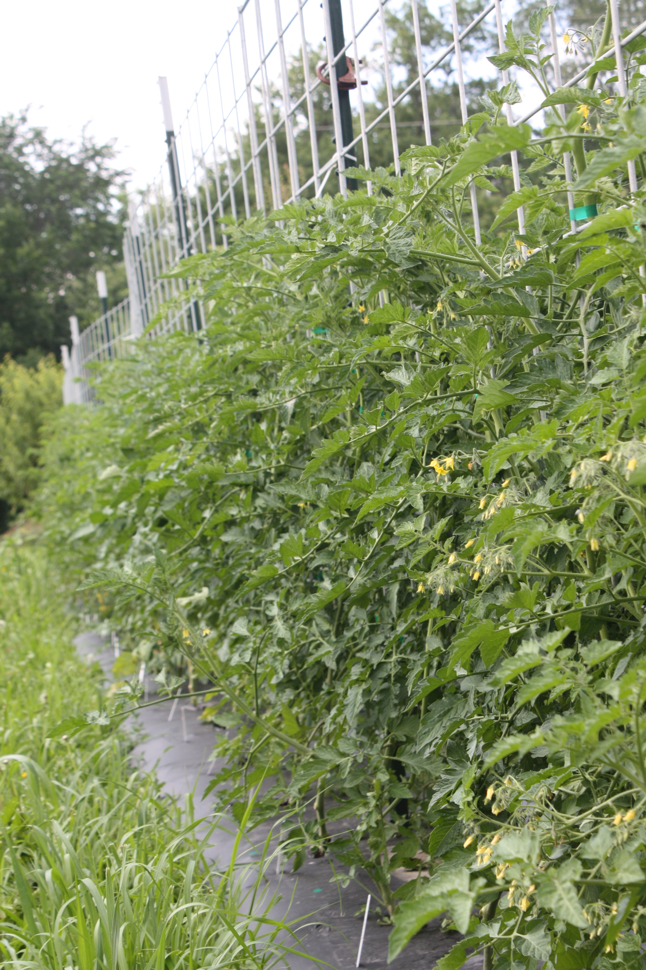 The tomatoes are several inches if not a foot taller than last year at this time when we look at the photos. The crop looks strong and healthy and loaded with blossoms and baby tomatoes forming.