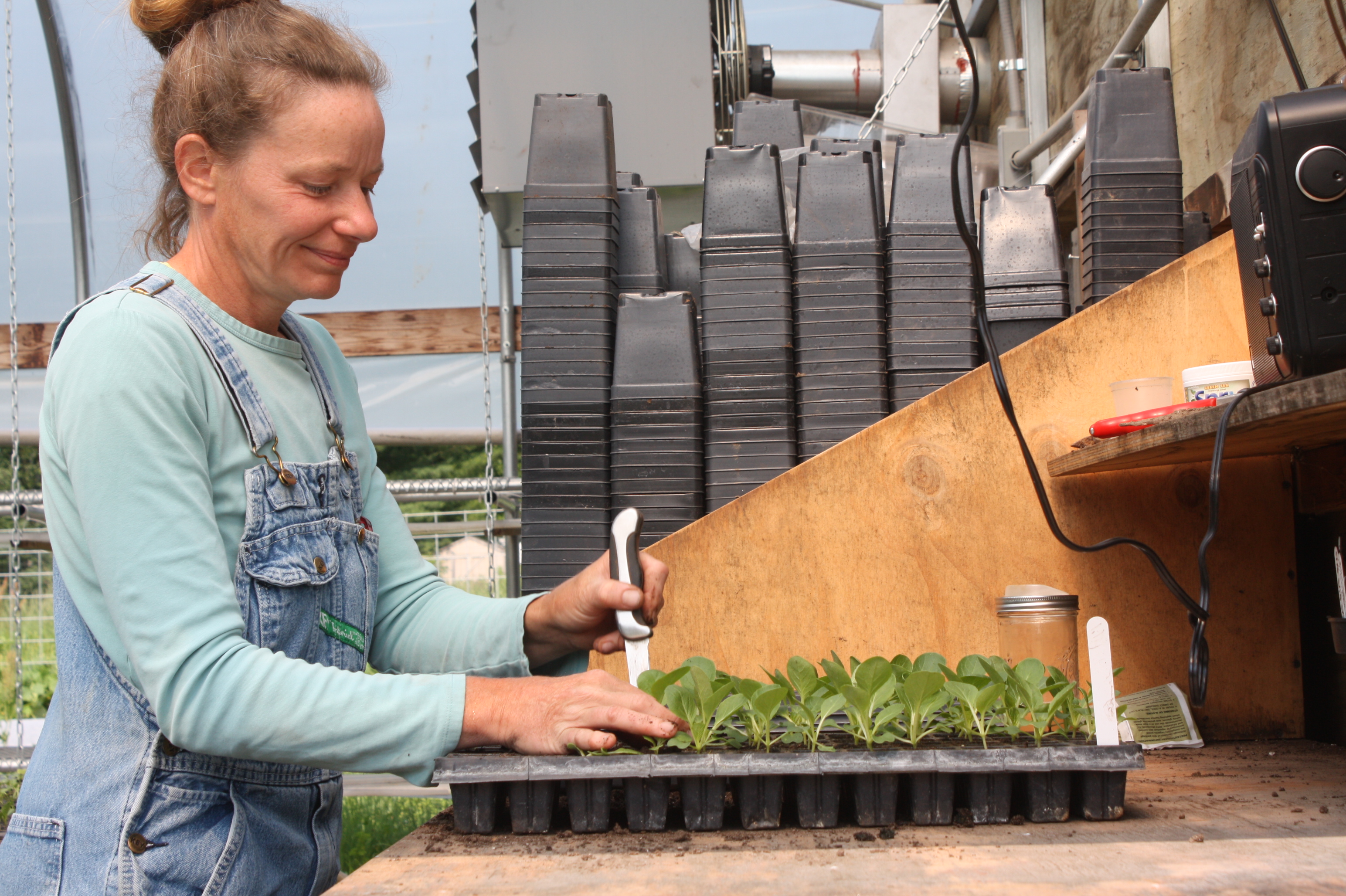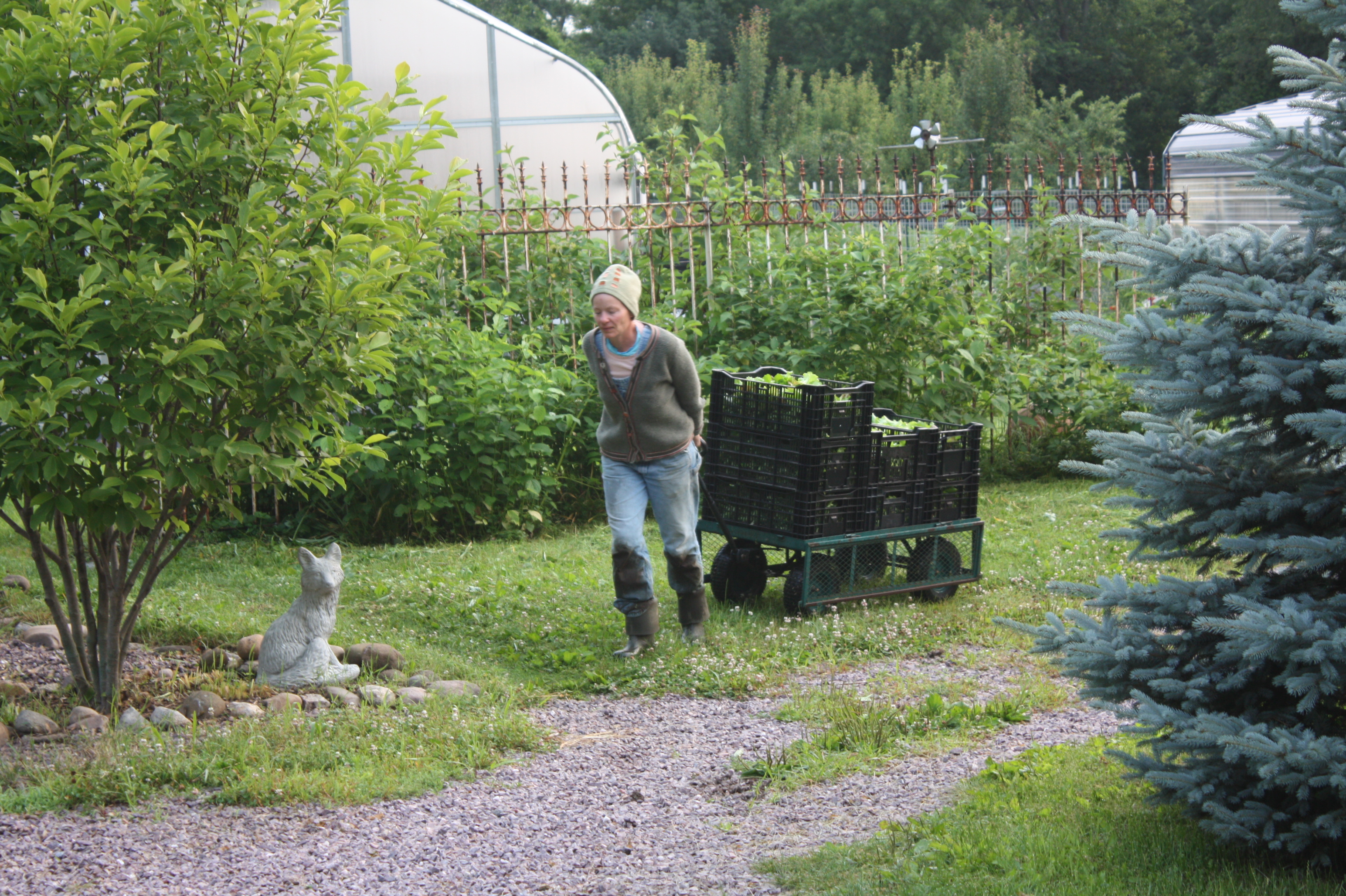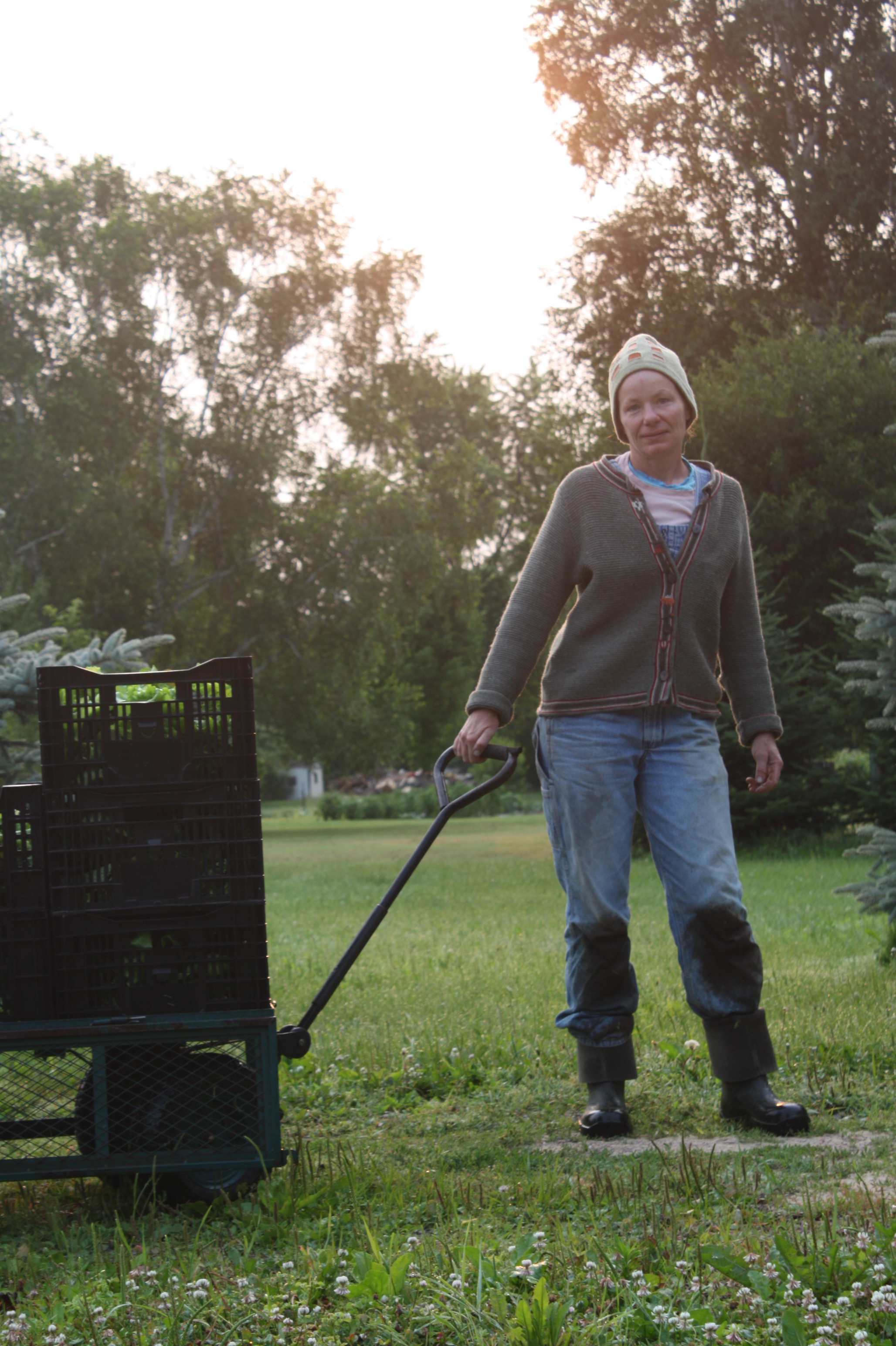 Scott’s days are spent with a hoe, a sickle bar or weed wacker and I am on my knees most of the time pulling weeds from the garden, transplanting new seedlings or harvesting crops. We rise extra early (sometimes 4am!) to harvest as the vegetable and leafy greens that are cool from overnight. We get them washed and tucked in the cooler before the mid day heat sets in.