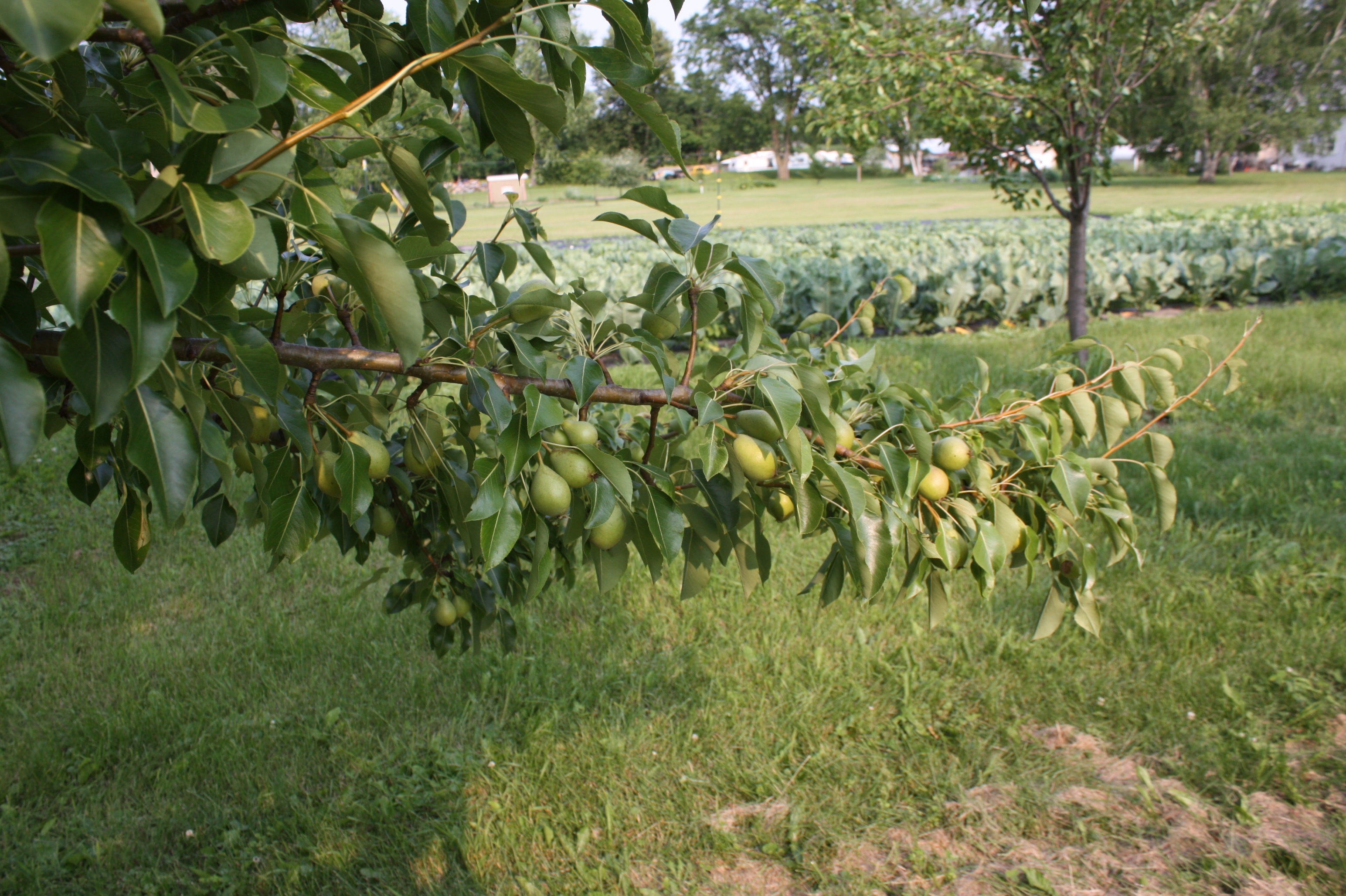 It looks like we are going to have a great pear harvest this year after a few years of little or no fruit due to past cold Spring temperatures and late frosts. We are excited! Looks like enough to fill a share for everyone…and “put up” a few jars. Maeve loves pear sauce better than apple sauce.