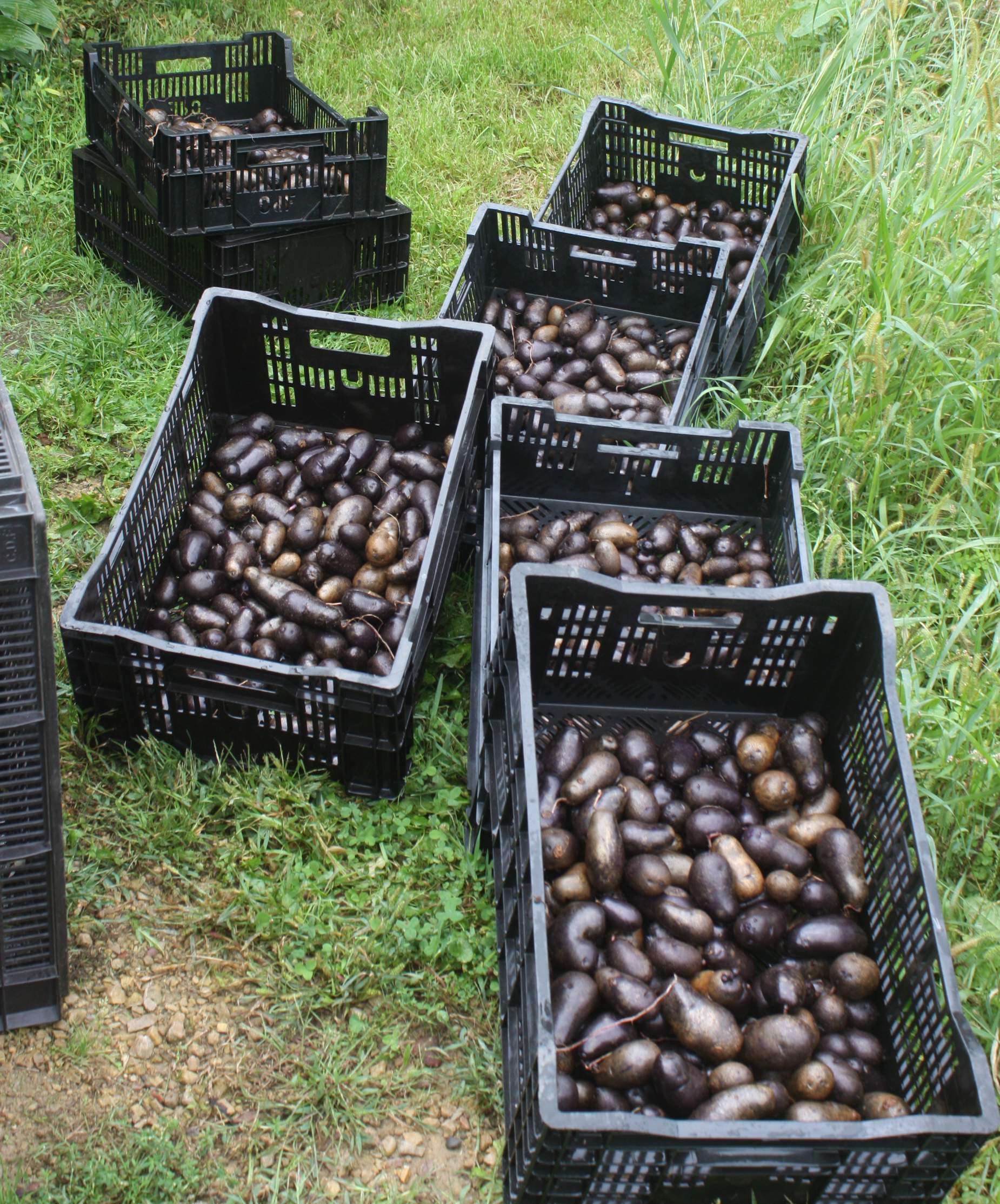So, with all this odd free time we plug along with the last weeding duties, garden clean up and harvest schedule. We are just dragging out the potato harvest as other duties present themselves and this week we will start the fingerlings and dig a few sweet potatoes to tuck in the last shares of the season. I am excited to see these beauties and eat them too! The hoop house is transitioning to Winter Share production and over winter spinach is slowly taking over any available space with hopes for an early Spring bounty. Wire frames were ordered for Holiday evergreen wreaths and every so often Scott or I will mention a fun winter art project we are looking forward to crafting. Life is changing around here.