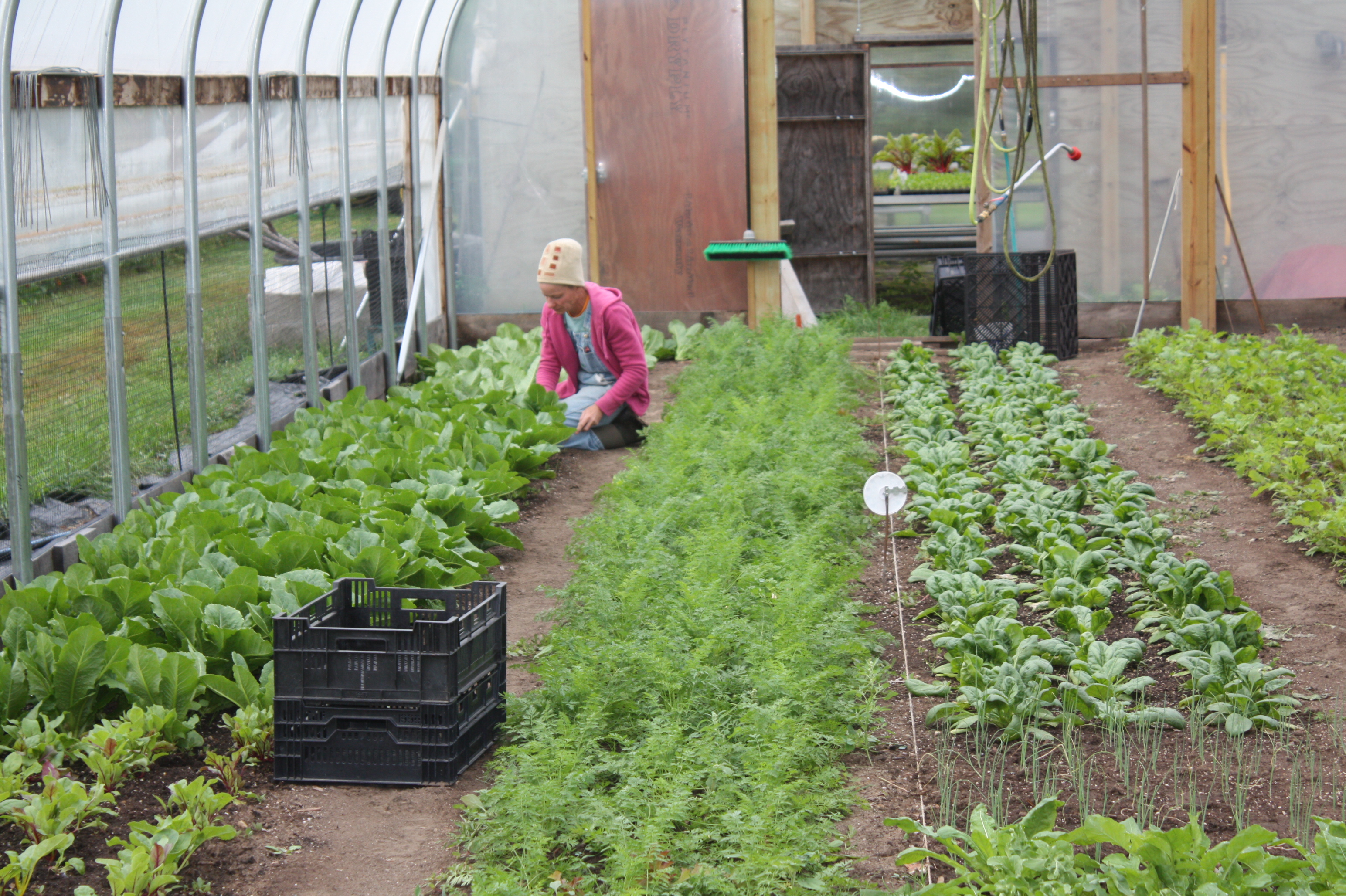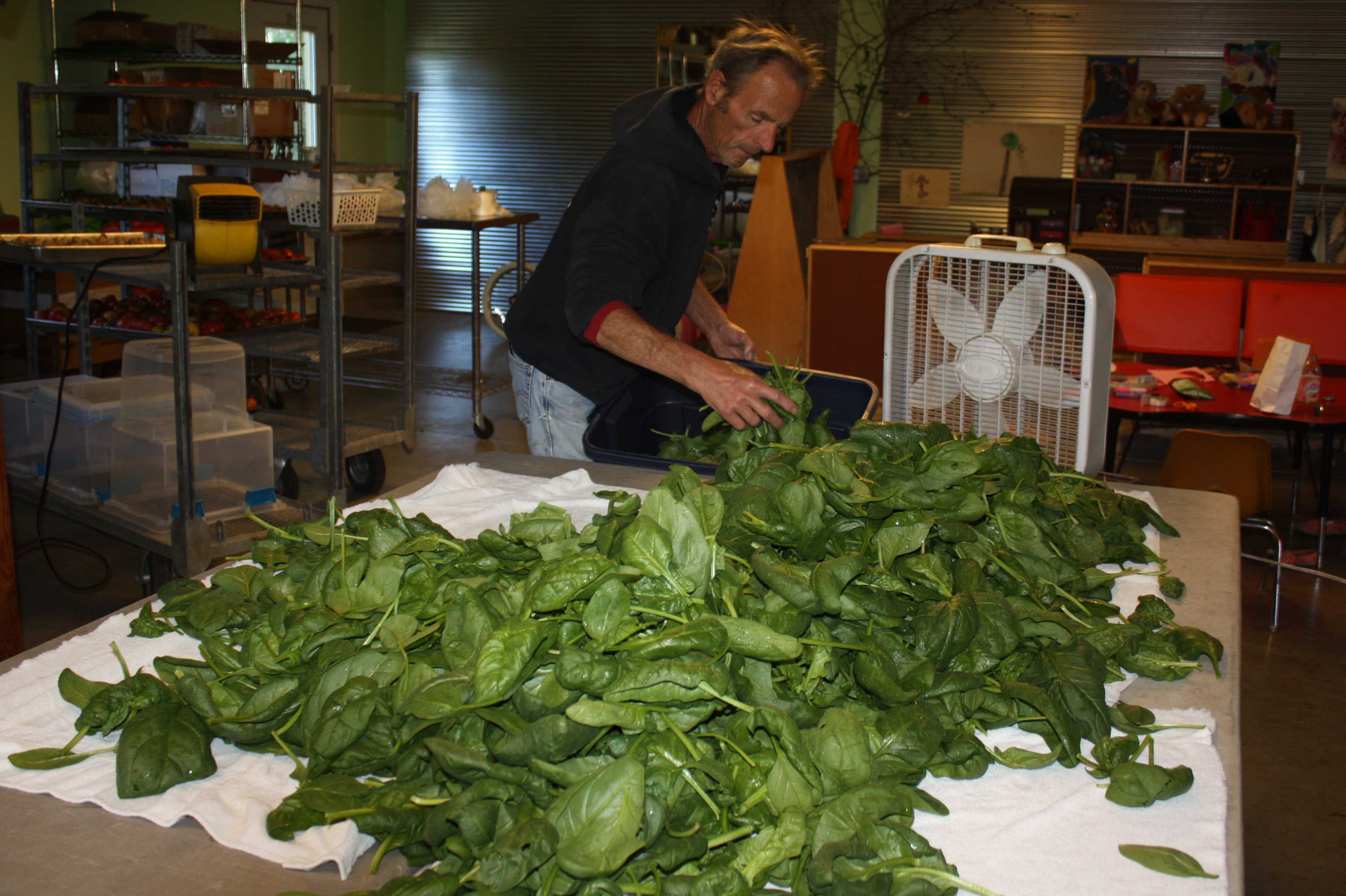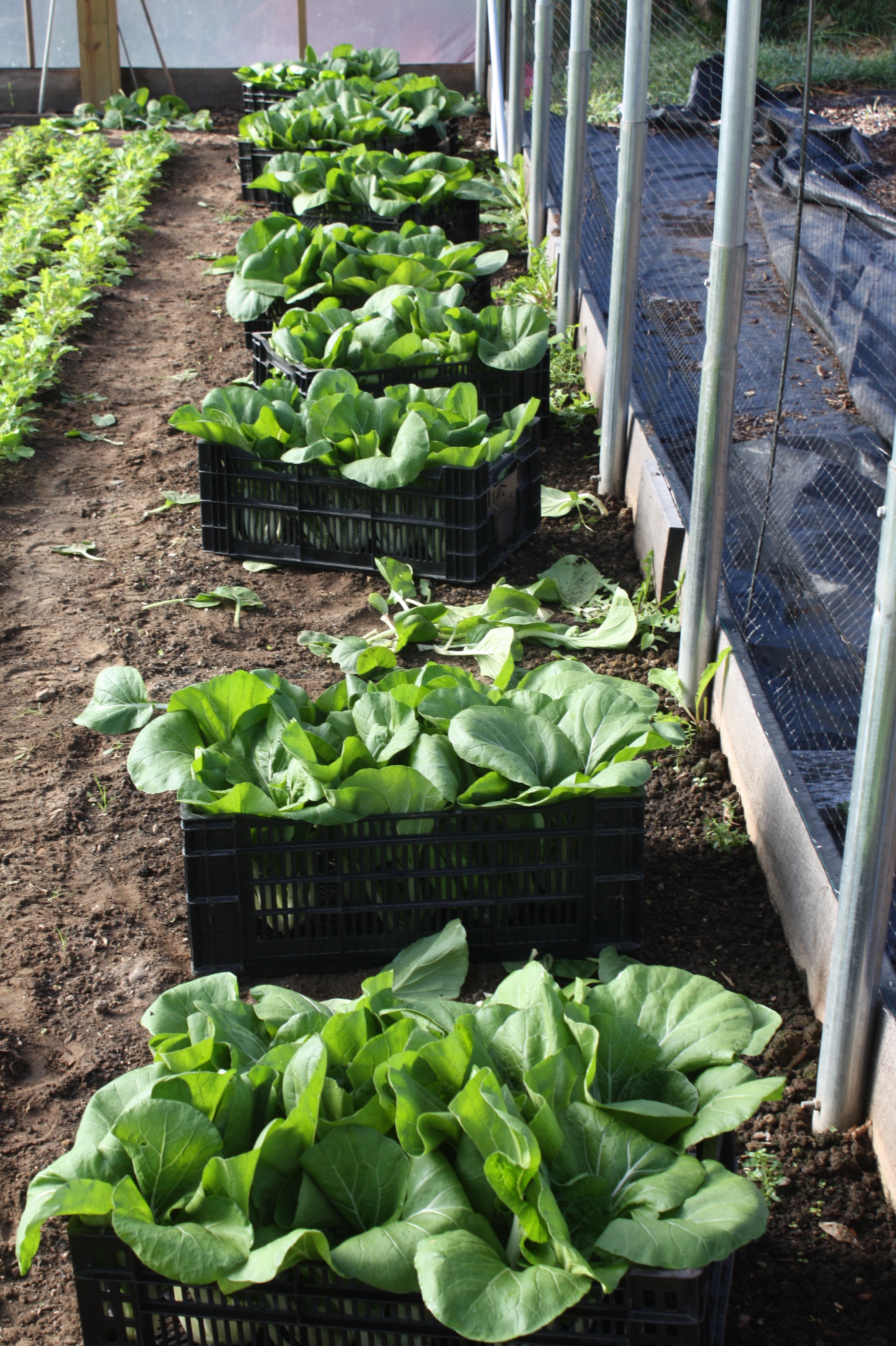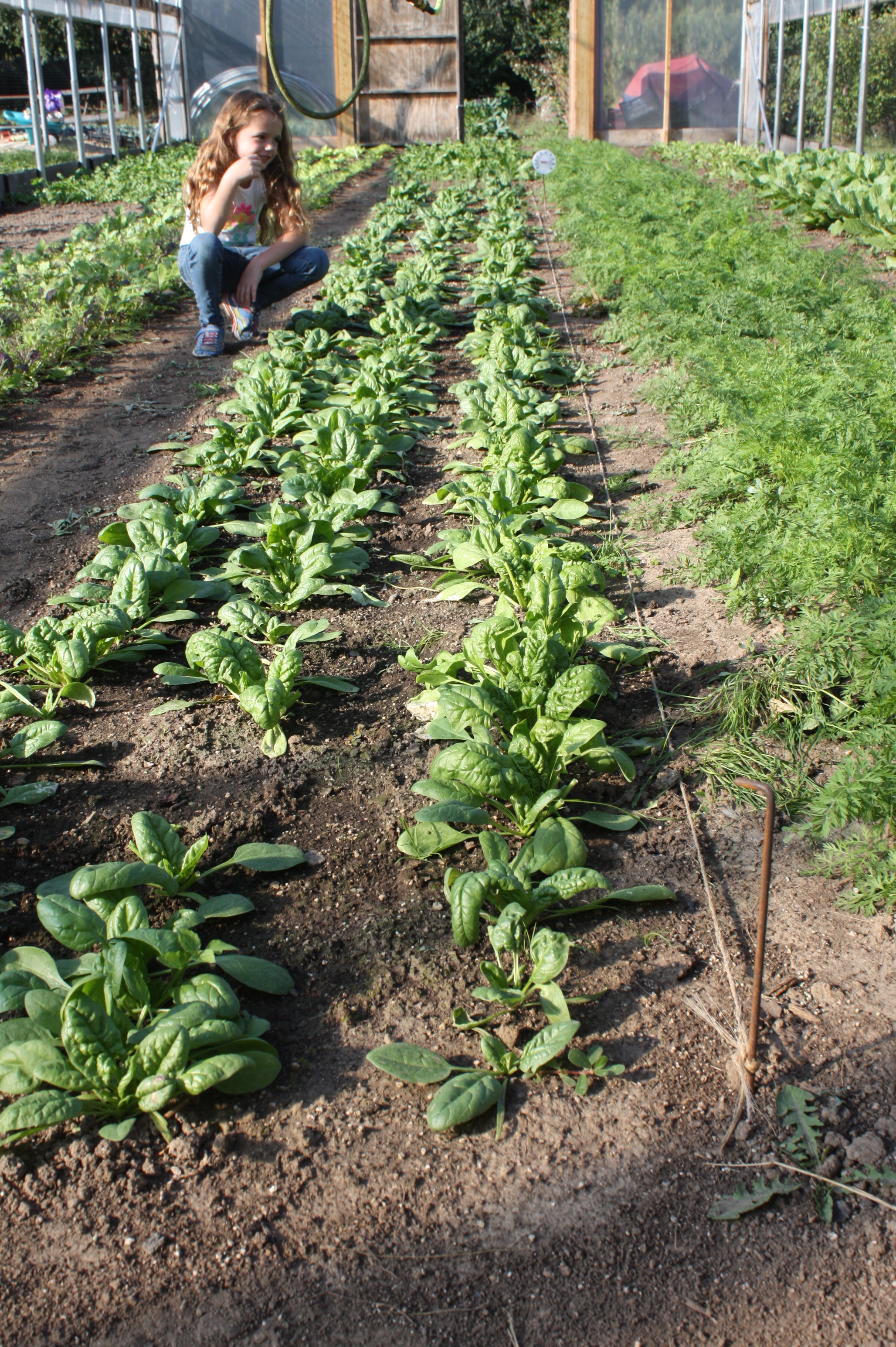 2 rows of spinach cut 1 to go. Leaf by leaf by leaf…..we harvest each leaf individually to insure undamaged perfect future growth.