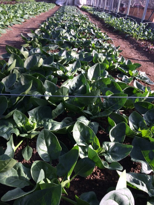 Spinach-The last harvest of our indoor hoop house Spring Spinach. We picked and then pulled the plants.