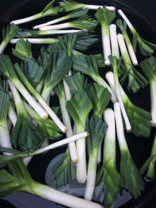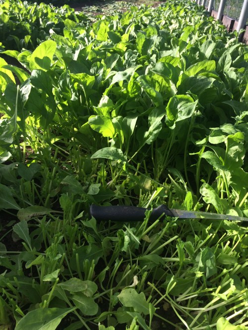Spinach-1st harvest of the Fall Spinach from the hoop house and it is wonderful! Sweet and juicy.
