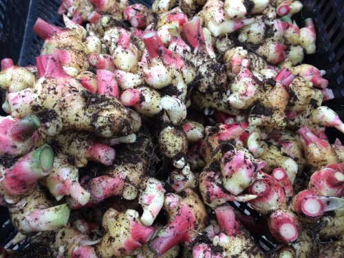 Ginger-Just dug. Great in stir fry, bakery and teas. Short storage life in fridge. Best to freeze.