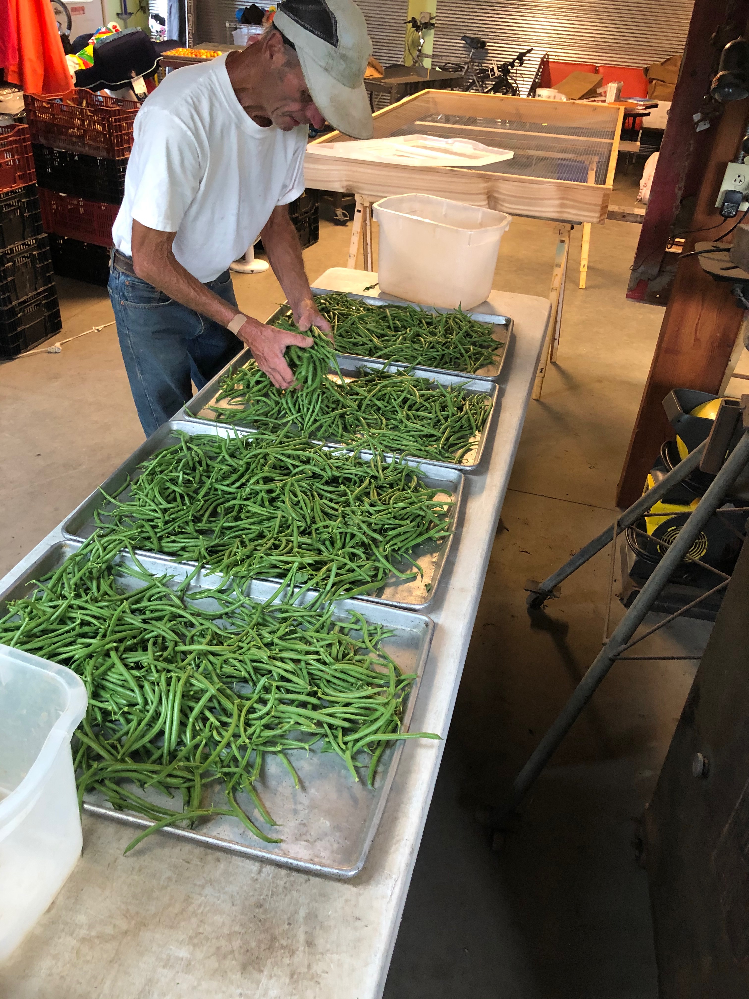Scott putting beans on a tray to chill in the cooler before we tub up.
