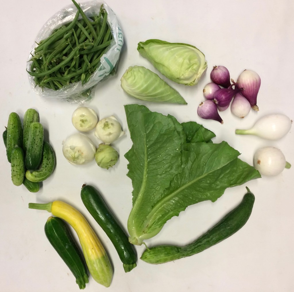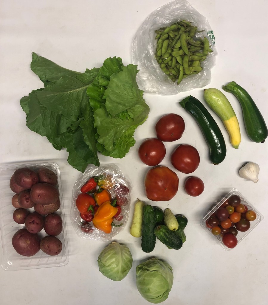 Full Share-18 consecutive weeks starting in June. A perfect share for a family or couple that cooks most weekly meals at home. Feel free to share a share with another family and split the bounty weekly or every other week. Weekly offerings of seasonal produce all summer long. Tons of leafy greens!, spinach, lettuce, salad mix, saute mix, basil, asian greens, pac choi, swiss chard, celery, rhubarb, radishes, carrots, beets, summer squash, winter squash, spaghetti squash, cucumbers, beans, peas, broccoli, cabbage, edamame, potatoes, sweet potatoes, tomatoes, melons, eggplant, peppers, brussels sprouts, onions, leeks, shallots, garlic, turnips, honey, flowers and more…..Produce is clean, carefully packaged and stored in our walk in cooler until time of pickup. $610 ($33.89 a week) SOLD OUT
