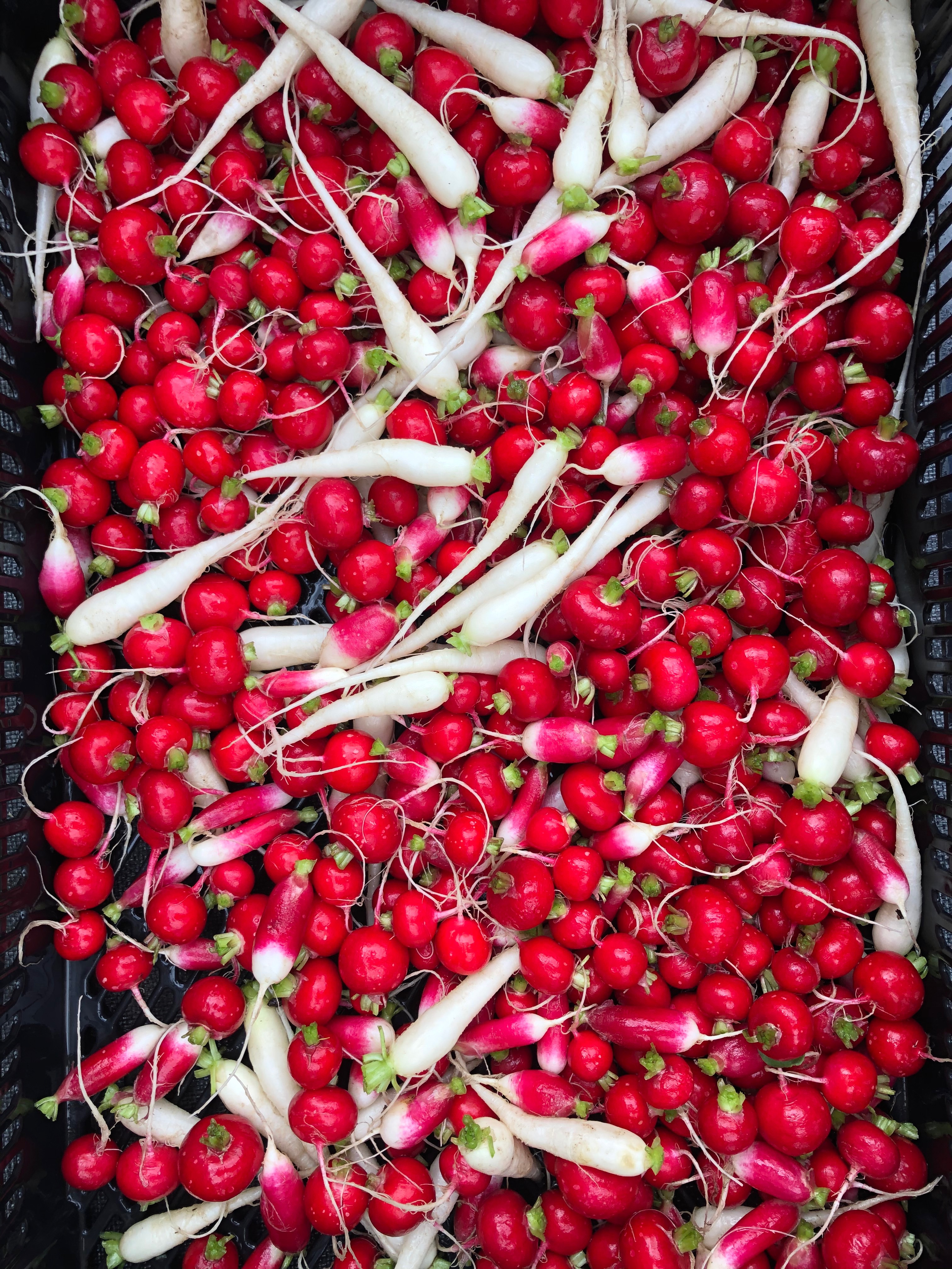 Radish Medley-3 varieties planted early in the hoop house. Delicious.