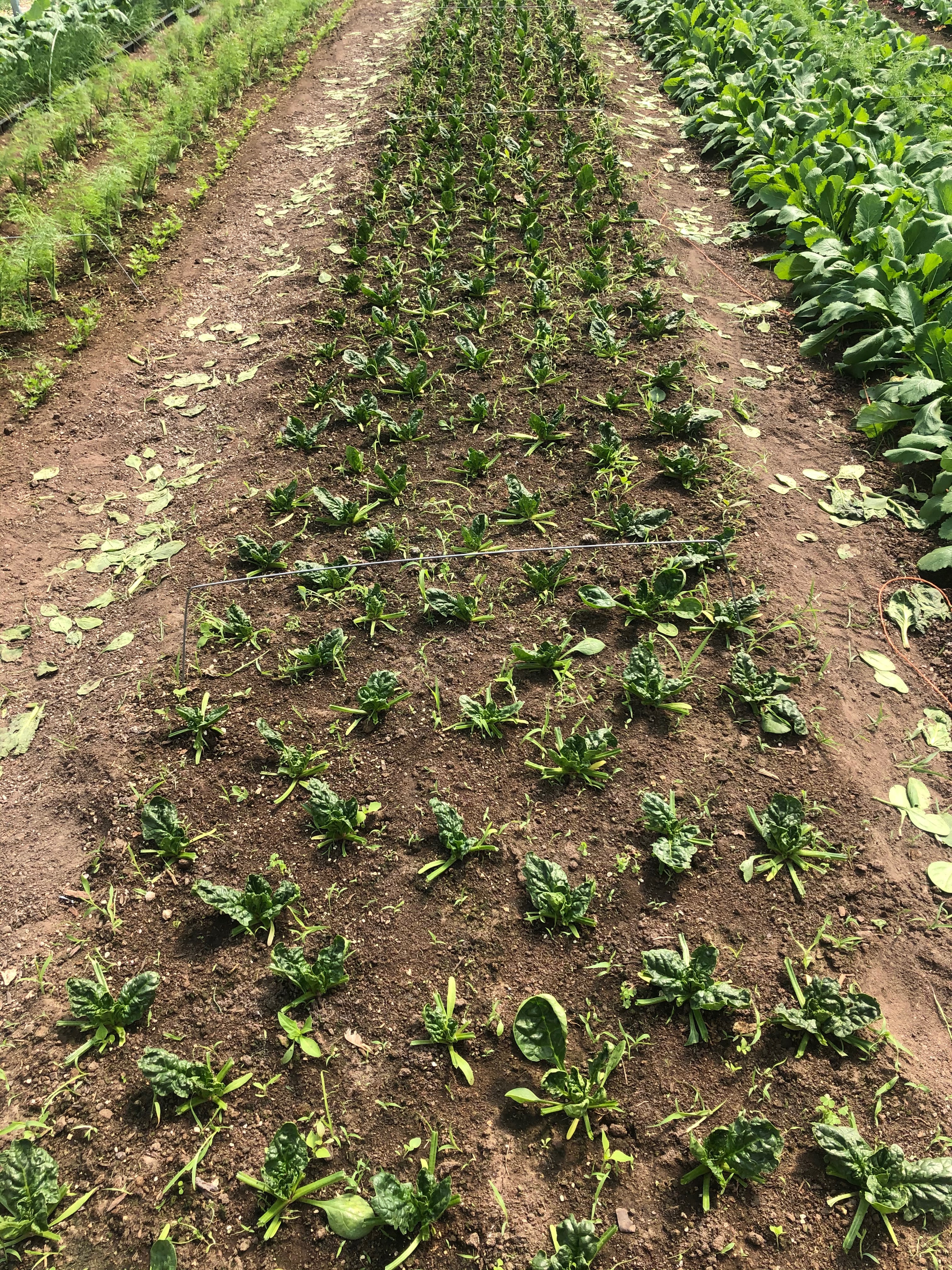 Best guess for next week….head lettuces, leaf lettuce, arugula, salad turnips, chives, PINK! spinach, micro greens and more!