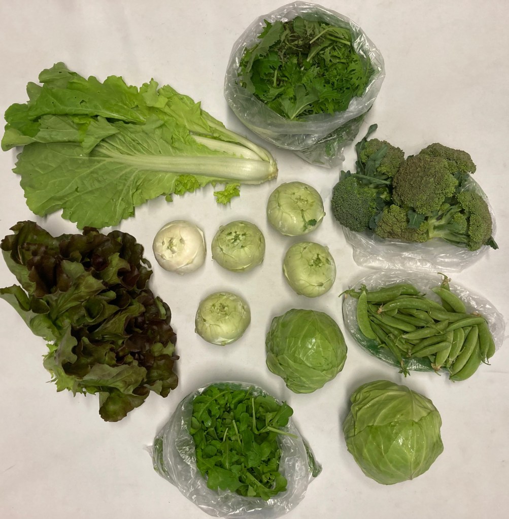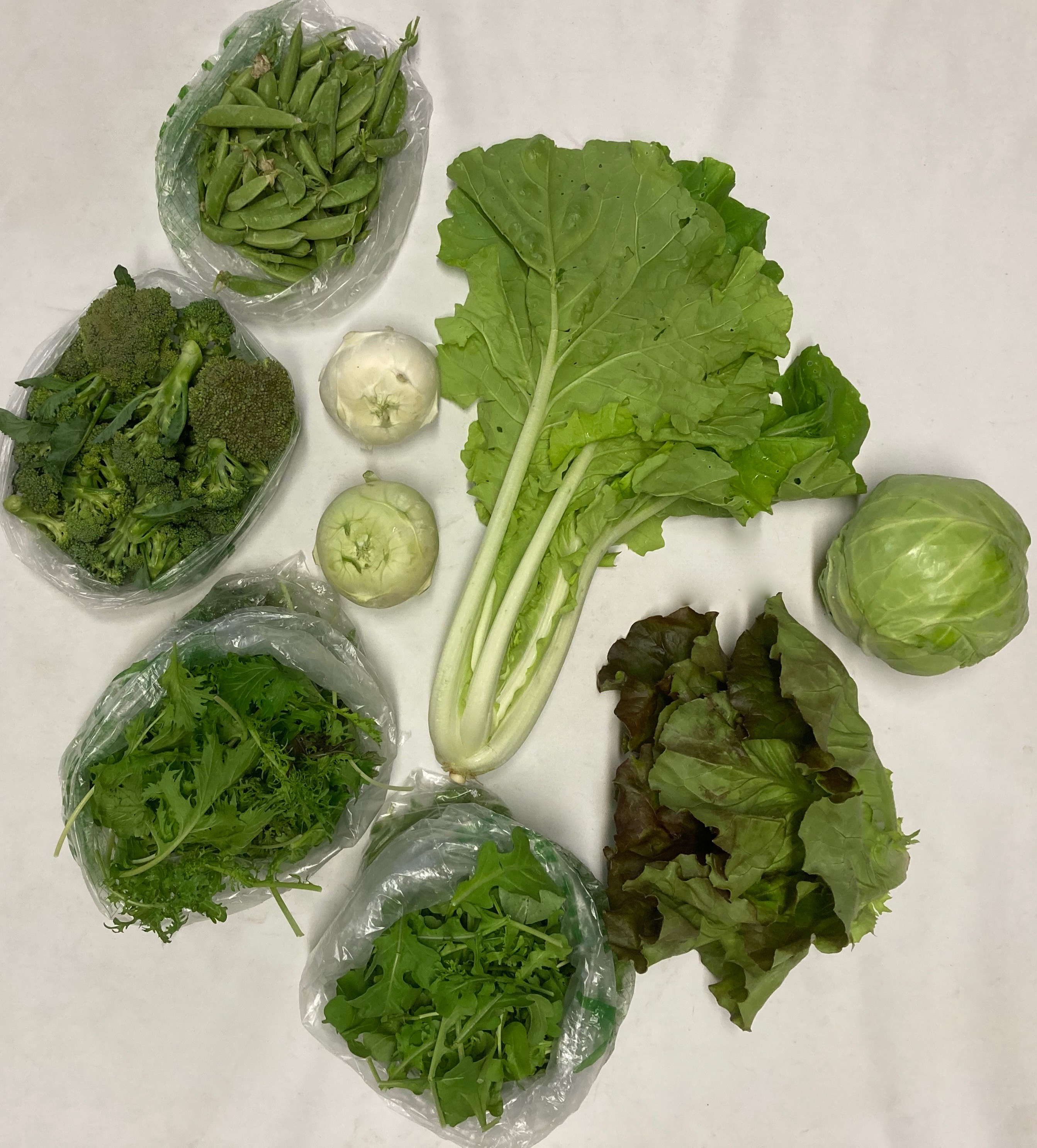 WHAT IS IN YOUR SHARE-HEAD LETTUCE, ASIAN GREENS MIX, KOHLRABI, TOKYO BEKANA, CABBAGE, BROCCOLI, SUGAR SNAP PEAS, ARUGULA