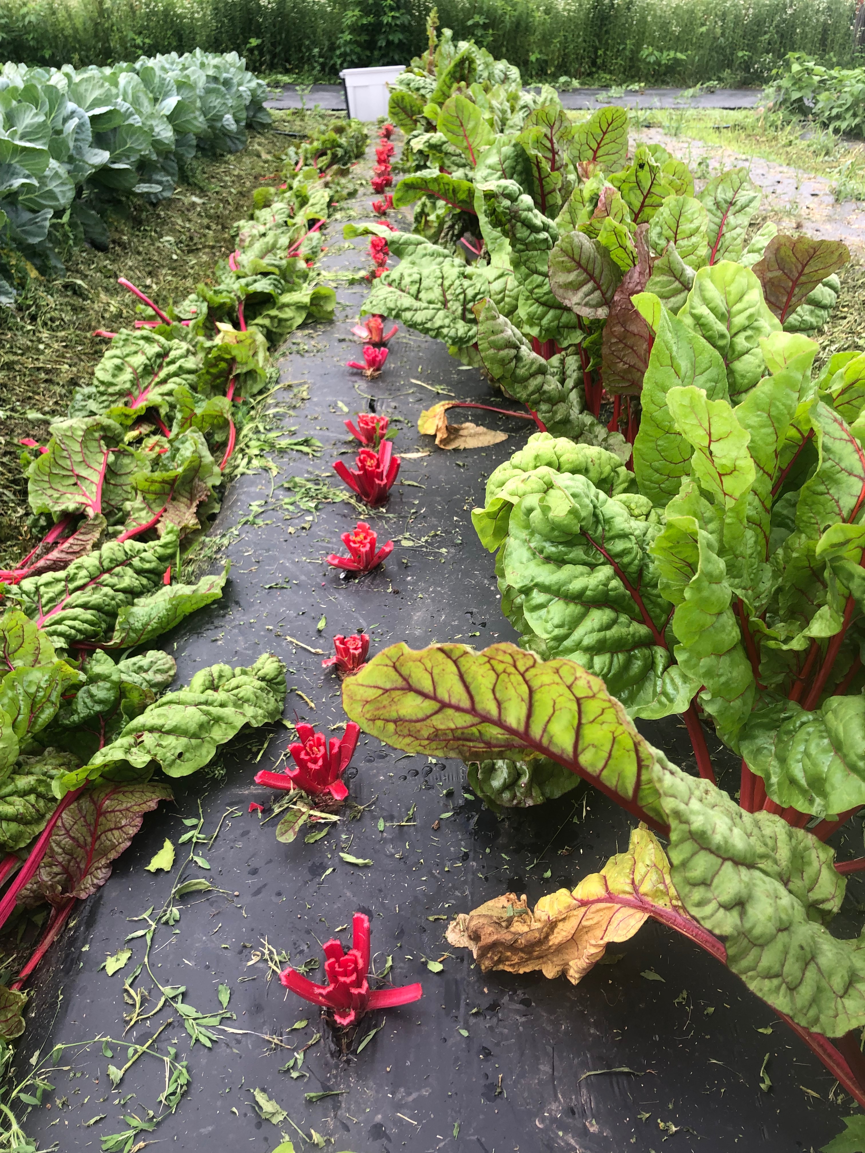 We are in full summer garden bounty mode here. HUGE! harvests hauled up from the garden and the tomatoes are kicking in and the peppers too. The days are full and happy. Irrigation is running around the clock as it is dry but we are keeping up. The plants love the heat and bright sunshine. All outside crops are in for the season and we joke we are riding the wave to the end now…..it’s fun to watch the brussels sprouts grow tall and the squash size up.