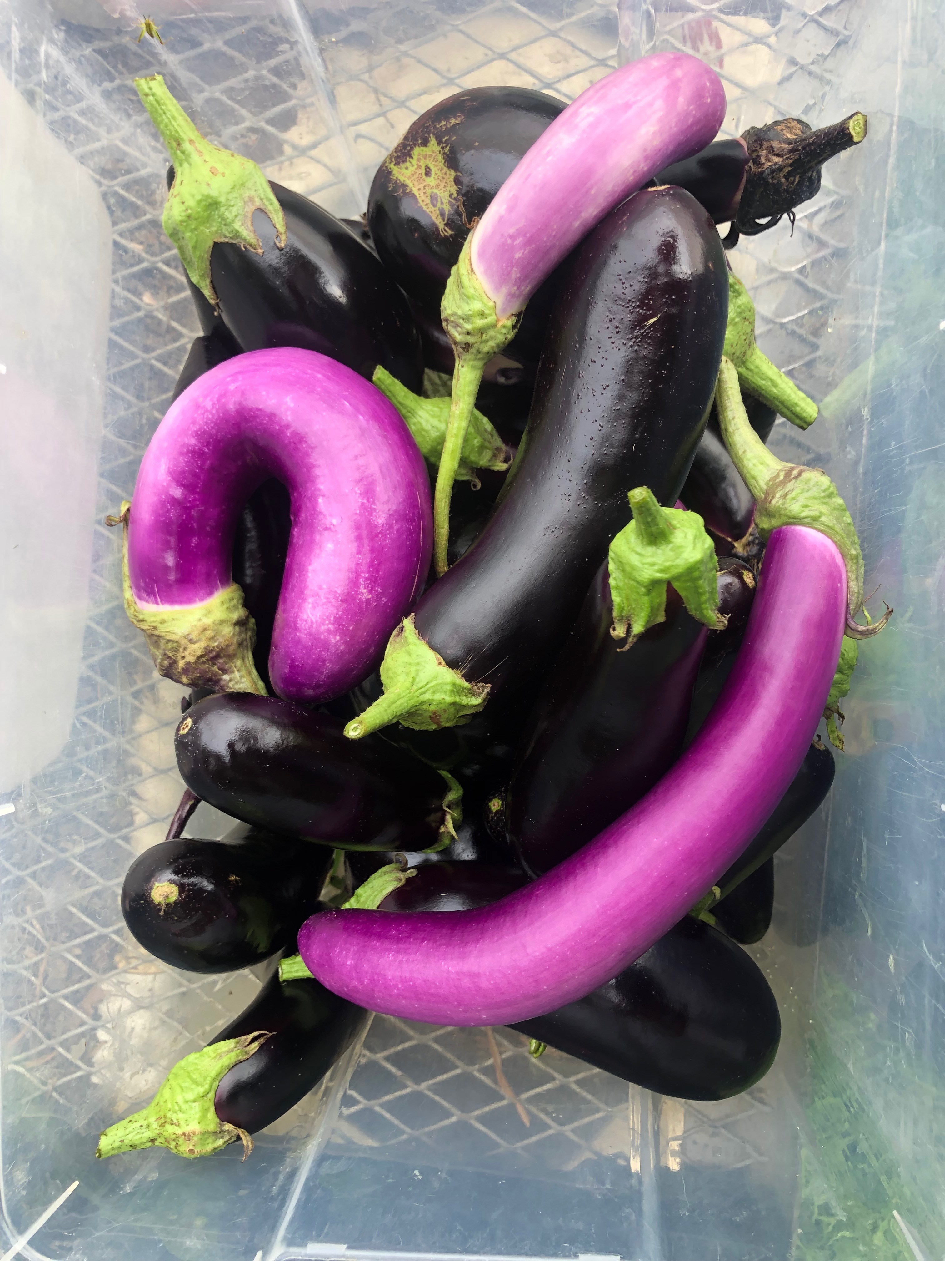 Purple filet beans-These are the beauties that were flattened in that terrible storm. We had a great harvest off the pancaked plants BUT it is a 1 and done……impossible-or near impossible to pick and not break the stem. Enjoy! this is the last of the beans until the next rotation in a few weeks.