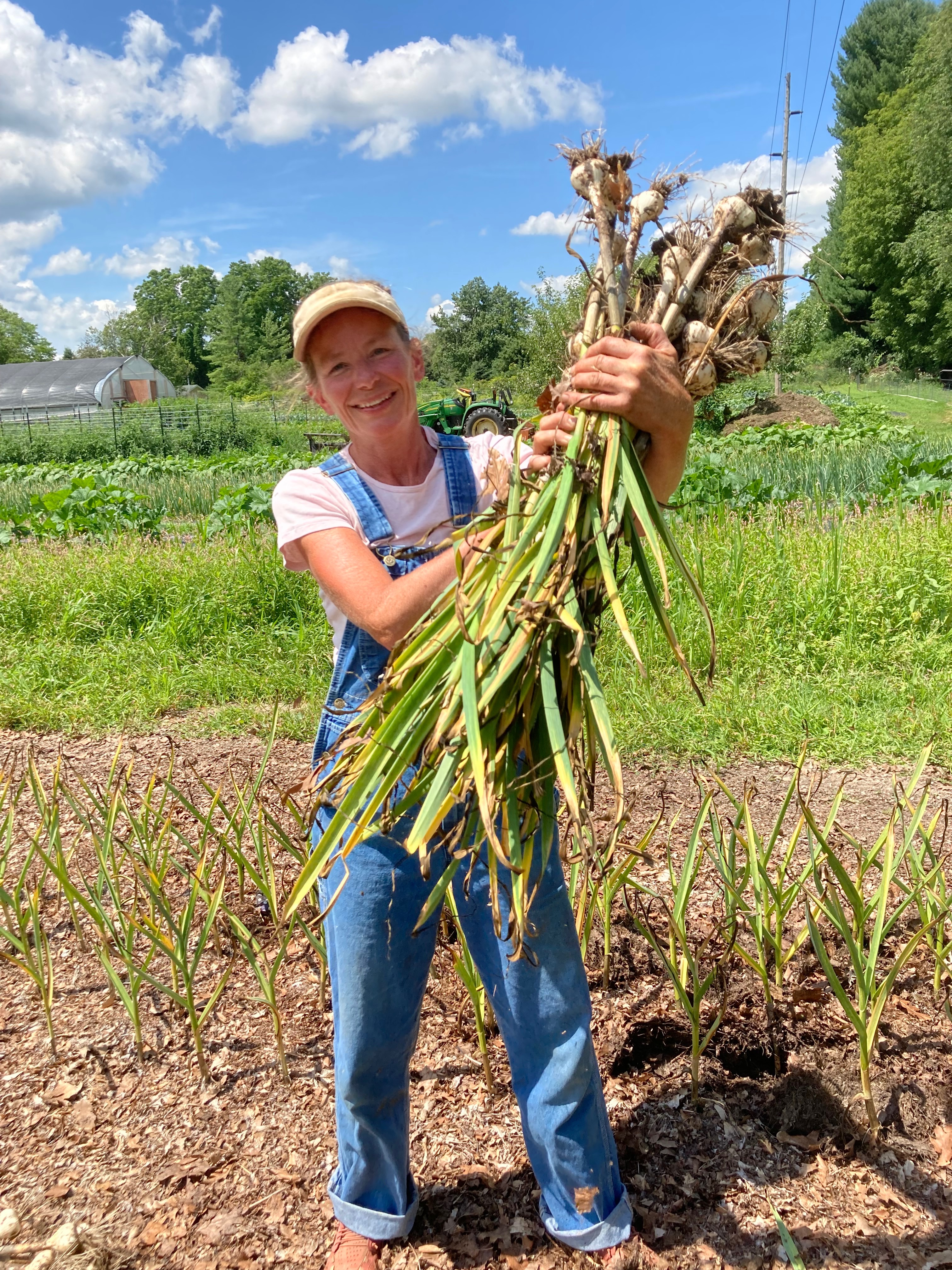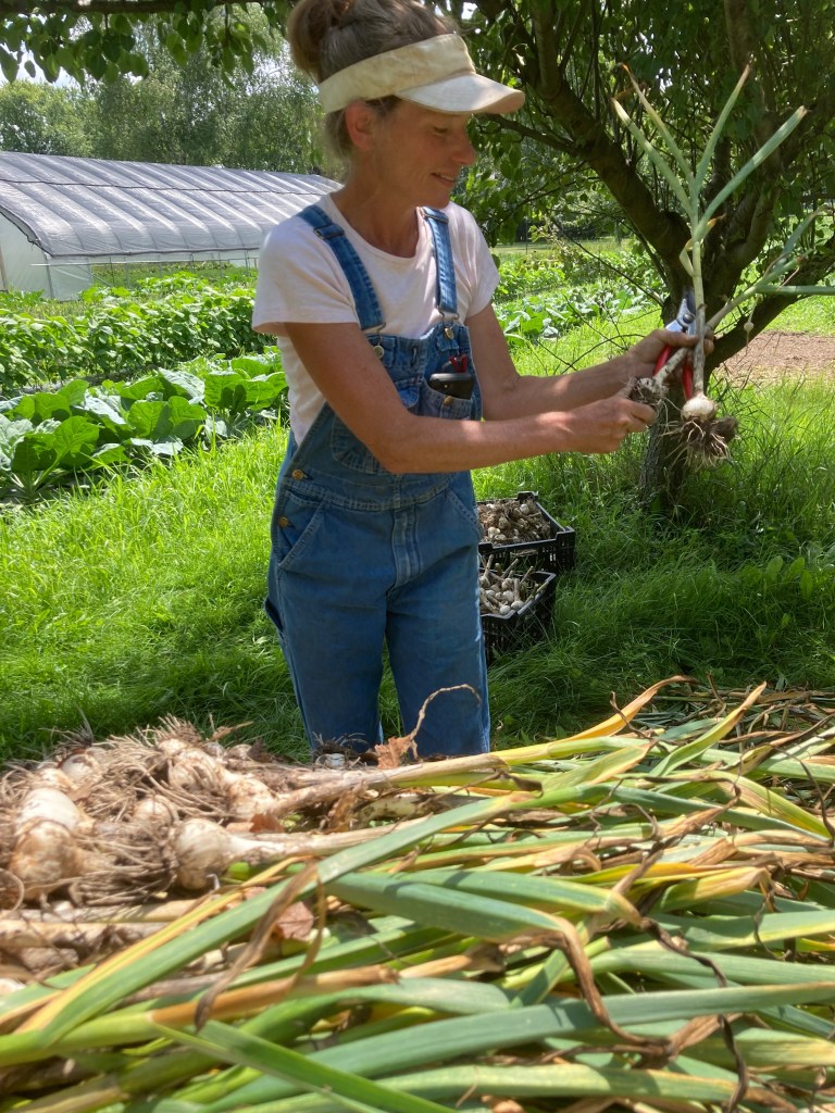A good strong garlic year for us. Fresh just pulled garlic in every share this week.