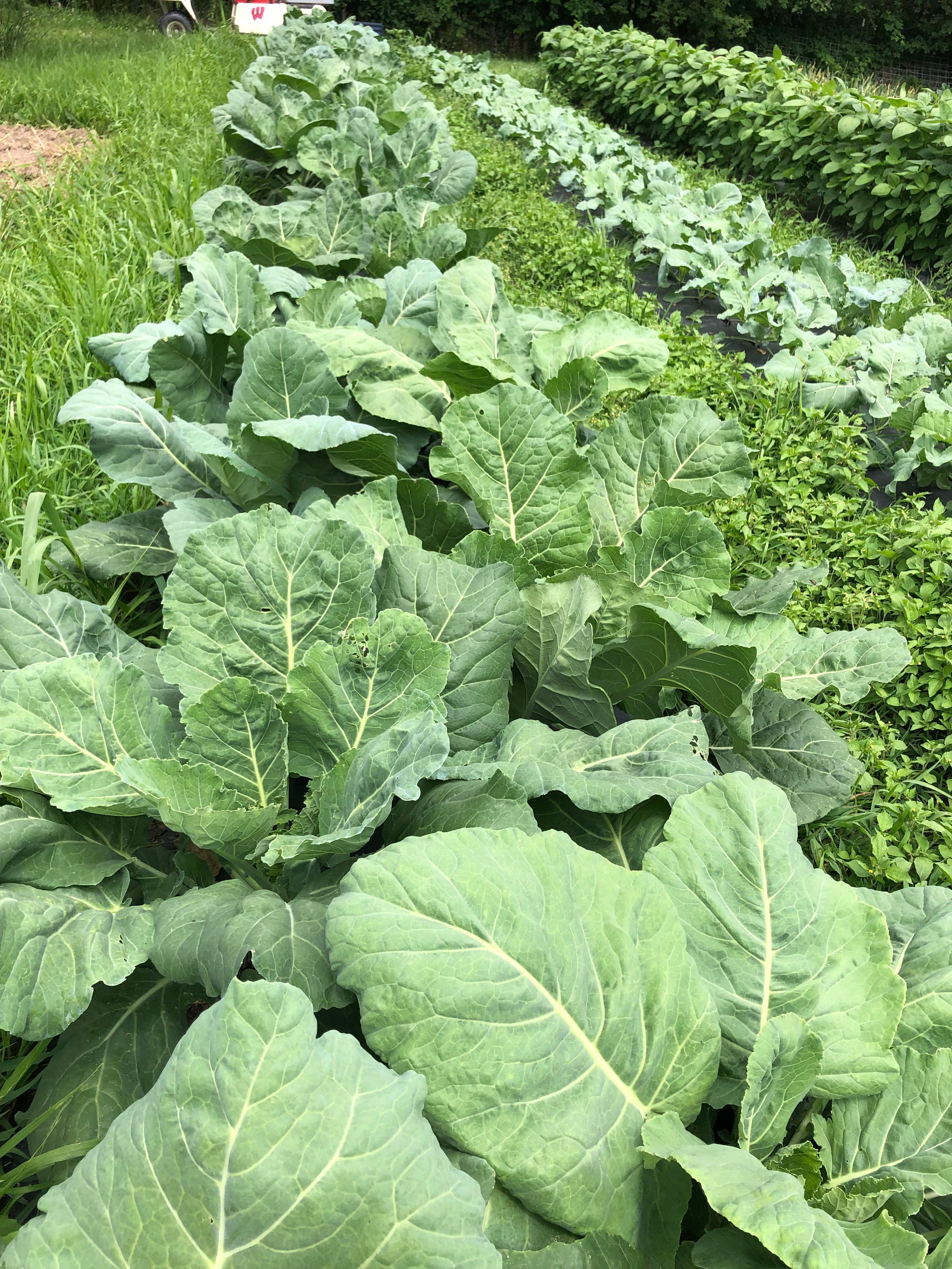 Collard greens-A huge favorite around here. We use it as our wrap for sandwiches. Cut the center spine and use as you would a wrap or bread. Also, delicious in side salads or stirfry. Chop, saute and add to the mix. Makes a great slaw too.