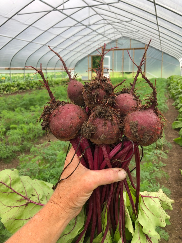 Beets-We did a selective harvest of the beets out of hoop 2. Pulled the bigger ones and those that needed to give their neighbor a bit more space. Snack Pack only this week. More to come.