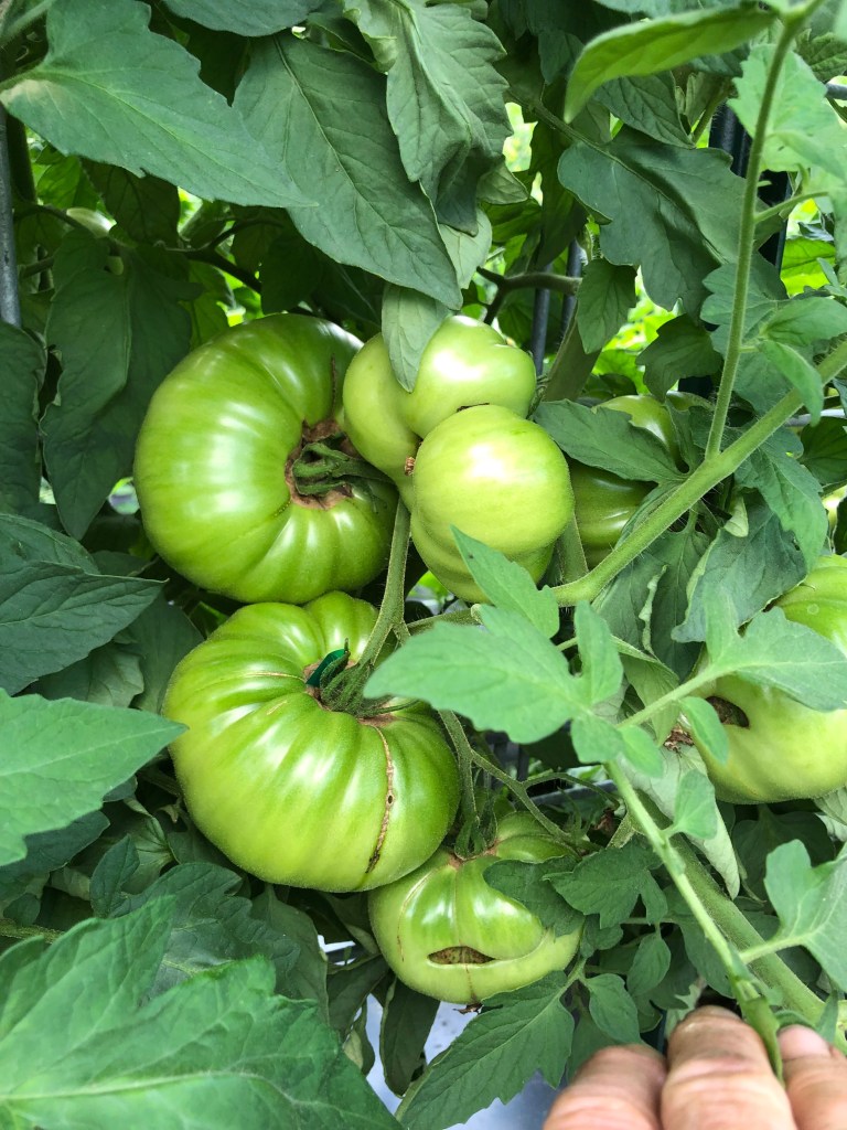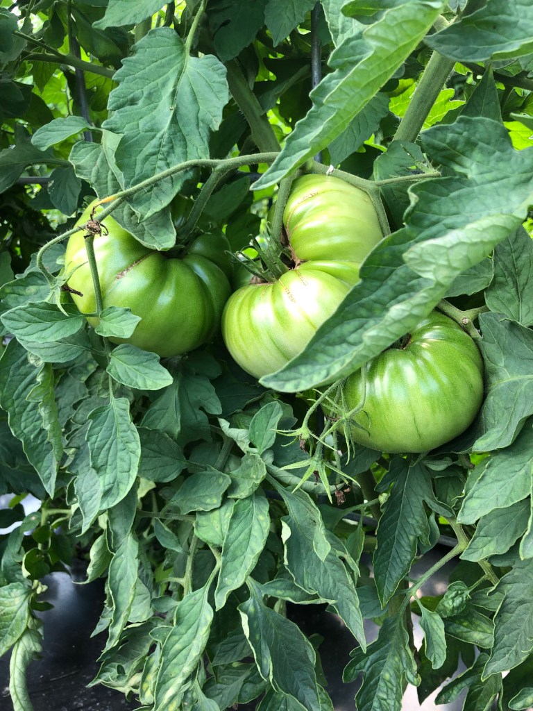 The melons are forming and about the size of a baseballs, peppers are forming too and a few jalapenos ready for the “extra table” this week. Tomato plants look fantastic! Won’t be long now.