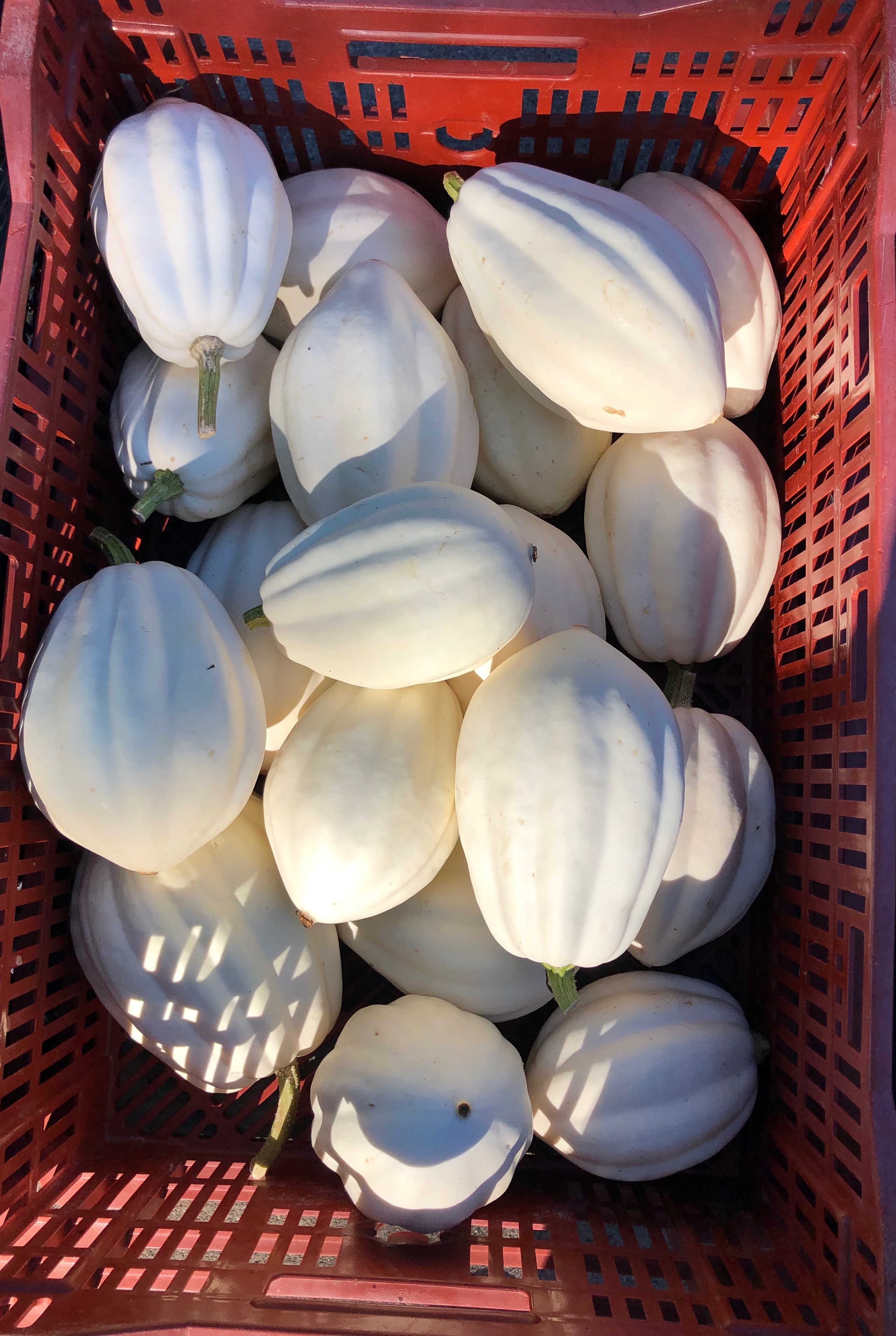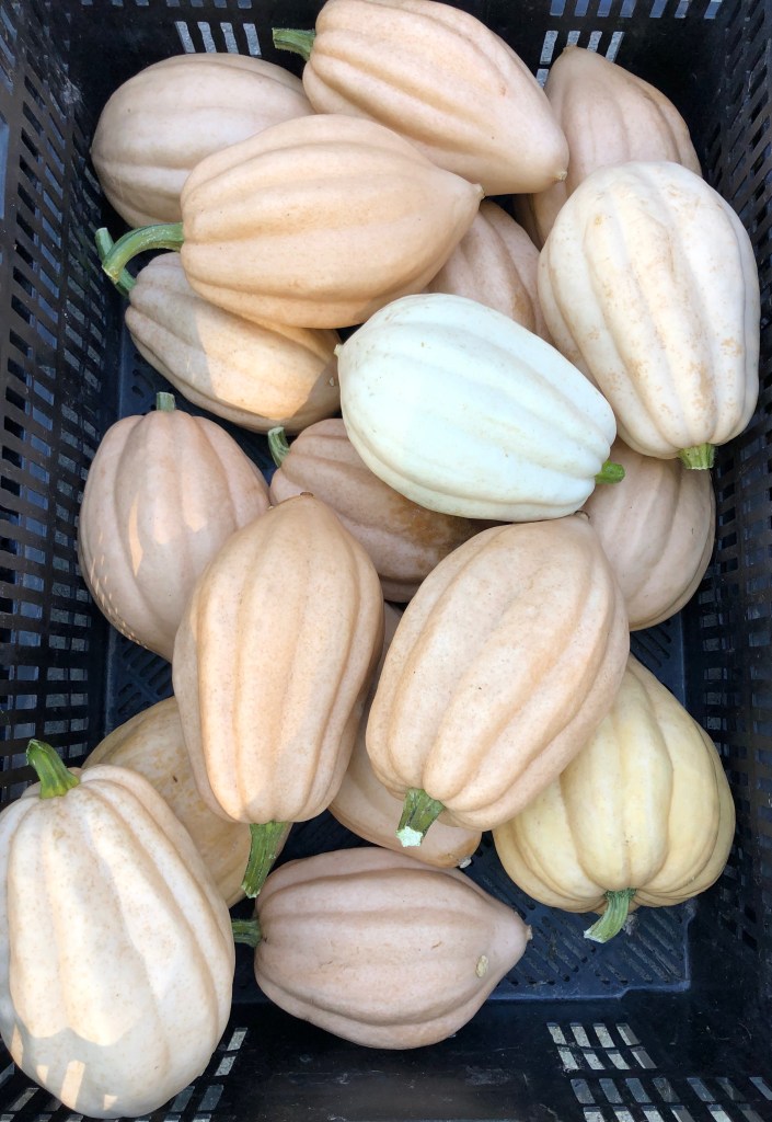 Squash-We now start “choose your squash”…Several varieties and size selection will be out for snack pack to choose 1 and full share to choose 1. Acorns, delicata, honey nut, autumn frost, carnival and more… Ornamental mini pumpkins out too just in case members are “squashed out” or just would like a bit of autumn cheer on their table this week.