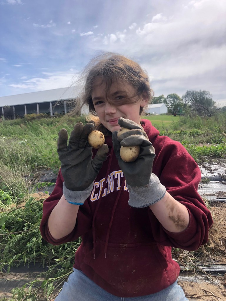The fun continues as we visit the pumpkin patch pulling out beautiful pumpkins and squash….and digging up potatoes for future shares and winter storage is always fun.