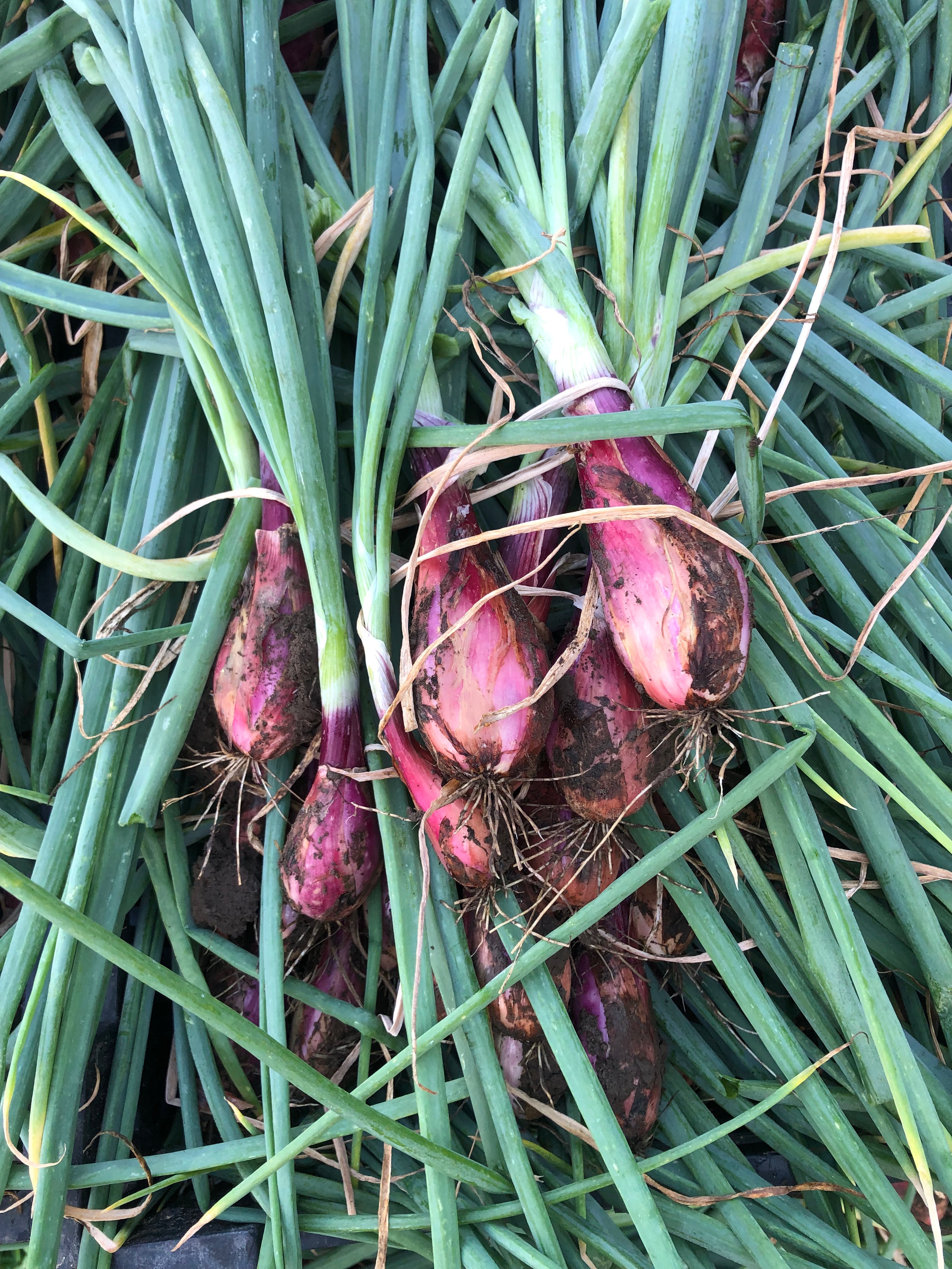 Shallots at summer harvest.Shallots dried/cleaned and ready for the shares.