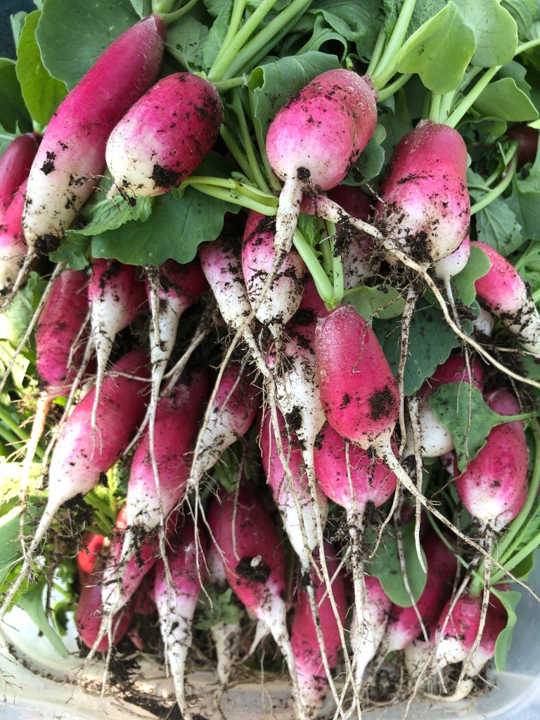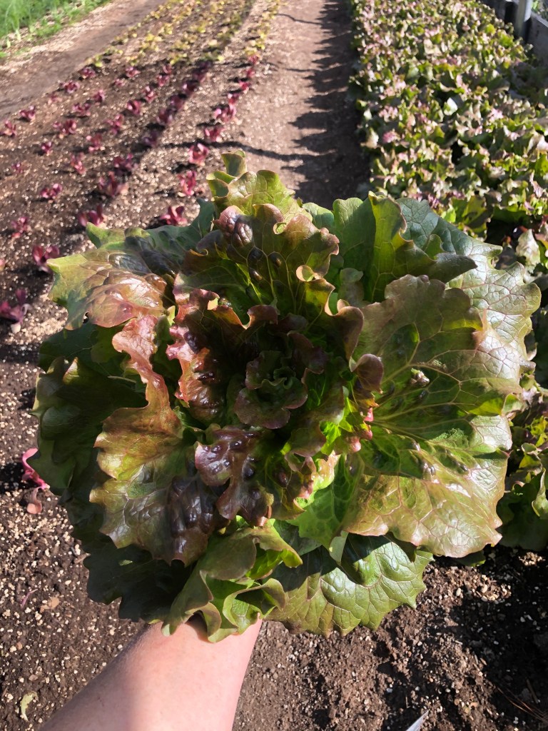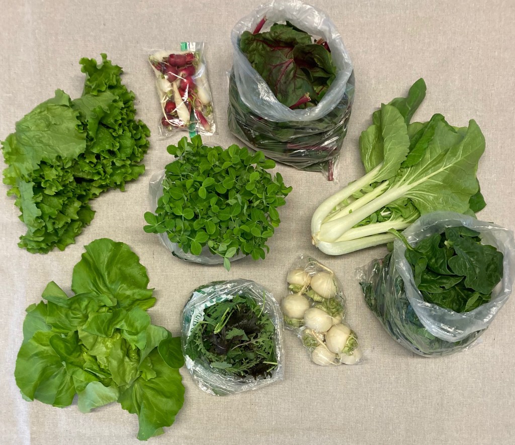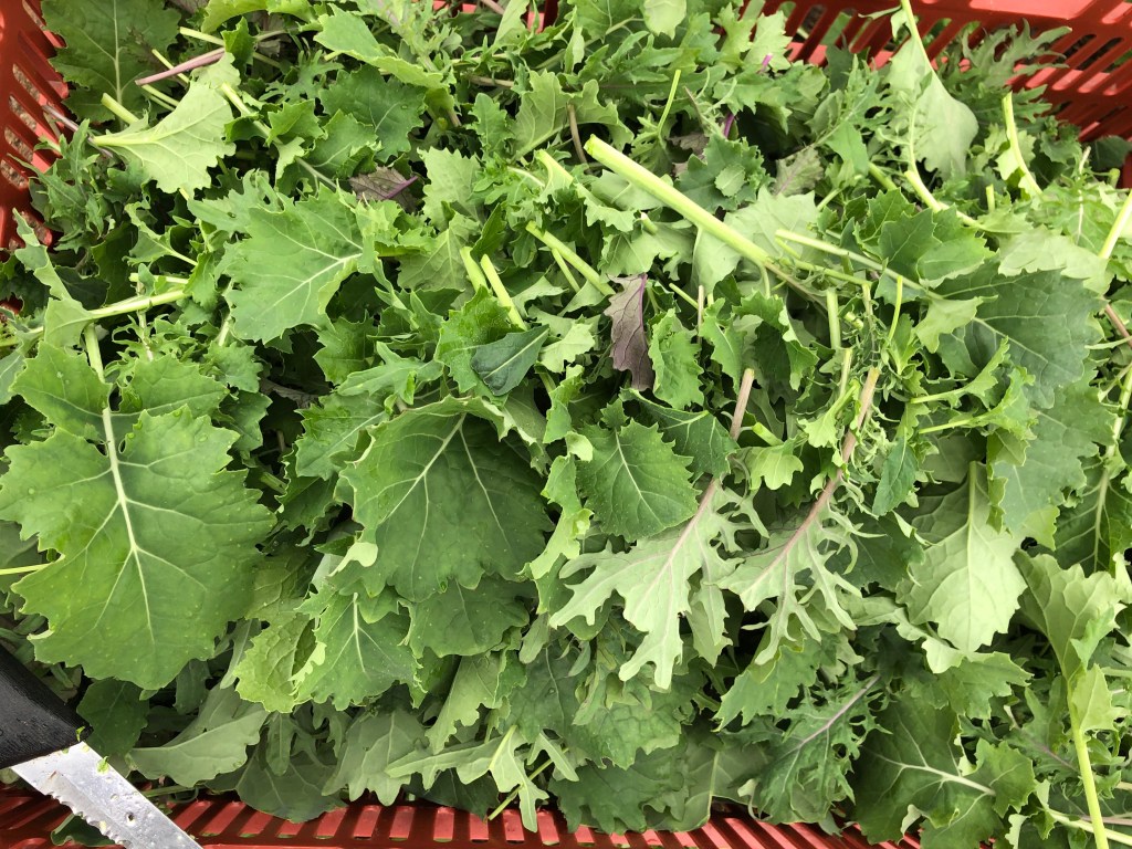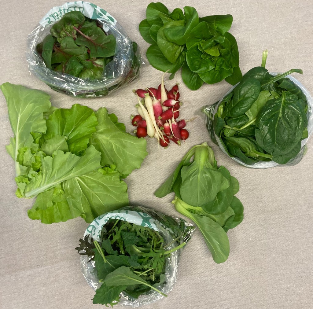 What is in your share-pink spinach, 2 varieties of head lettuce, turnips, pac choi, 1st kohlrabi harvest!