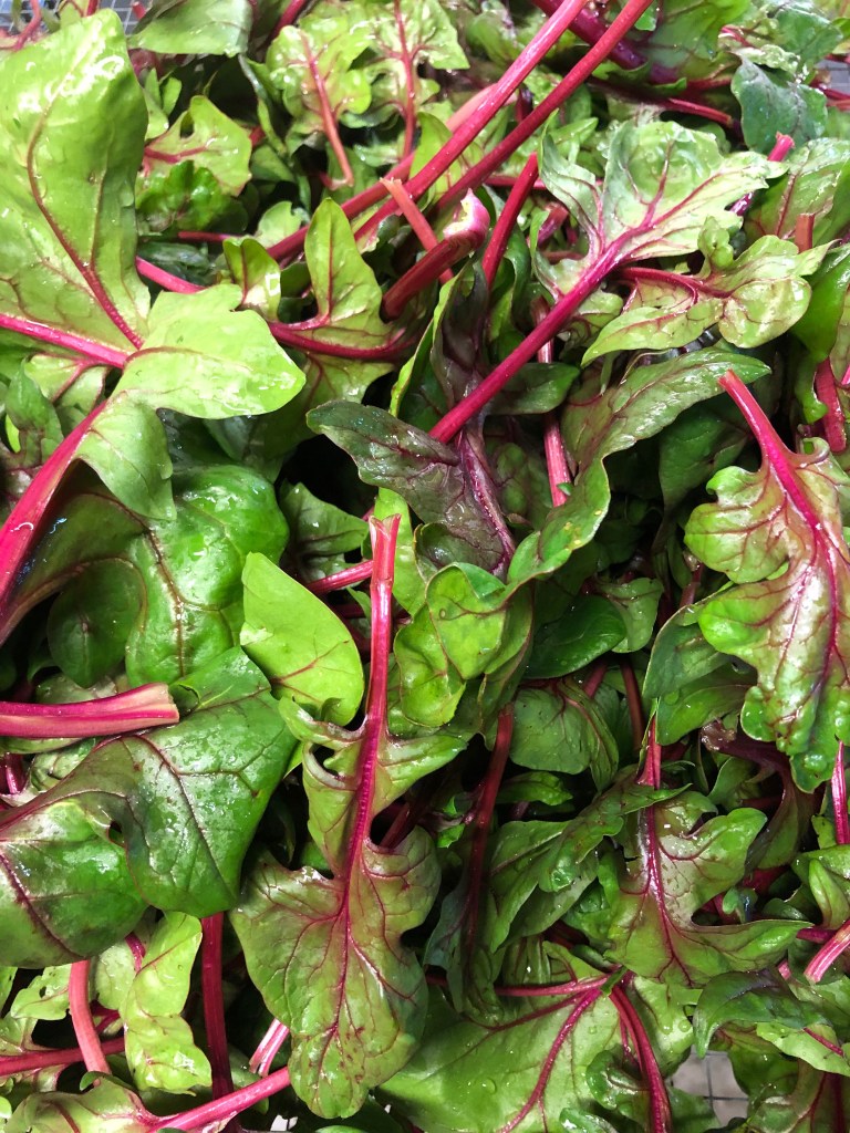 Pink Spinach-This is the final harvest of this beautiful Spring Treat. It does not last long and we general get 3-4 harvests off the crop before it decides to bolt and the leaves get wimpy. We picked a bounty and then pulled the crop.