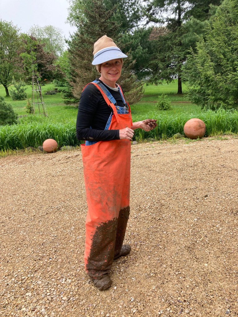 Another happy-and BUSY! week in the gardens. The best news-all 500 pounds of the seed potatoes went in on a perfect morning. A huge relief to have that job behind us. Peppers and eggplant planted and we seeded in more lettuces and leafy greens in the hoop houses. The chilly wet Spring delayed outdoor planting but all is chugging along just on a slightly later schedule. All the cabbages and early broccoli in the field are sizing up. Hopefully next week all the tomatoes go in now that we are past the date of that terrible hard frost of last year-May 24th. We had some much needed rain, made for some heavy boots when transplanting.