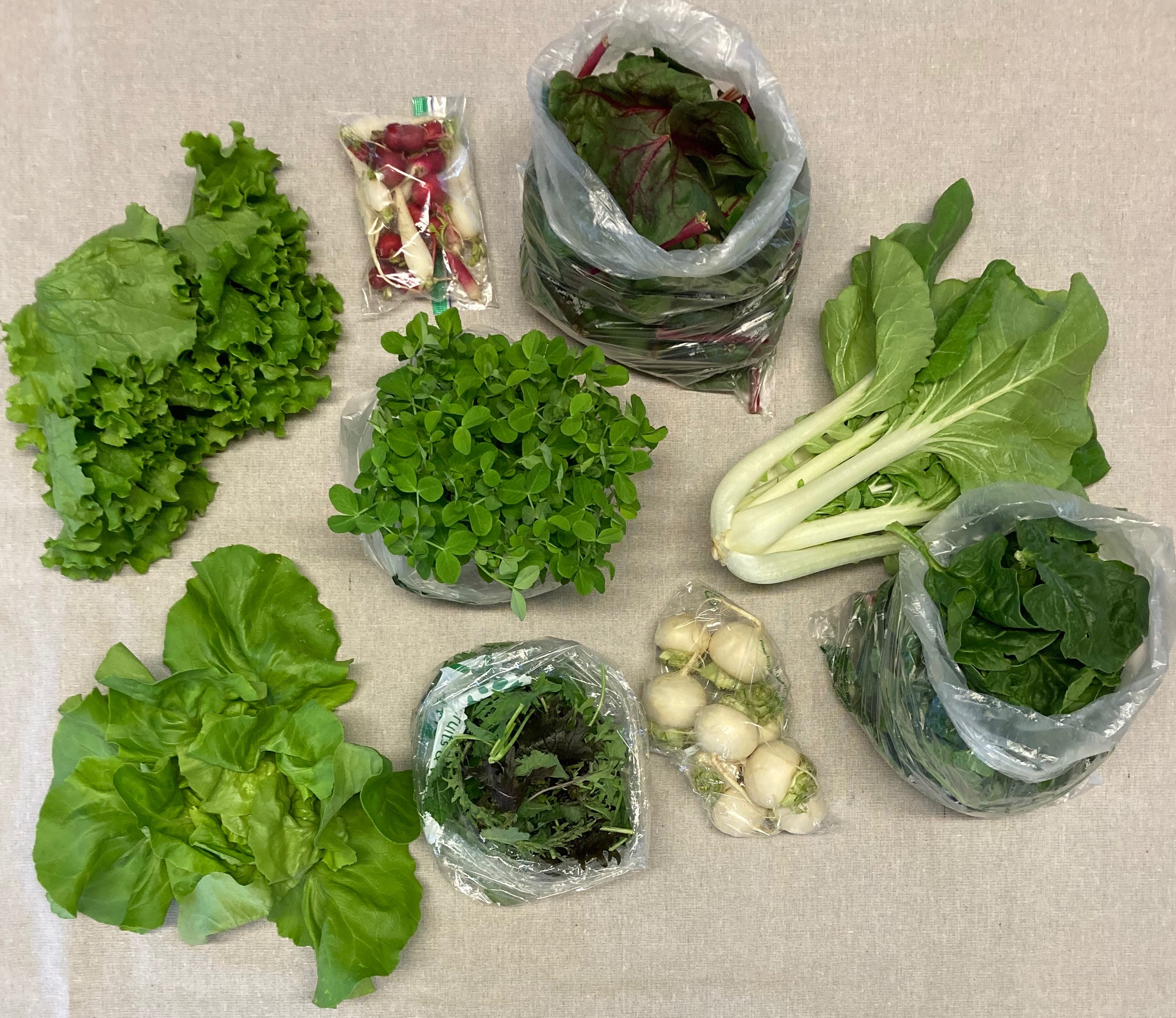 BEST GUESS FOR NEXT WEEK’S FINAL SPRING SHARE-HEAD LETTUCE, BASIL PLANT, LEAF LETTUCE, GREEN SPINACH, KOHLRABI, TURNIPS, MICRO GREENS AND MORE.