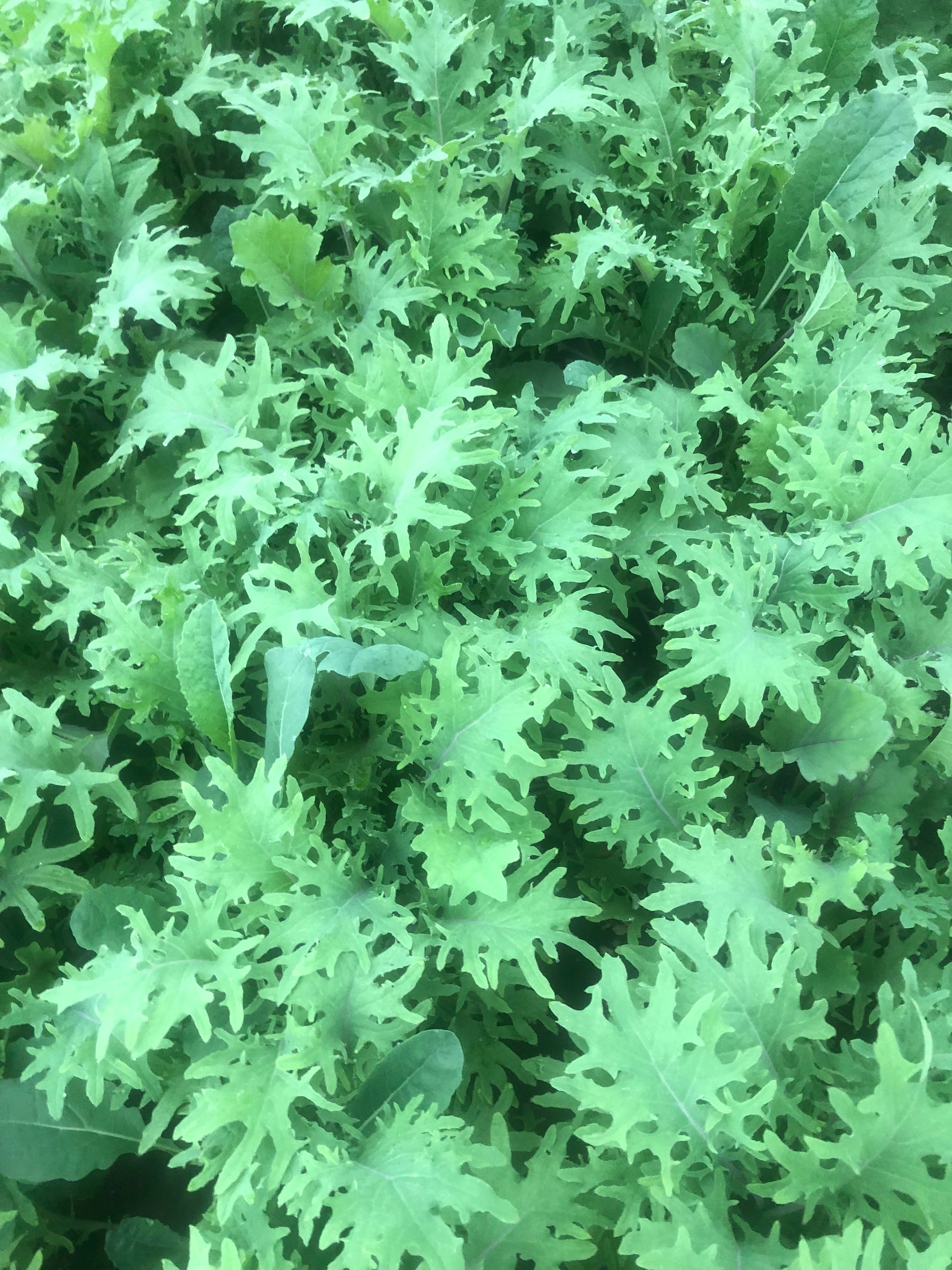 Baby Kale Mix-Fresh in salads it’s great. I love it sauted with the garlic scapes and eat with scrambled eggs.