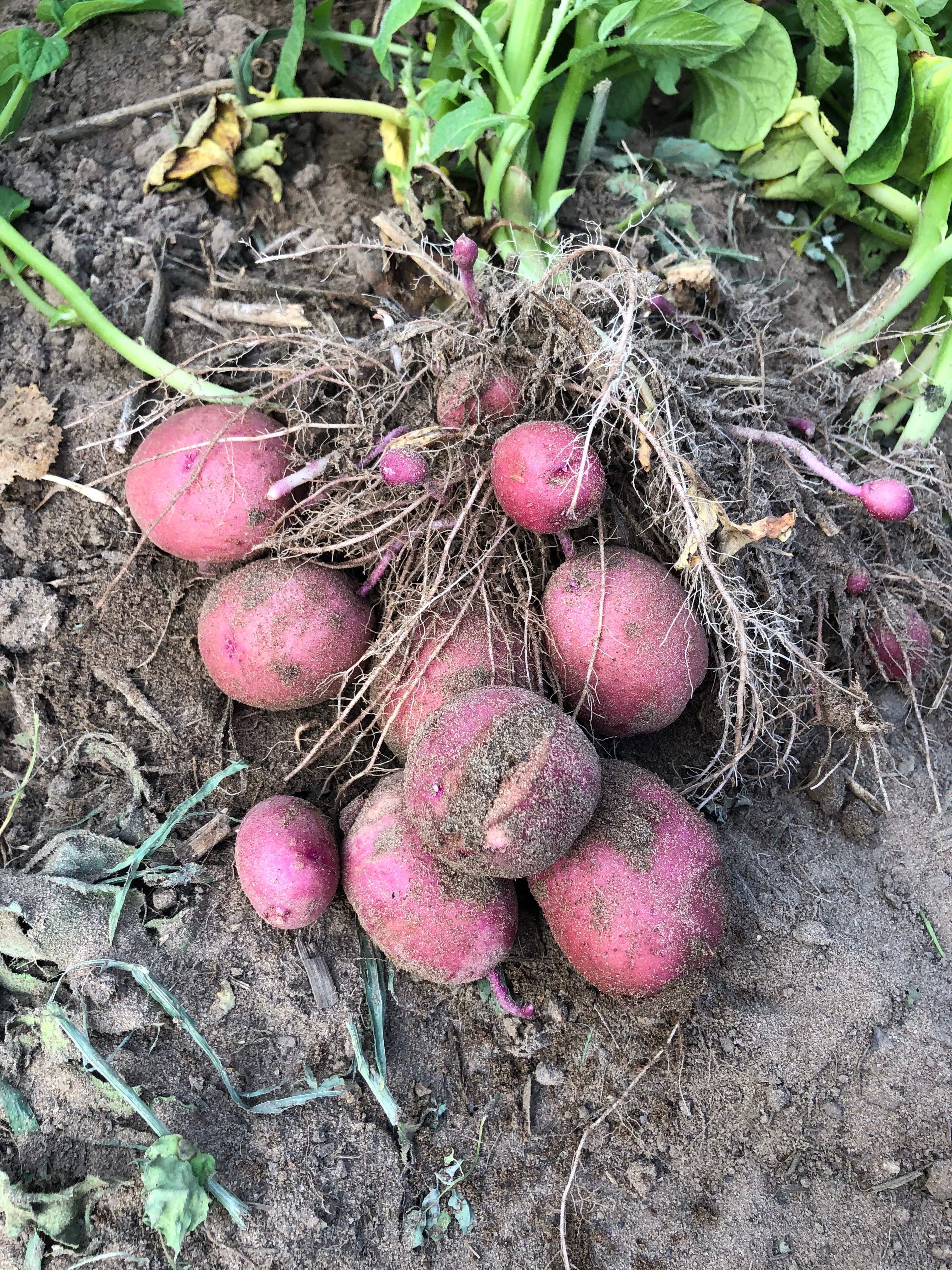 AND! best news ever we started digging potatoes!!! A favorite activity and we have been savoring these gems every night at dinner. We hand fork them out of the ground and then carefully lift with our hands as the skins are so tender. It seems like we just planted and I looked back on the calendar and it was 8 weeks to the day that we put the seed potatoes in. Crazy!
