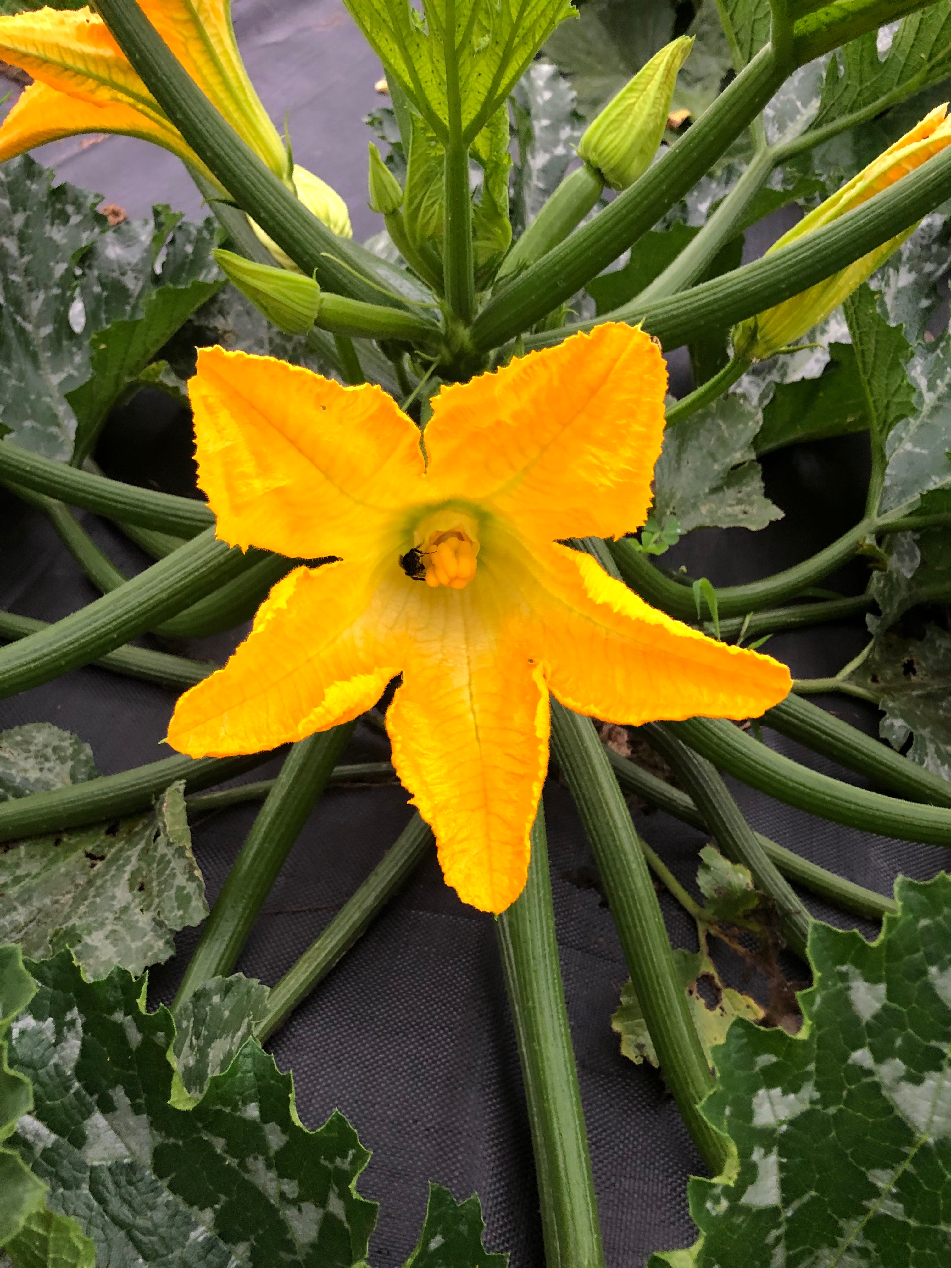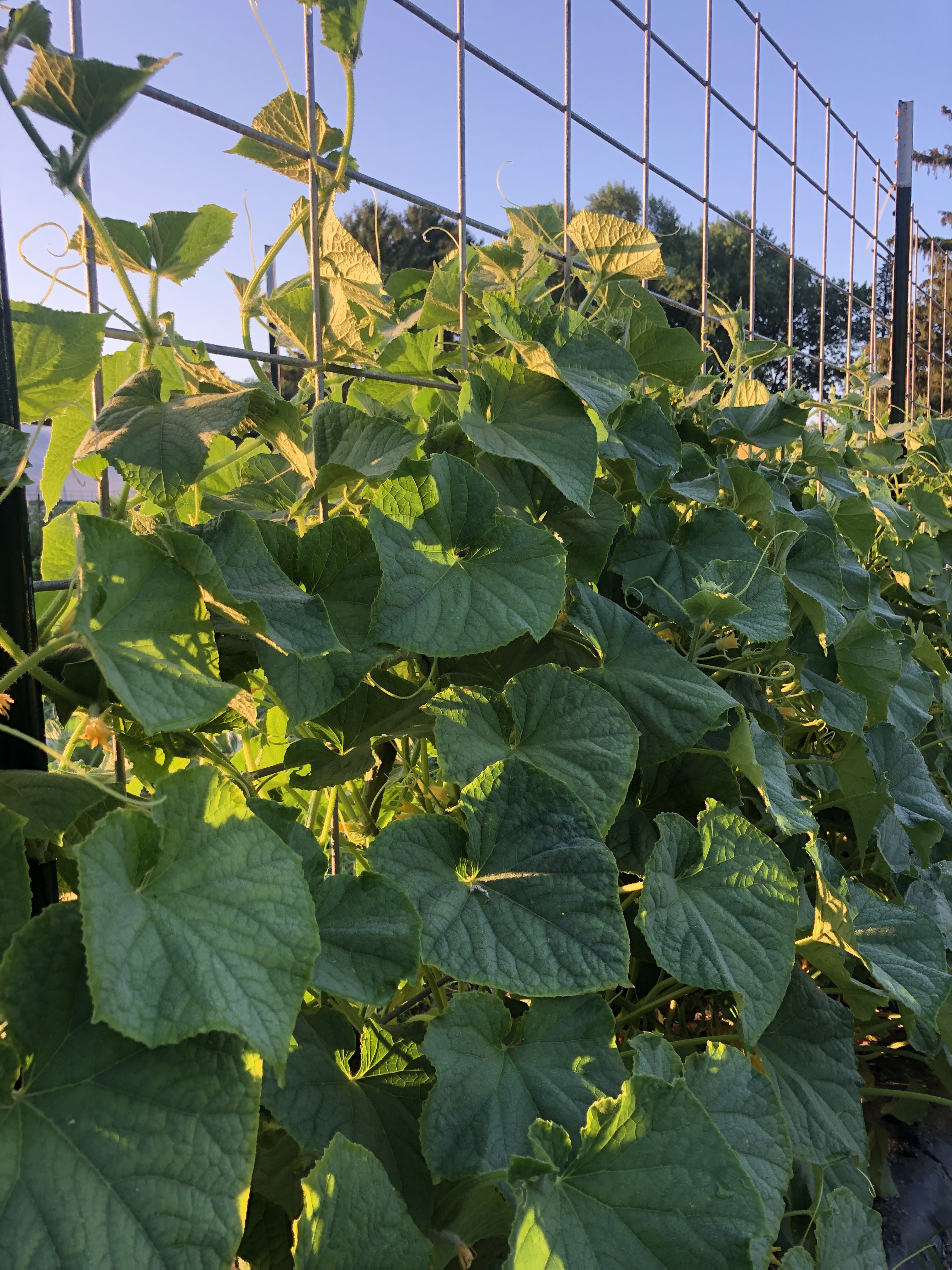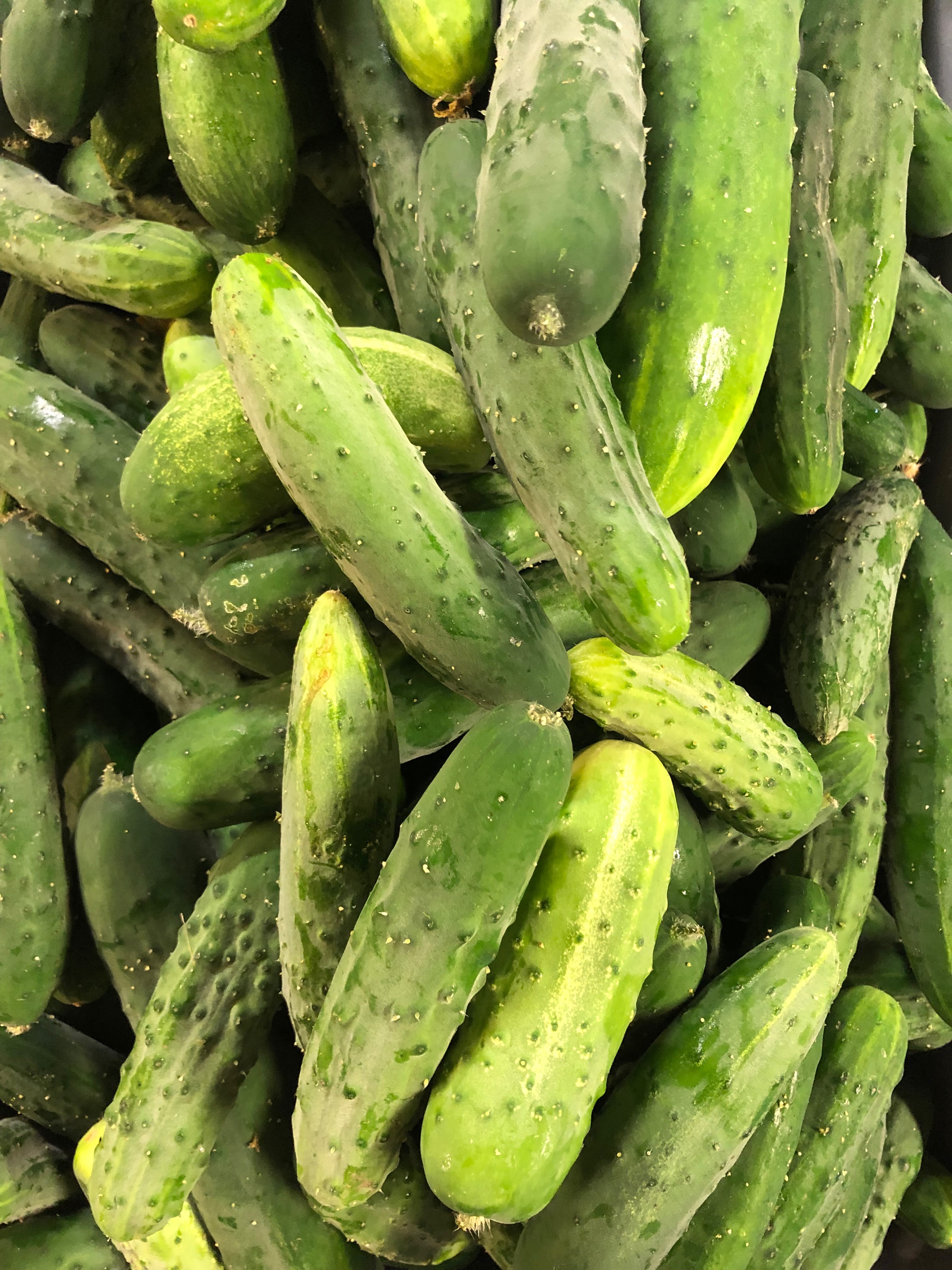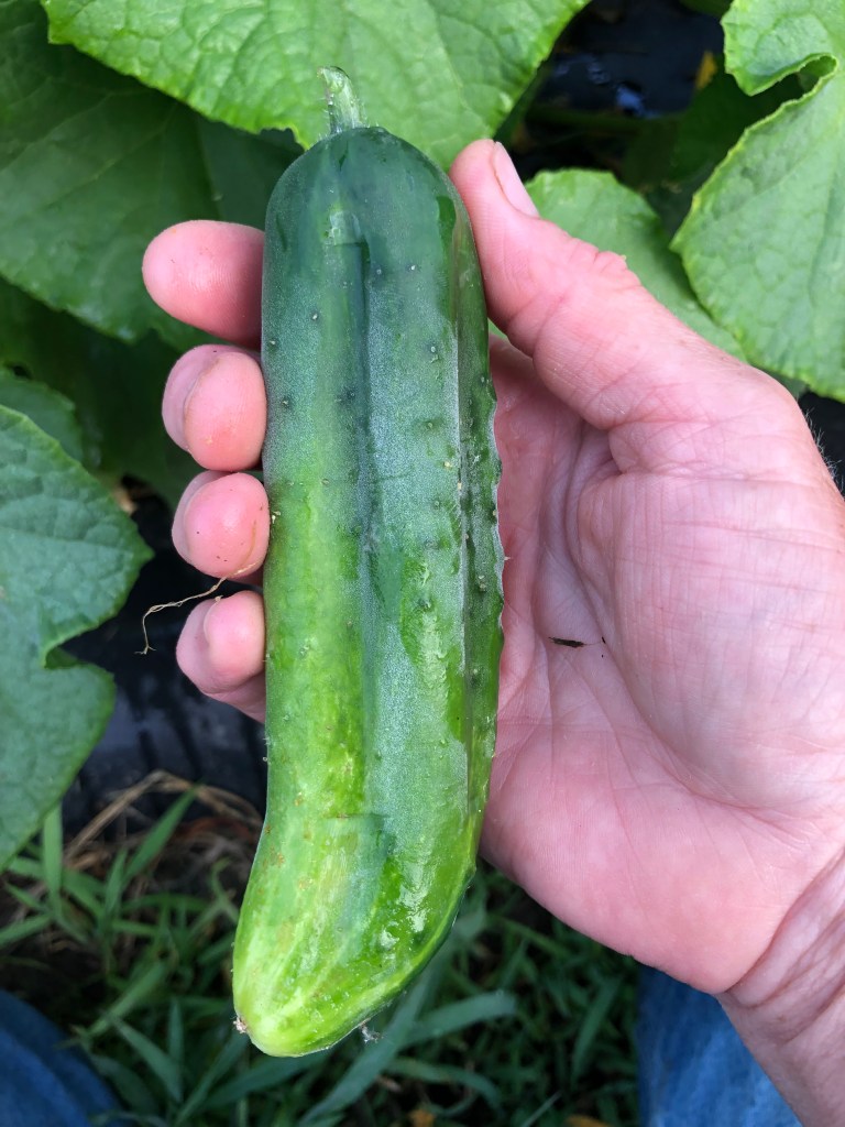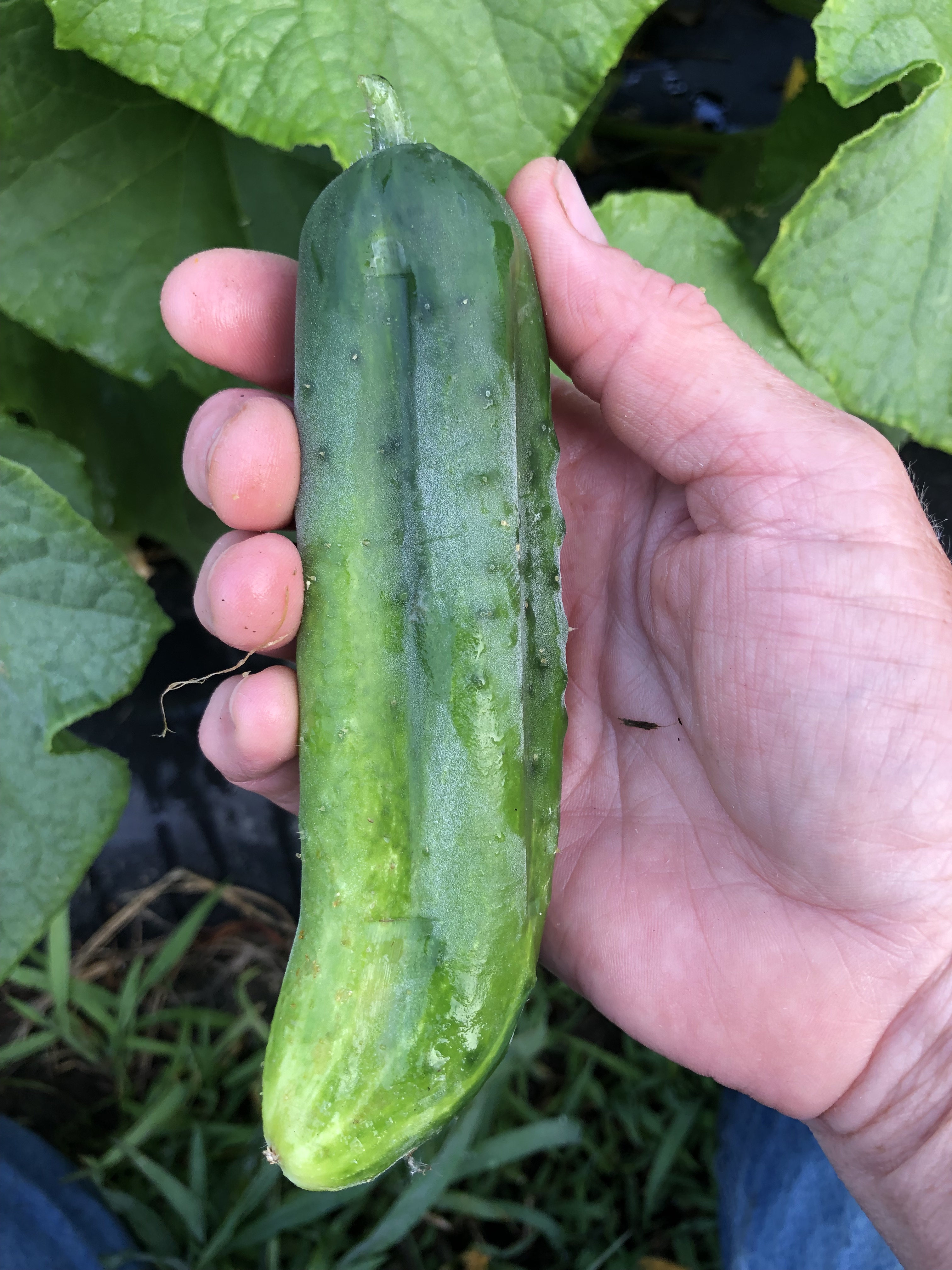 Cucumbers-The vines have hit full production. We pick them smaller in size so there is a smaller seed cavity and we think the flavor is better and skins tender and less bitter.