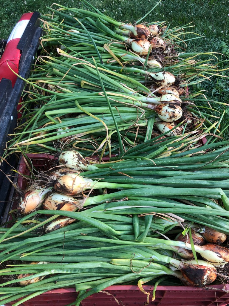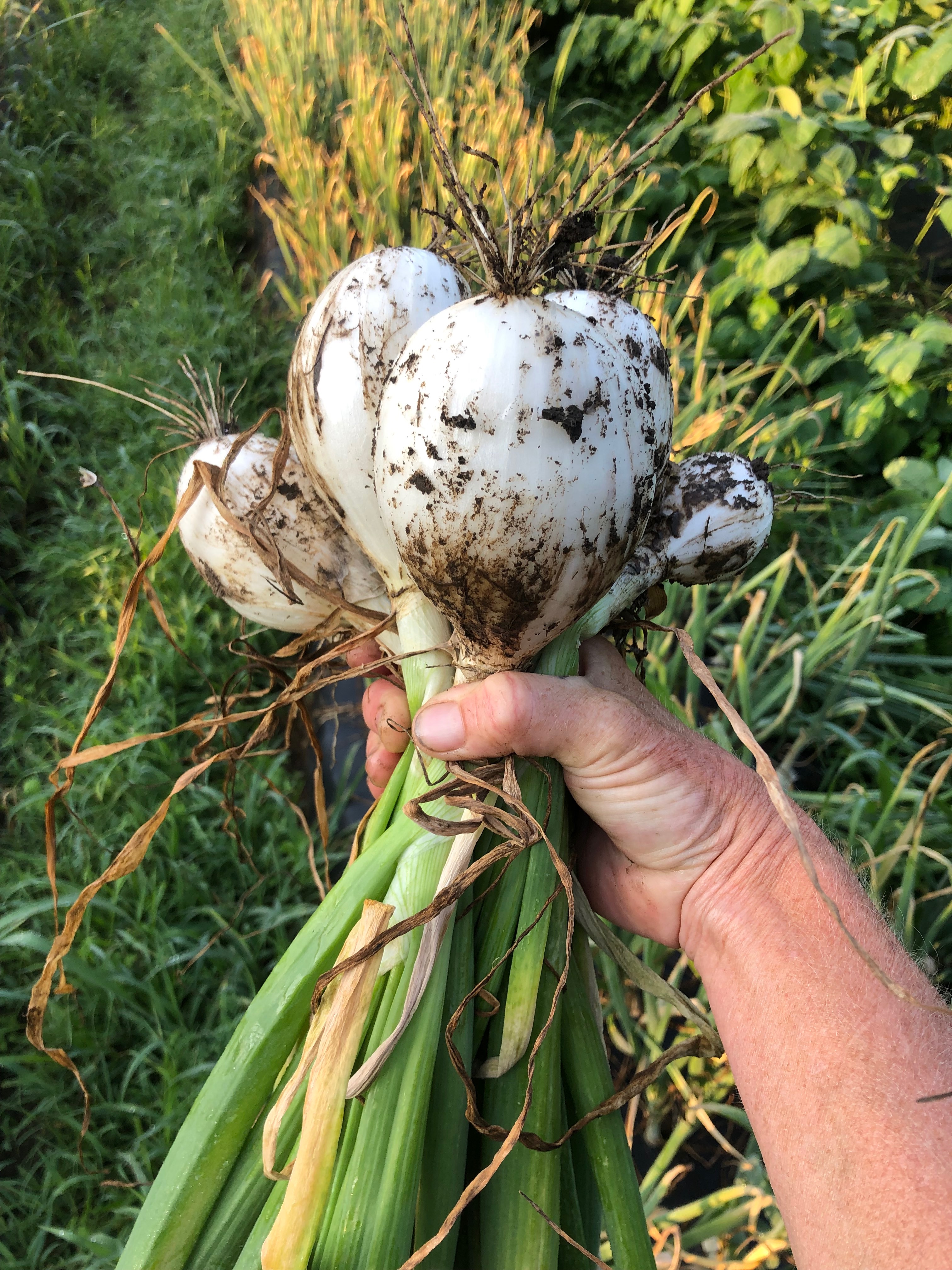 Sweet Onions-Raw or saute they are wonderful. A great harvest and many more will appear in the shares. Best stored in the fridge.
