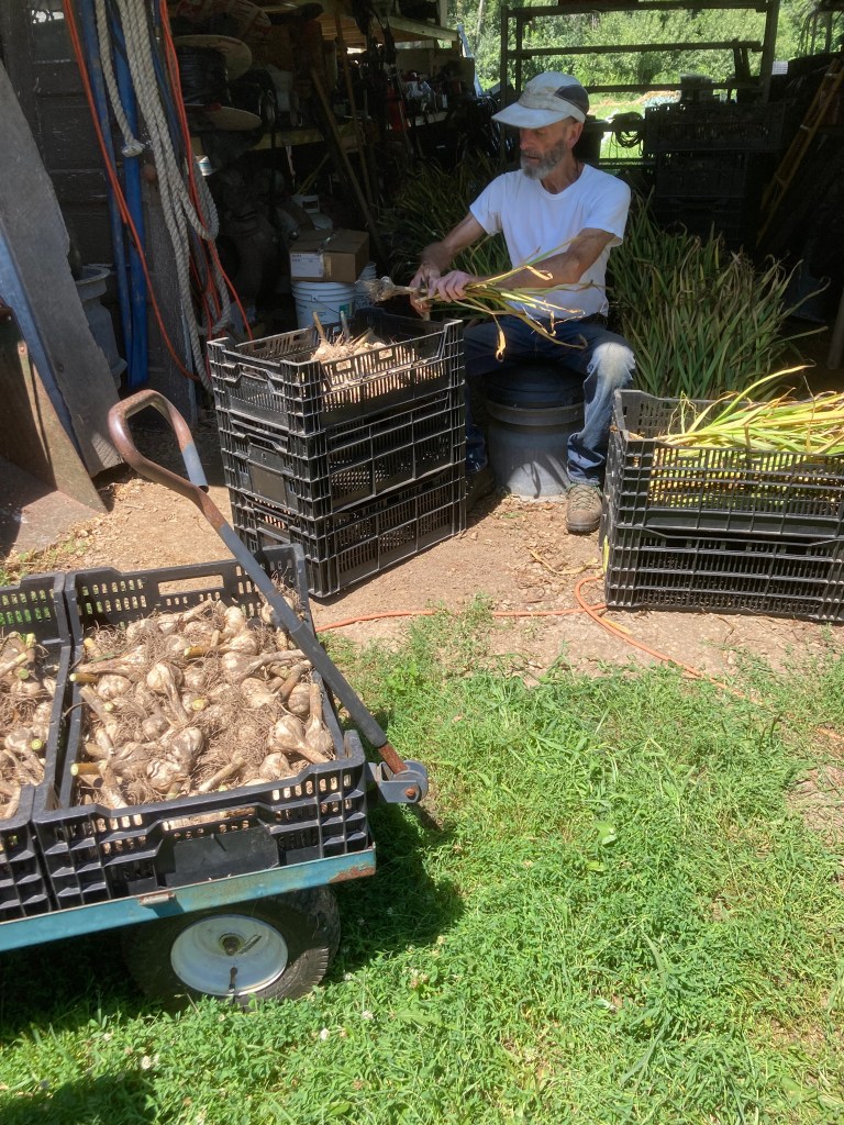 Scott got all the garlic sorted and crated to cure in the shed. It is a good garlic year for sure….