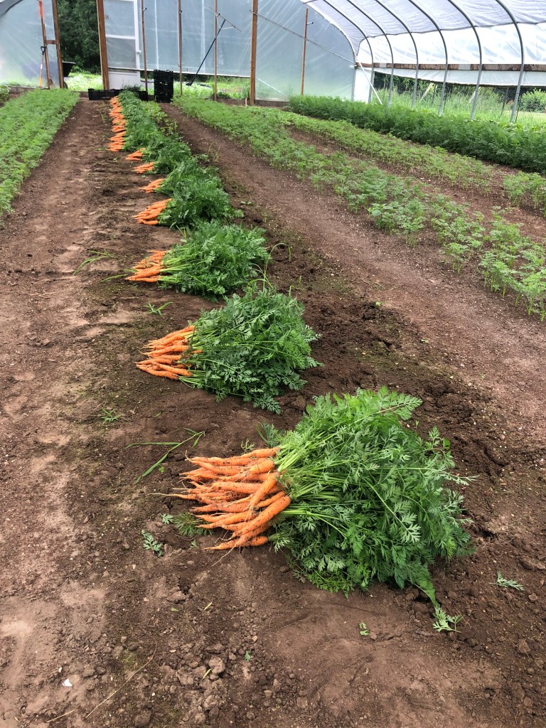 Another fast week of abundant daily harvests. We are thrilled with the sweet onions that came out of the ground on a perfect morning. 2 long sections of wonderful. We are making our way through the cleaning of them and they will appear in the shares for many weeks to come. Next week the storage onions and shallots will come out.