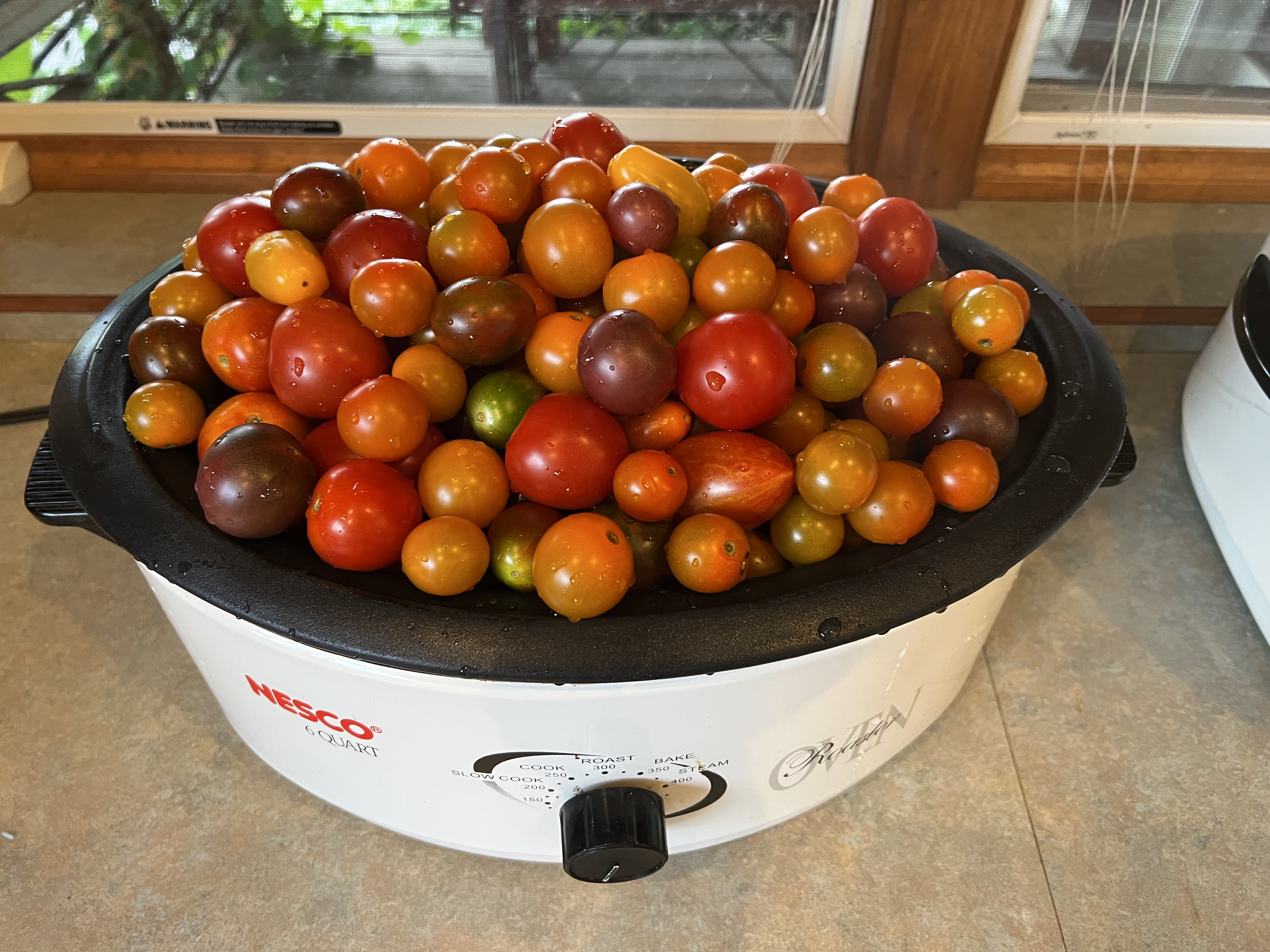 And it is tomato sauce time here. Both Nesco crock pots hang out on the counter these days.