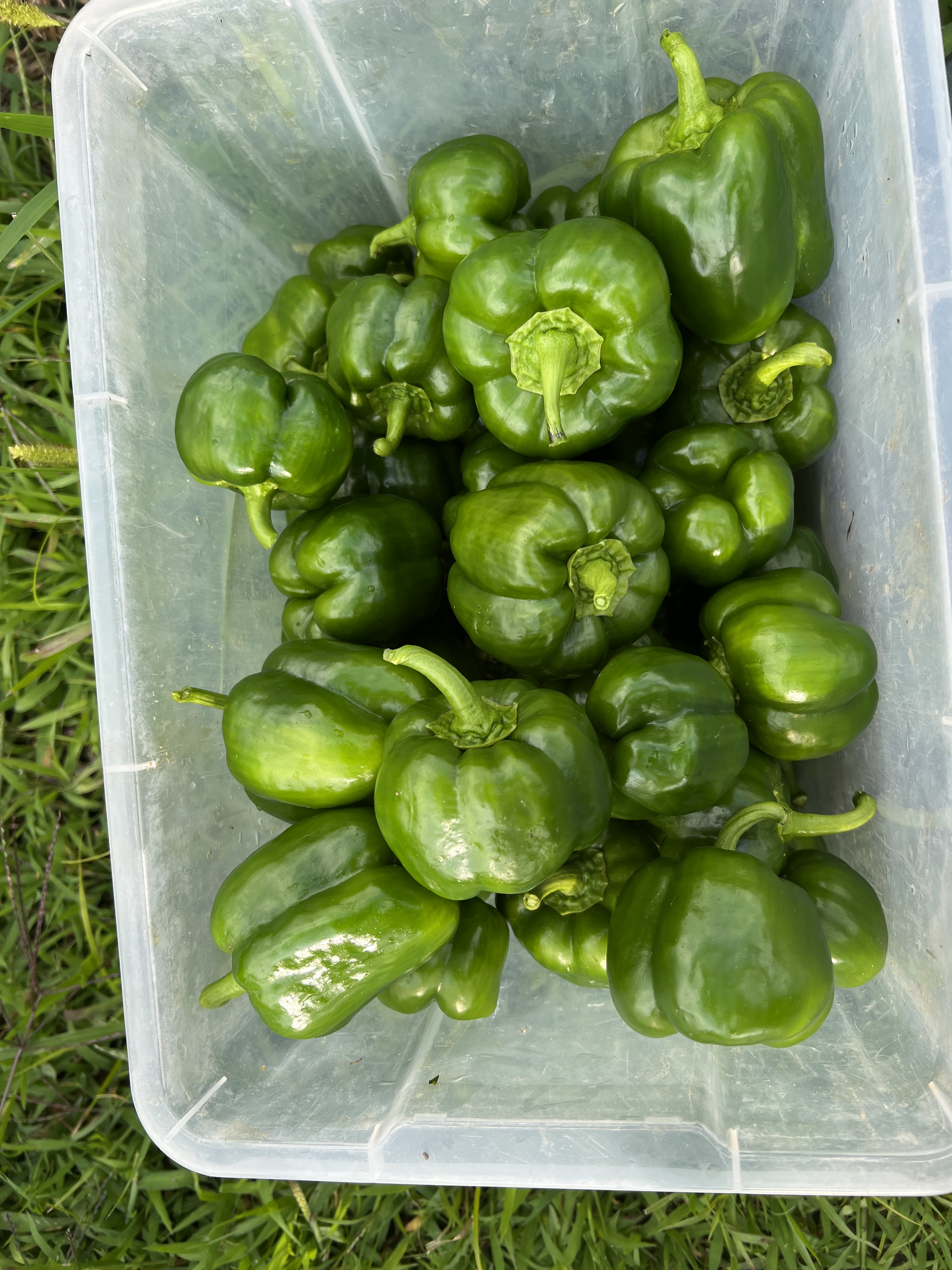 Peppers-We planted 3 different varieties of Bell peppers and small medium and large. A combination of some sort is in every share. We are thrilled after the long wait for the peppers. Also, Italian Fry Peppers this week too. We thinned the plants a bit as they were loaded and the peppers were getting very crowded. Also check the extra table for additional peppers-ancho, jimmy nardello, jalapeno and more…