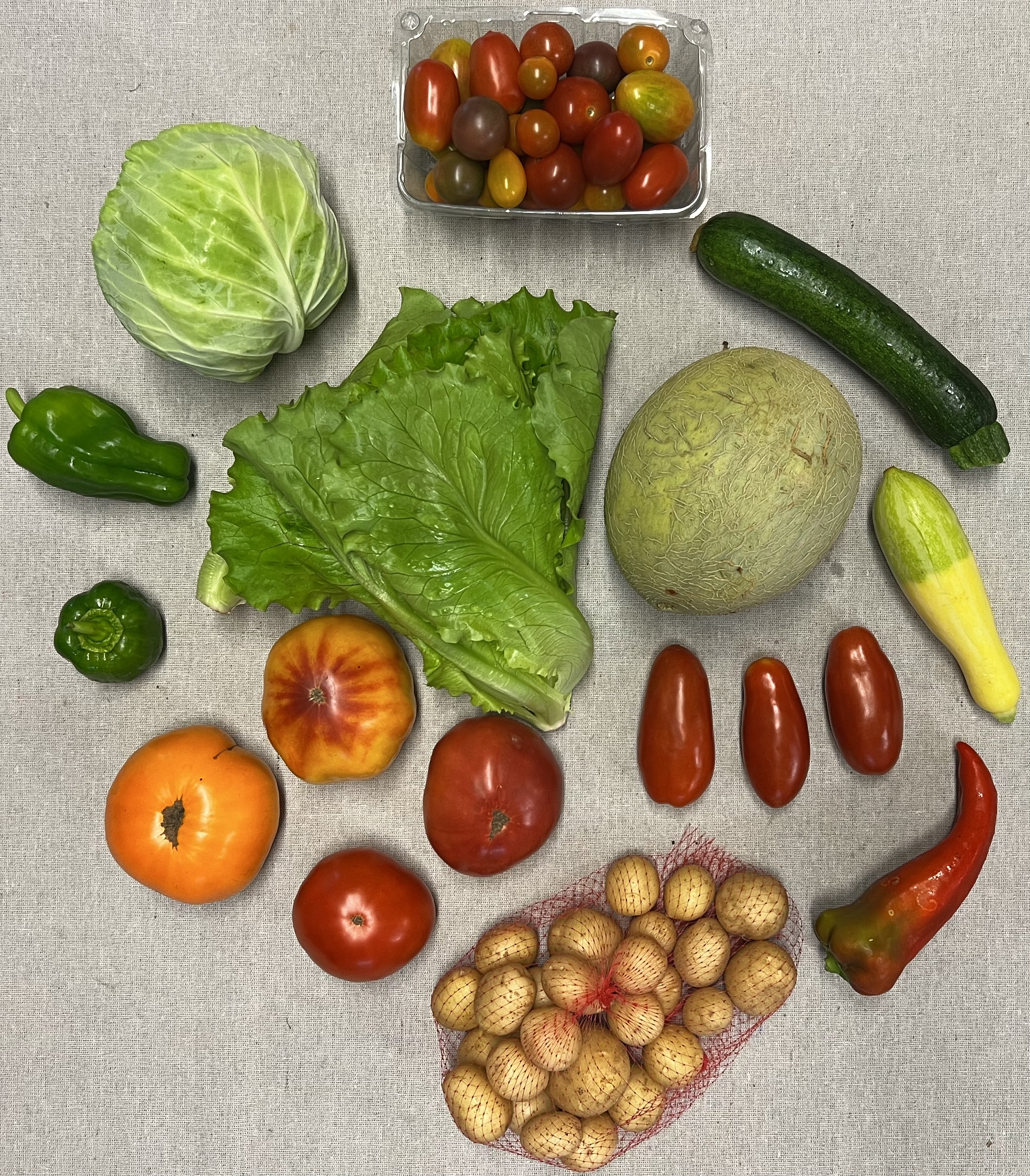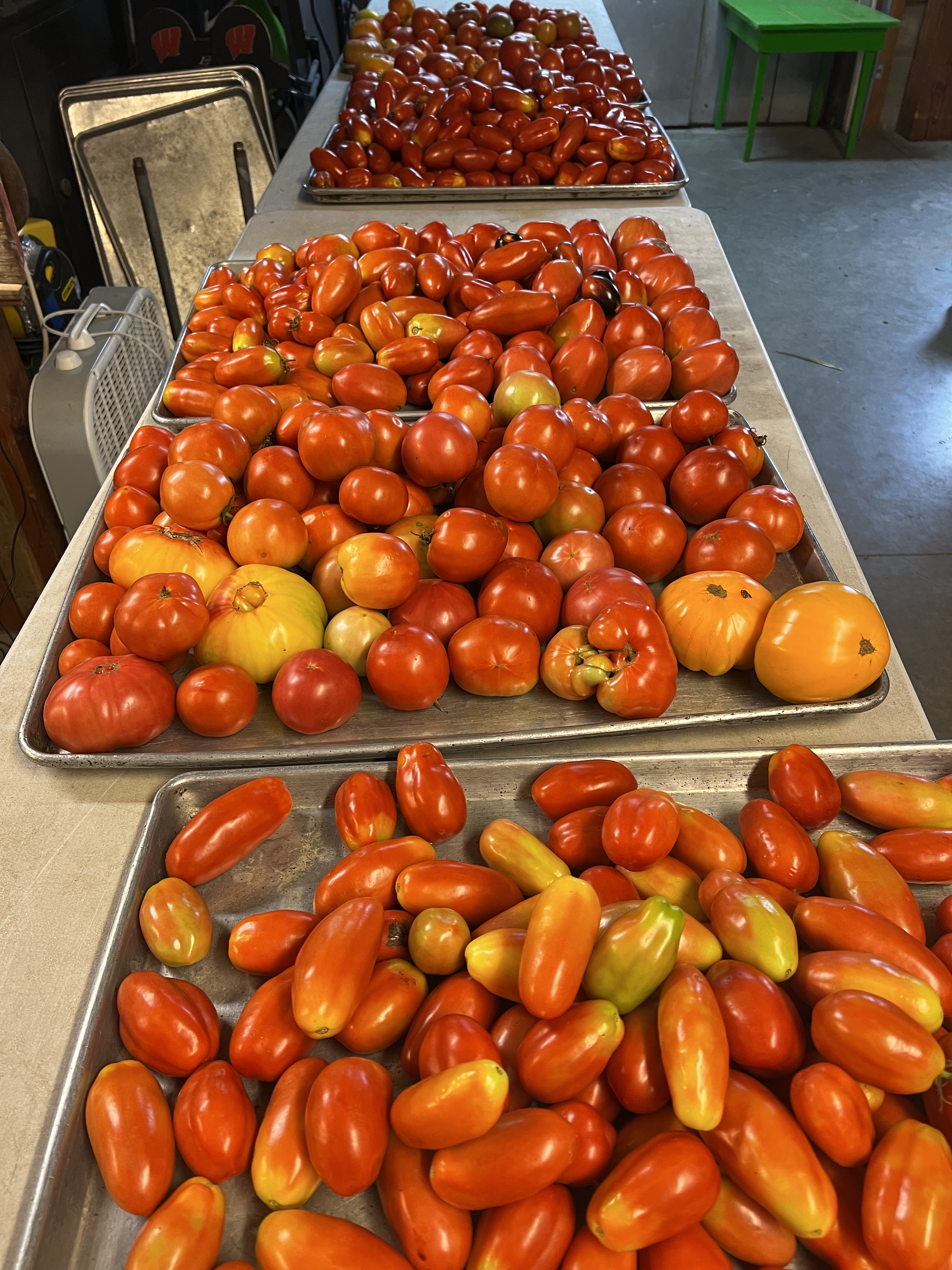 Tomatoes-A HUGE! harvest again this week Quart cherries for everyone and a great selection of slicers. This will be the last big week of tomatoes….