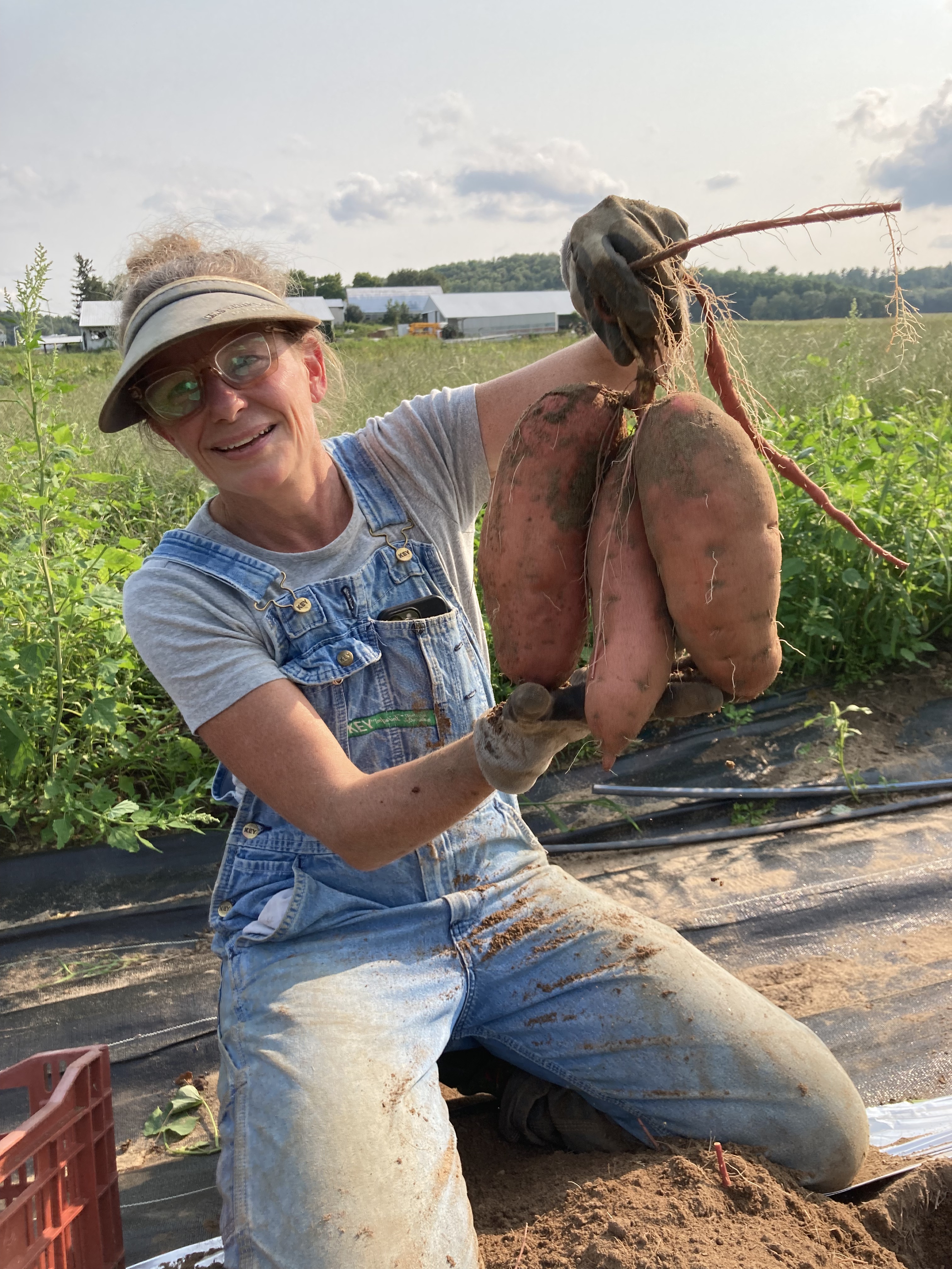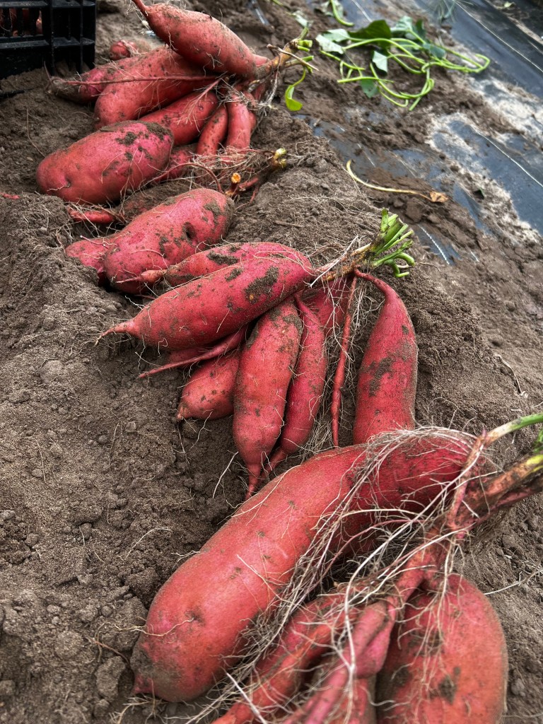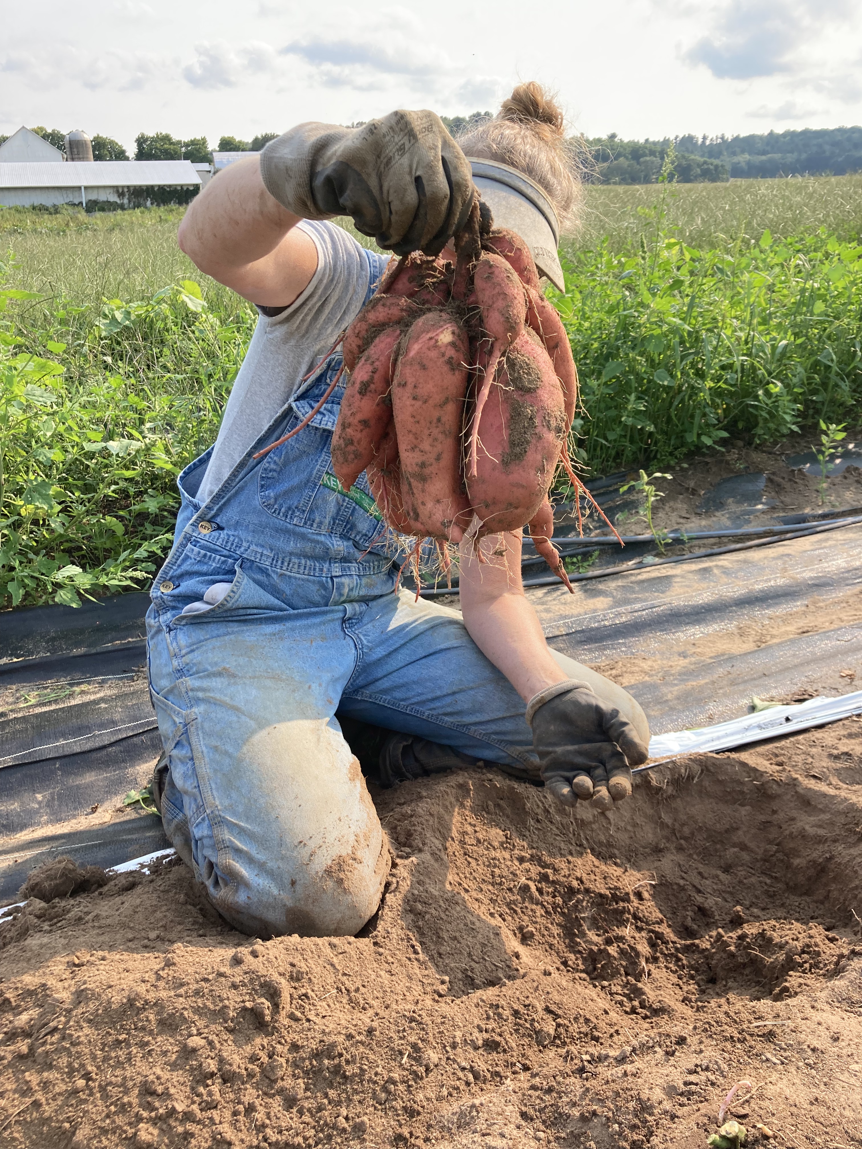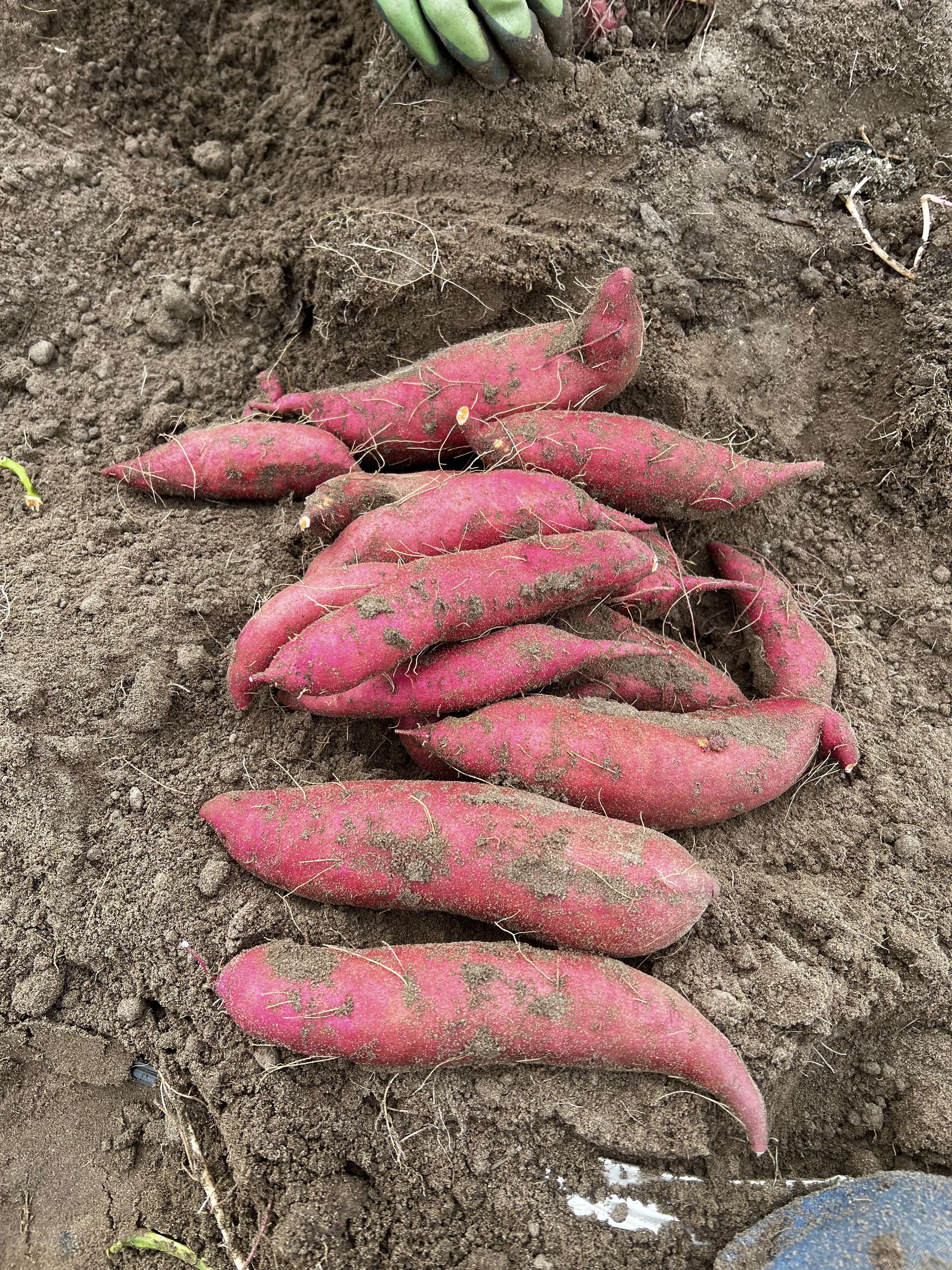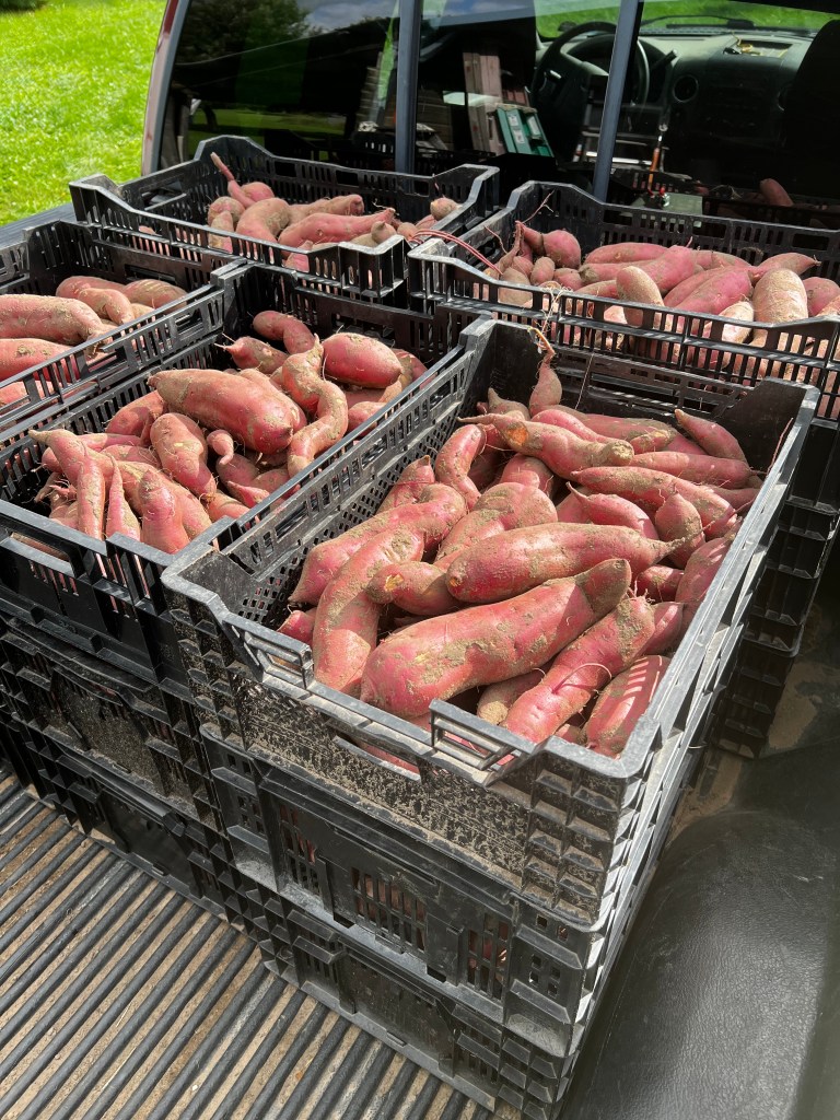 We are hauling heavy and colorful harvests out of the gardens these days. The sweet potato bonanza continues and hopefully the last of them will be out of the ground by the end of next week. Absolutely amazing and we will have a bounty of sweet potatoes in the last 2 shares. 15 crates out of a 1/2 row and now we ponder where we are going to store them all.