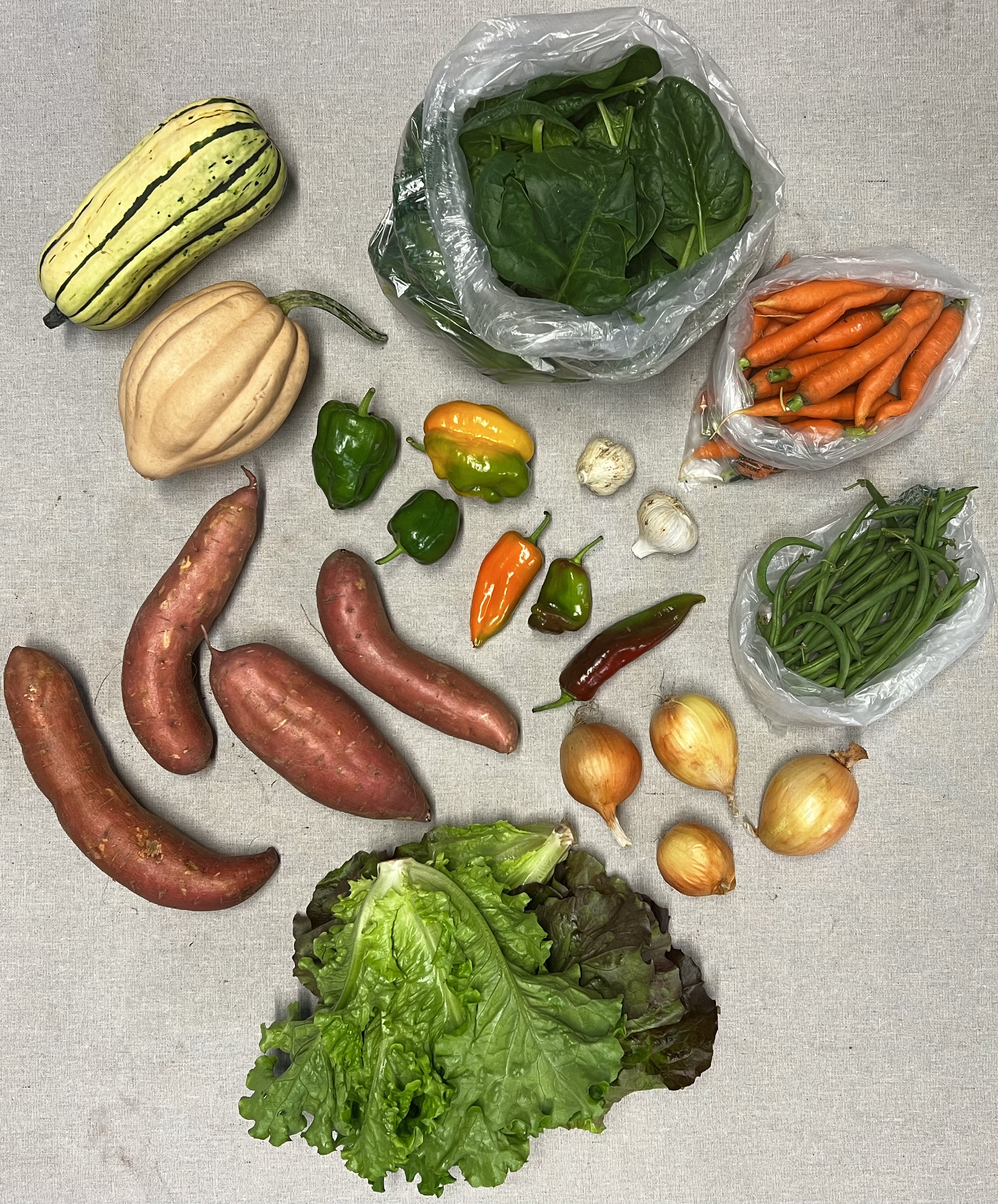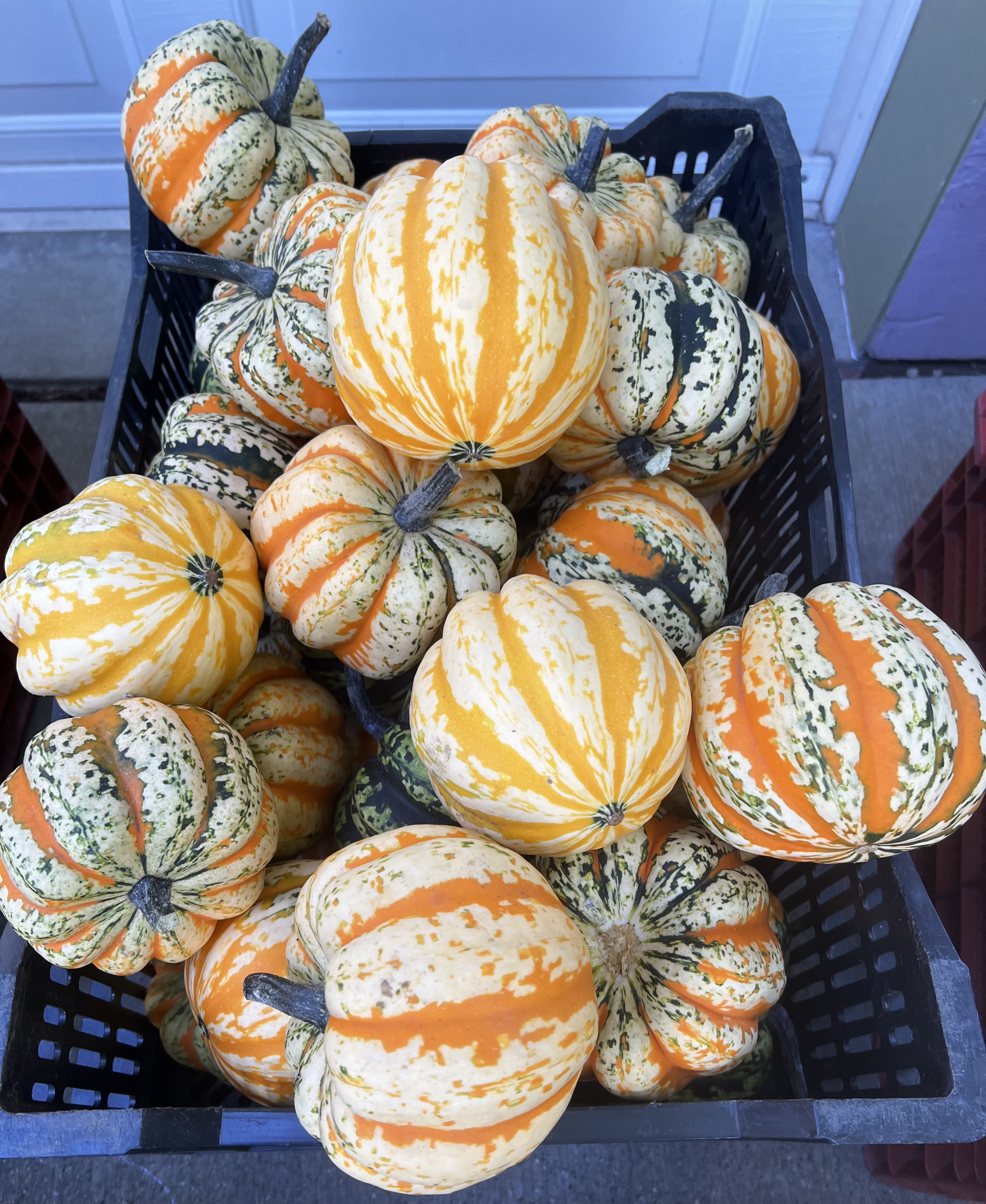 Winter Squash- Full share select 2 snack pack select 1. A great variety to choose from. Acorns, delicata, butternuts, and a few unusual ones too.