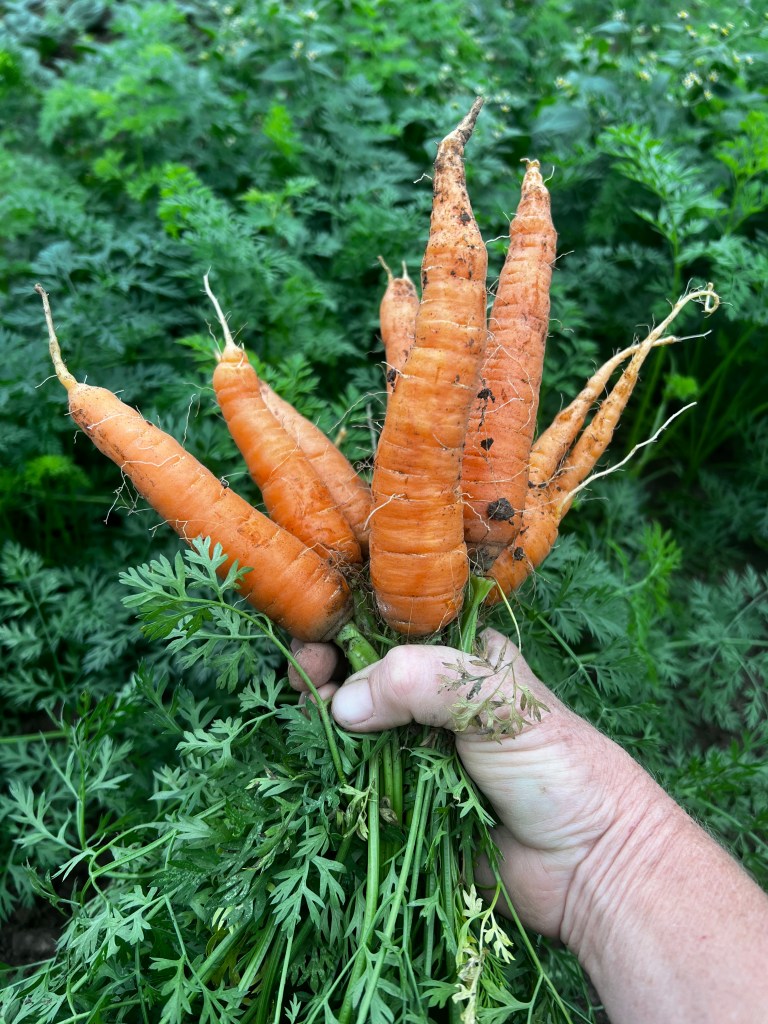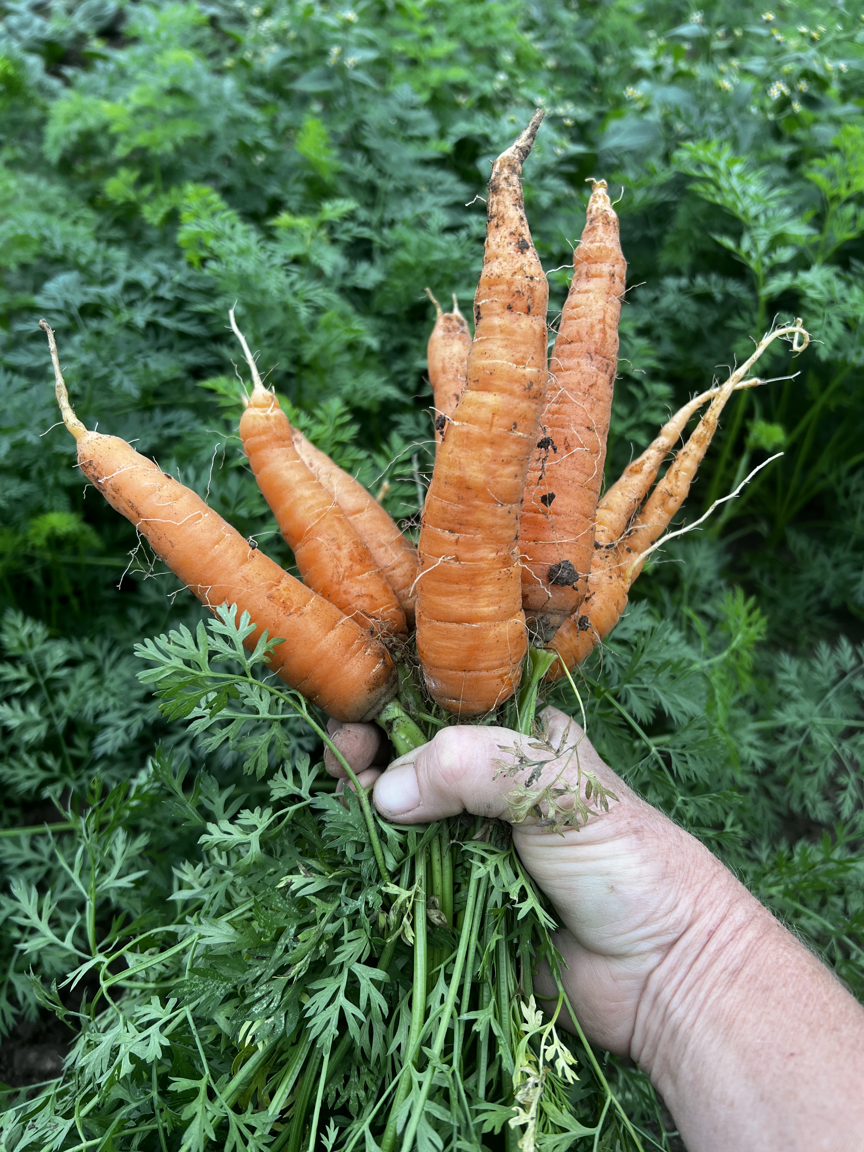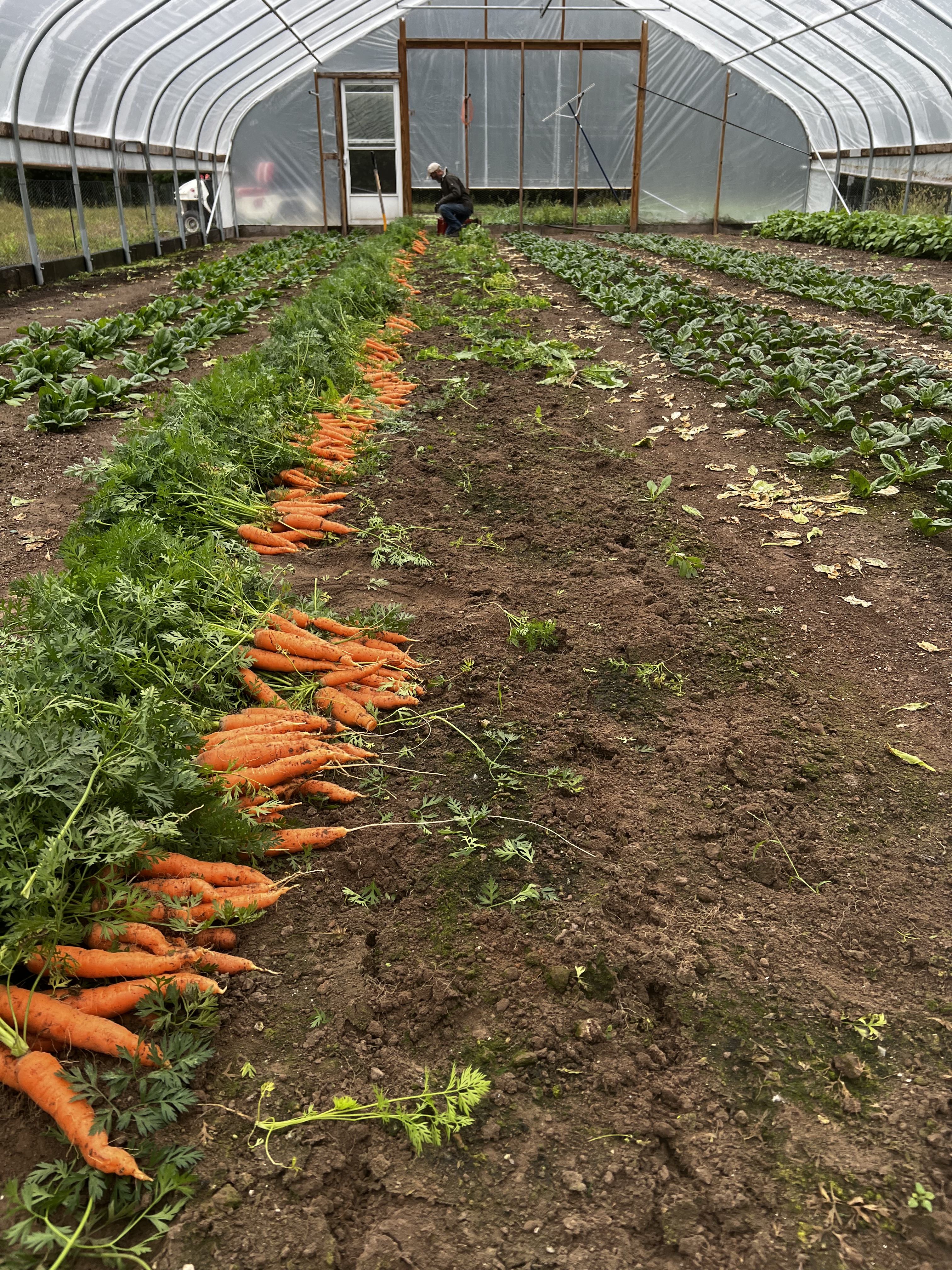 Carrots-We had a goal this season to plant more carrots. A great harvest this week. Final carrot crop out of hoop 2 on Sunday. Enjoy!